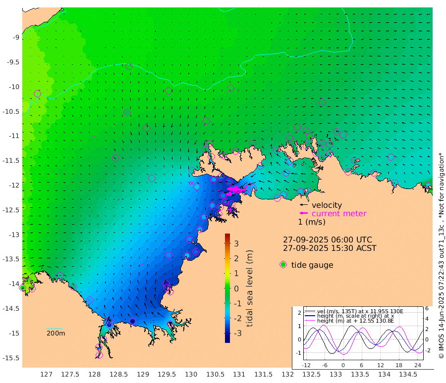 209cm/s -101T +4cm/s rms + 6cm/s 51T. Darwin_C1 52m 164cm/s -90T +4cm/s rms + 7cm/s -161T. Darwin_CW1 22m 107cm/s -106T +4cm/s rms + 8cm/s 61T. Darwin_CW2 34m 101cm/s -135T +3cm/s rms + 9cm/s 98T. Darwin_CW3 22m 176cm/s -90T +5cm/s rms + 7cm/s 88T. Darwin_C3 56m 122cm/s -115T +2cm/s rms + 9cm/s -126T. Darwin_CTbW 22m 6cm/s -152T +9cm/s rms + 2cm/s -110T. NWSLYN 196m 22cm/s -109T +1cm/s rms + 1cm/s -47T. DARBGF 30m 7cm/s 115T +7cm/s rms + 2cm/s -137T. ITFTIS 464m 8cm/s 118T +9cm/s rms + 1cm/s 74T. ITFMHB 146m 12cm/s 71T +4cm/s rms + 1cm/s -134T. ITFJBG 61m 17cm/s 109T +6cm/s rms + 4cm/s 121T. ITFFTB 108m 13cm/s -117T +4cm/s rms + 3cm/s 80T. NRSDAR 19m 24cm Carronade Island 20cm Guy Point 20cm Napier Broome Bay -97cm Lesueur Island -187cm Reveley Island -84cm Rocky Island -274cm Cape Domett -252cm Lacrosse Island -289cm Adolphus Island -227cm Pender Point -215cm Wyndham -47cm The Boxers -68cm Unnamed Shoal 11cm Loxton Shoal -294cm Pelican Island -31cm Calder Shoal 1cm Evans Shoal -356cm Quoin Island -279cm Port Keats -260cm Jones Point -288cm Catfish Island -210cm Cape Scott Offshore -163cm Cape Ford -232cm Anson Bay -16cm Goodrich Bank -204cm Peron Island North -184cm Point Jenny -184cm Native Point -198cm Fish Reef -218cm Tapa Bay -103cm Point Fawcett (Offshore) -226cm Burge Point -197cm Munkunuwa -154cm Beagle A -232cm Parsons Bank -215cm Fenton Patches -10cm Lynedoch Bank -236cm Hancox Shoal Area -247cm Nightcliff -265cm Darwin -238cm Charles Point Patches -200cm Glyde Point -169cm Chambers Bay -165cm Point Stuart -178cm Cape Hotham -155cm Christine Reef -176cm West Alligator Head -164cm East Field Island -154cm Two Hills Bay -114cm Newby Shoal -149cm Camp Point -217cm Medina Inlet South -88cm South Barlow Point -57cm St. Asaph Bay -18cm Cape Van Dieman -33cm Snake Bay -24cm Cache Point 36cm Echo Shoal -46cm Point Jahleel (Off) -95cm Cape Don -54cm Port Essington -54cm Smith Point - West -52cm NW Peacock Island -40cm North Of Jones Shoal -16cm Peacock Island -77cm Point David -58cm D'urville Point -47cm Money Shoal -78cm Copeland Island -102cm Cape Cockburn -76cm One Tree Point -96cm Hogmany Shoal -79cm New Year Island - West -83cm Grant Island -100cm Aurari Bay -113cm Cuthbert Point -99cm North Goulburn Island -127cm Paxie Shoal -131cm Entrance Island -148cm Yabooma Island