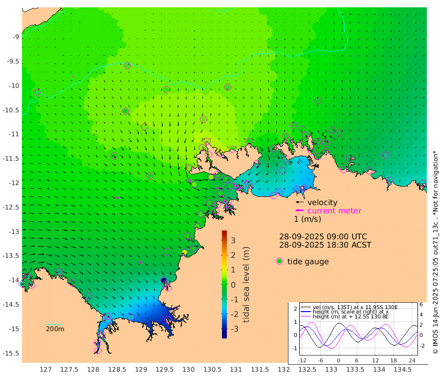 32cm/s -101T +4cm/s rms + 6cm/s 51T. Darwin_C1 52m 38cm/s -94T +4cm/s rms + 7cm/s -161T. Darwin_CW1 22m 14cm/s 67T +4cm/s rms + 8cm/s 61T. Darwin_CW2 34m 50cm/s -142T +3cm/s rms + 9cm/s 98T. Darwin_CW3 22m 19cm/s -82T +5cm/s rms + 7cm/s 88T. Darwin_C3 56m 12cm/s -113T +2cm/s rms + 9cm/s -126T. Darwin_CTbW 22m 6cm/s -180T +9cm/s rms + 2cm/s -110T. NWSLYN 196m 52cm/s 95T +1cm/s rms + 1cm/s -47T. DARBGF 30m 8cm/s 106T +7cm/s rms + 2cm/s -137T. ITFTIS 464m 18cm/s 157T +9cm/s rms + 1cm/s 74T. ITFMHB 146m 38cm/s 146T +4cm/s rms + 1cm/s -134T. ITFJBG 61m 40cm/s 131T +6cm/s rms + 4cm/s 121T. ITFFTB 108m 59cm/s 125T +4cm/s rms + 3cm/s 80T. NRSDAR 19m -80cm Carronade Island -80cm Guy Point -89cm Napier Broome Bay -90cm Lesueur Island -82cm Reveley Island -34cm Rocky Island -140cm Cape Domett -132cm Lacrosse Island -186cm Adolphus Island -244cm Pender Point -286cm Wyndham 13cm The Boxers 8cm Unnamed Shoal 26cm Loxton Shoal -126cm Pelican Island 34cm Calder Shoal 34cm Evans Shoal -264cm Quoin Island -62cm Port Keats -65cm Jones Point -361cm Catfish Island -14cm Cape Scott Offshore 108cm Cape Ford -6cm Anson Bay 42cm Goodrich Bank 3cm Peron Island North 28cm Point Jenny 32cm Native Point 18cm Fish Reef 19cm Tapa Bay 43cm Point Fawcett (Offshore) 15cm Burge Point 45cm Munkunuwa 38cm Beagle A 8cm Parsons Bank 15cm Fenton Patches 26cm Lynedoch Bank -11cm Hancox Shoal Area -3cm Nightcliff -14cm Darwin 5cm Charles Point Patches -69cm Glyde Point -140cm Chambers Bay -164cm Point Stuart -93cm Cape Hotham -120cm Christine Reef -185cm West Alligator Head -218cm East Field Island -115cm Two Hills Bay 21cm Newby Shoal -102cm Camp Point 19cm Medina Inlet South 57cm South Barlow Point 55cm St. Asaph Bay 47cm Cape Van Dieman 40cm Snake Bay 33cm Cache Point 13cm Echo Shoal 17cm Point Jahleel (Off) -22cm Cape Don 11cm Port Essington 15cm Smith Point - West 9cm NW Peacock Island 12cm North Of Jones Shoal 3cm Peacock Island -20cm Point David 10cm D'urville Point -1cm Money Shoal -23cm Copeland Island -33cm Cape Cockburn -21cm One Tree Point -39cm Hogmany Shoal -27cm New Year Island - West -26cm Grant Island -52cm Aurari Bay -70cm Cuthbert Point -46cm North Goulburn Island -91cm Paxie Shoal -96cm Entrance Island -132cm Yabooma Island