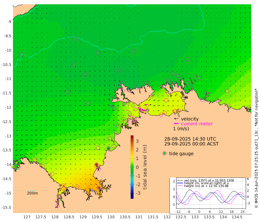 98cm/s 79T +4cm/s rms + 6cm/s 51T. Darwin_C1 52m 77cm/s 92T +4cm/s rms + 7cm/s -161T. Darwin_CW1 22m 38cm/s 69T +4cm/s rms + 8cm/s 61T. Darwin_CW2 34m 56cm/s 48T +3cm/s rms + 9cm/s 98T. Darwin_CW3 22m 69cm/s 90T +5cm/s rms + 7cm/s 88T. Darwin_C3 56m 57cm/s 66T +2cm/s rms + 9cm/s -126T. Darwin_CTbW 22m 3cm/s -20T +9cm/s rms + 2cm/s -110T. NWSLYN 196m 21cm/s -75T +1cm/s rms + 1cm/s -47T. DARBGF 30m 7cm/s -125T +7cm/s rms + 2cm/s -137T. ITFTIS 464m 8cm/s -112T +9cm/s rms + 1cm/s 74T. ITFMHB 146m 19cm/s -46T +4cm/s rms + 1cm/s -134T. ITFJBG 61m 21cm/s -65T +6cm/s rms + 4cm/s 121T. ITFFTB 108m 36cm/s -50T +4cm/s rms + 3cm/s 80T. NRSDAR 19m 55cm Carronade Island 61cm Guy Point 59cm Napier Broome Bay 77cm Lesueur Island 107cm Reveley Island 75cm Rocky Island 160cm Cape Domett 149cm Lacrosse Island 196cm Adolphus Island 212cm Pender Point 234cm Wyndham 5cm The Boxers -12cm Unnamed Shoal -14cm Loxton Shoal 160cm Pelican Island -12cm Calder Shoal -17cm Evans Shoal 259cm Quoin Island 112cm Port Keats 101cm Jones Point 323cm Catfish Island 68cm Cape Scott Offshore -26cm Cape Ford 64cm Anson Bay -25cm Goodrich Bank 48cm Peron Island North 38cm Point Jenny 35cm Native Point 41cm Fish Reef 48cm Tapa Bay 3cm Point Fawcett (Offshore) 44cm Burge Point 26cm Munkunuwa 21cm Beagle A 48cm Parsons Bank 47cm Fenton Patches -20cm Lynedoch Bank 66cm Hancox Shoal Area 66cm Nightcliff 67cm Darwin 53cm Charles Point Patches 84cm Glyde Point 125cm Chambers Bay 132cm Point Stuart 89cm Cape Hotham 116cm Christine Reef 151cm West Alligator Head 167cm East Field Island 100cm Two Hills Bay 16cm Newby Shoal 88cm Camp Point 42cm Medina Inlet South -16cm South Barlow Point -17cm St. Asaph Bay -29cm Cape Van Dieman -28cm Snake Bay -18cm Cache Point -8cm Echo Shoal -4cm Point Jahleel (Off) 27cm Cape Don -7cm Port Essington -4cm Smith Point - West -6cm NW Peacock Island -9cm North Of Jones Shoal -3cm Peacock Island 0cm Point David -6cm D'urville Point -10cm Money Shoal 3cm Copeland Island 6cm Cape Cockburn 3cm One Tree Point 15cm Hogmany Shoal 6cm New Year Island - West 7cm Grant Island 22cm Aurari Bay 38cm Cuthbert Point 18cm North Goulburn Island 46cm Paxie Shoal 50cm Entrance Island 68cm Yabooma Island
