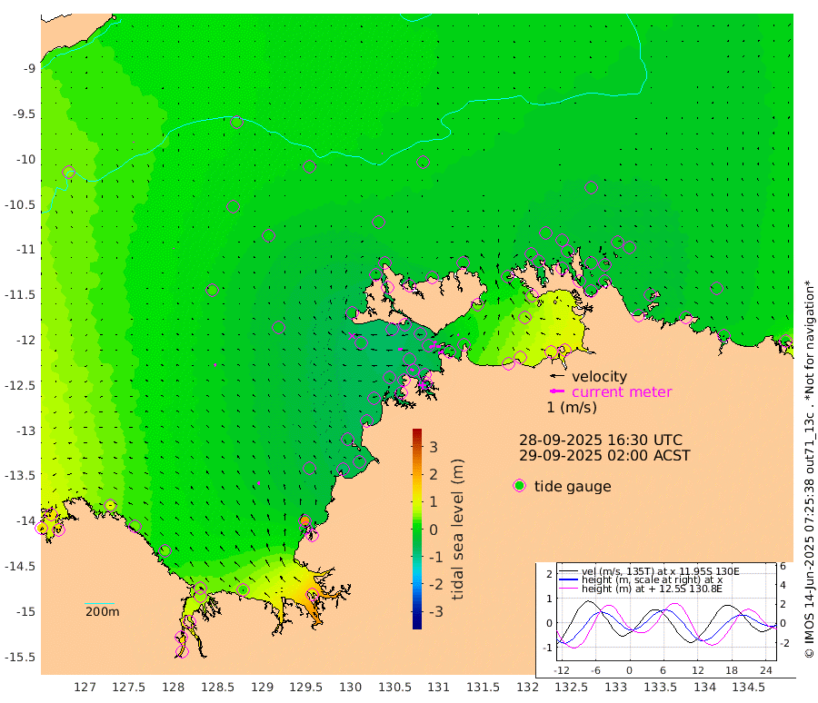 39cm/s -103T +4cm/s rms + 6cm/s 51T. Darwin_C1 52m 1cm/s -58T +4cm/s rms + 7cm/s -161T. Darwin_CW1 22m 40cm/s -111T +4cm/s rms + 8cm/s 61T. Darwin_CW2 34m 9cm/s -81T +3cm/s rms + 9cm/s 98T. Darwin_CW3 22m 33cm/s -95T +5cm/s rms + 7cm/s 88T. Darwin_C3 56m 21cm/s -120T +2cm/s rms + 9cm/s -126T. Darwin_CTbW 22m 1cm/s 98T +9cm/s rms + 2cm/s -110T. NWSLYN 196m 30cm/s -90T +1cm/s rms + 1cm/s -47T. DARBGF 30m 1cm/s -20T +7cm/s rms + 2cm/s -137T. ITFTIS 464m 3cm/s 8T +9cm/s rms + 1cm/s 74T. ITFMHB 146m 23cm/s -19T +4cm/s rms + 1cm/s -134T. ITFJBG 61m 15cm/s -34T +6cm/s rms + 4cm/s 121T. ITFFTB 108m 29cm/s -62T +4cm/s rms + 3cm/s 80T. NRSDAR 19m 130cm Carronade Island 132cm Guy Point 137cm Napier Broome Bay 92cm Lesueur Island 36cm Reveley Island 34cm Rocky Island 48cm Cape Domett 55cm Lacrosse Island 70cm Adolphus Island 137cm Pender Point 175cm Wyndham 23cm The Boxers 0cm Unnamed Shoal 31cm Loxton Shoal 26cm Pelican Island 12cm Calder Shoal 15cm Evans Shoal 101cm Quoin Island -14cm Port Keats -12cm Jones Point 223cm Catfish Island -22cm Cape Scott Offshore -68cm Cape Ford -40cm Anson Bay -4cm Goodrich Bank -37cm Peron Island North -43cm Point Jenny -45cm Native Point -42cm Fish Reef -50cm Tapa Bay -21cm Point Fawcett (Offshore) -56cm Burge Point -71cm Munkunuwa -35cm Beagle A -67cm Parsons Bank -48cm Fenton Patches 5cm Lynedoch Bank -49cm Hancox Shoal Area -53cm Nightcliff -55cm Darwin -50cm Charles Point Patches 2cm Glyde Point 62cm Chambers Bay 76cm Point Stuart 22cm Cape Hotham 53cm Christine Reef 89cm West Alligator Head 118cm East Field Island 46cm Two Hills Bay -3cm Newby Shoal 39cm Camp Point -55cm Medina Inlet South -39cm South Barlow Point -20cm St. Asaph Bay -9cm Cape Van Dieman -15cm Snake Bay 1cm Cache Point 53cm Echo Shoal -1cm Point Jahleel (Off) 1cm Cape Don -10cm Port Essington -12cm Smith Point - West -12cm NW Peacock Island -3cm North Of Jones Shoal -3cm Peacock Island -19cm Point David -17cm D'urville Point -8cm Money Shoal -19cm Copeland Island -21cm Cape Cockburn -14cm One Tree Point -9cm Hogmany Shoal -10cm New Year Island - West -15cm Grant Island -12cm Aurari Bay -8cm Cuthbert Point -14cm North Goulburn Island -1cm Paxie Shoal -8cm Entrance Island -2cm Yabooma Island