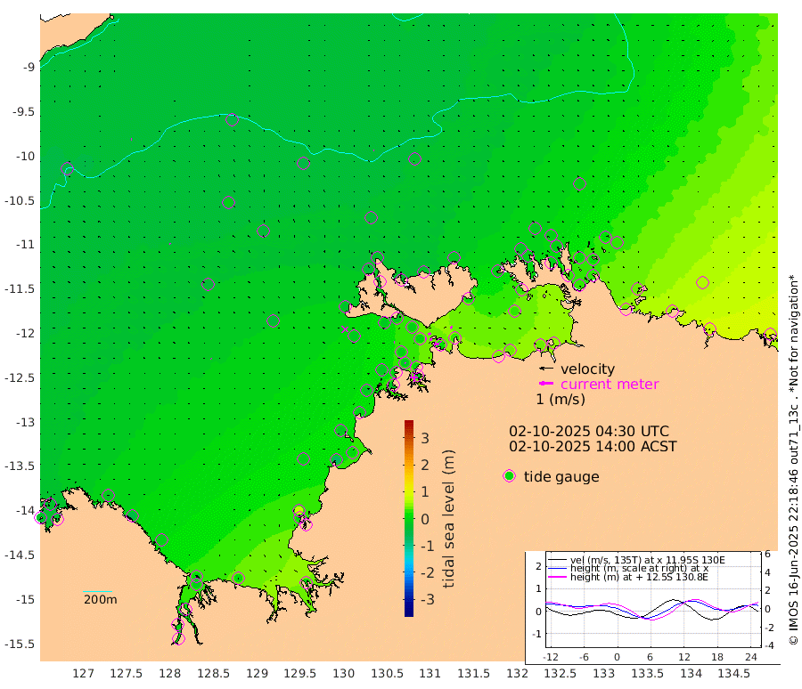 28cm/s 78T +4cm/s rms + 6cm/s 51T. Darwin_C1 52m 6cm/s -59T +4cm/s rms + 7cm/s -161T. Darwin_CW1 22m 7cm/s -103T +4cm/s rms + 8cm/s 61T. Darwin_CW2 34m 19cm/s 43T +3cm/s rms + 9cm/s 98T. Darwin_CW3 22m 21cm/s -92T +5cm/s rms + 7cm/s 88T. Darwin_C3 56m 21cm/s 62T +2cm/s rms + 9cm/s -126T. Darwin_CTbW 22m 1cm/s -60T +9cm/s rms + 2cm/s -110T. NWSLYN 196m 7cm/s -97T +1cm/s rms + 1cm/s -47T. DARBGF 30m 3cm/s -97T +7cm/s rms + 2cm/s -137T. ITFTIS 464m 6cm/s -26T +9cm/s rms + 1cm/s 74T. ITFMHB 146m 1cm/s 139T +4cm/s rms + 1cm/s -134T. ITFJBG 61m 4cm/s -73T +6cm/s rms + 4cm/s 121T. ITFFTB 108m 8cm/s -52T +4cm/s rms + 3cm/s 80T. NRSDAR 19m -26cm Carronade Island -29cm Guy Point -32cm Napier Broome Bay -13cm Lesueur Island -5cm Reveley Island -50cm Rocky Island -3cm Cape Domett 3cm Lacrosse Island 2cm Adolphus Island -3cm Pender Point 8cm Wyndham -36cm The Boxers -9cm Unnamed Shoal -56cm Loxton Shoal 14cm Pelican Island -45cm Calder Shoal -45cm Evans Shoal 16cm Quoin Island -4cm Port Keats 6cm Jones Point 76cm Catfish Island -4cm Cape Scott Offshore -78cm Cape Ford 4cm Anson Bay -35cm Goodrich Bank -12cm Peron Island North -10cm Point Jenny -12cm Native Point -15cm Fish Reef -5cm Tapa Bay -29cm Point Fawcett (Offshore) -15cm Burge Point -21cm Munkunuwa -20cm Beagle A -3cm Parsons Bank -8cm Fenton Patches -33cm Lynedoch Bank 8cm Hancox Shoal Area 8cm Nightcliff -5cm Darwin -14cm Charles Point Patches 13cm Glyde Point 39cm Chambers Bay 39cm Point Stuart 23cm Cape Hotham 28cm Christine Reef 43cm West Alligator Head 48cm East Field Island 26cm Two Hills Bay -37cm Newby Shoal 22cm Camp Point -17cm Medina Inlet South -34cm South Barlow Point -36cm St. Asaph Bay -33cm Cape Van Dieman -30cm Snake Bay -30cm Cache Point -48cm Echo Shoal -20cm Point Jahleel (Off) -2cm Cape Don -13cm Port Essington -10cm Smith Point - West -6cm NW Peacock Island -16cm North Of Jones Shoal -3cm Peacock Island 23cm Point David -2cm D'urville Point -2cm Money Shoal 26cm Copeland Island 25cm Cape Cockburn 13cm One Tree Point 30cm Hogmany Shoal 20cm New Year Island - West 20cm Grant Island 44cm Aurari Bay 48cm Cuthbert Point 35cm North Goulburn Island 57cm Paxie Shoal 70cm Entrance Island 94cm Yabooma Island