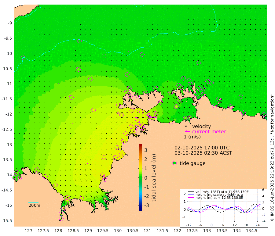117cm/s 77T +4cm/s rms + 6cm/s 51T. Darwin_C1 52m 71cm/s 91T +4cm/s rms + 7cm/s -161T. Darwin_CW1 22m 48cm/s 73T +4cm/s rms + 8cm/s 61T. Darwin_CW2 34m 54cm/s 51T +3cm/s rms + 9cm/s 98T. Darwin_CW3 22m 55cm/s 89T +5cm/s rms + 7cm/s 88T. Darwin_C3 56m 73cm/s 65T +2cm/s rms + 9cm/s -126T. Darwin_CTbW 22m 1cm/s 127T +9cm/s rms + 2cm/s -110T. NWSLYN 196m 30cm/s 87T +1cm/s rms + 1cm/s -47T. DARBGF 30m 2cm/s 81T +7cm/s rms + 2cm/s -137T. ITFTIS 464m 10cm/s 169T +9cm/s rms + 1cm/s 74T. ITFMHB 146m 16cm/s 158T +4cm/s rms + 1cm/s -134T. ITFJBG 61m 16cm/s 137T +6cm/s rms + 4cm/s 121T. ITFFTB 108m 27cm/s 114T +4cm/s rms + 3cm/s 80T. NRSDAR 19m 34cm Carronade Island 33cm Guy Point 41cm Napier Broome Bay 54cm Lesueur Island 69cm Reveley Island 68cm Rocky Island 92cm Cape Domett 90cm Lacrosse Island 80cm Adolphus Island 48cm Pender Point 42cm Wyndham 52cm The Boxers 44cm Unnamed Shoal 18cm Loxton Shoal 93cm Pelican Island 43cm Calder Shoal 18cm Evans Shoal 75cm Quoin Island 116cm Port Keats 93cm Jones Point 93cm Catfish Island 100cm Cape Scott Offshore 82cm Cape Ford 110cm Anson Bay 23cm Goodrich Bank 91cm Peron Island North 113cm Point Jenny 112cm Native Point 106cm Fish Reef 112cm Tapa Bay 72cm Point Fawcett (Offshore) 115cm Burge Point 99cm Munkunuwa 107cm Beagle A 98cm Parsons Bank 119cm Fenton Patches 15cm Lynedoch Bank 100cm Hancox Shoal Area 123cm Nightcliff 105cm Darwin 102cm Charles Point Patches 75cm Glyde Point 57cm Chambers Bay 41cm Point Stuart 56cm Cape Hotham 62cm Christine Reef 43cm West Alligator Head 34cm East Field Island 45cm Two Hills Bay 96cm Newby Shoal 48cm Camp Point 104cm Medina Inlet South 59cm South Barlow Point 51cm St. Asaph Bay 25cm Cape Van Dieman 23cm Snake Bay 28cm Cache Point 11cm Echo Shoal 29cm Point Jahleel (Off) 41cm Cape Don 21cm Port Essington 27cm Smith Point - West 20cm NW Peacock Island 20cm North Of Jones Shoal 6cm Peacock Island 7cm Point David 22cm D'urville Point 13cm Money Shoal 7cm Copeland Island 14cm Cape Cockburn 12cm One Tree Point 3cm Hogmany Shoal 14cm New Year Island - West 12cm Grant Island 13cm Aurari Bay 13cm Cuthbert Point 13cm North Goulburn Island 10cm Paxie Shoal 7cm Entrance Island -4cm Yabooma Island