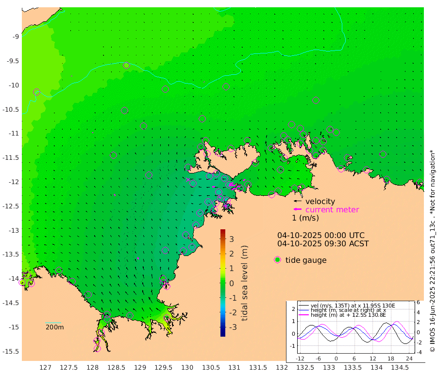 84cm/s -102T +4cm/s rms + 6cm/s 51T. Darwin_C1 52m 45cm/s -88T +4cm/s rms + 7cm/s -161T. Darwin_CW1 22m 48cm/s -110T +4cm/s rms + 8cm/s 61T. Darwin_CW2 34m 32cm/s -129T +3cm/s rms + 9cm/s 98T. Darwin_CW3 22m 42cm/s -92T +5cm/s rms + 7cm/s 88T. Darwin_C3 56m 55cm/s -115T +2cm/s rms + 9cm/s -126T. Darwin_CTbW 22m 3cm/s 136T +9cm/s rms + 2cm/s -110T. NWSLYN 196m 37cm/s -89T +1cm/s rms + 1cm/s -47T. DARBGF 30m 3cm/s -3T +7cm/s rms + 2cm/s -137T. ITFTIS 464m 11cm/s 0T +9cm/s rms + 1cm/s 74T. ITFMHB 146m 27cm/s -22T +4cm/s rms + 1cm/s -134T. ITFJBG 61m 21cm/s -36T +6cm/s rms + 4cm/s 121T. ITFFTB 108m 35cm/s -60T +4cm/s rms + 3cm/s 80T. NRSDAR 19m 52cm Carronade Island 57cm Guy Point 62cm Napier Broome Bay 7cm Lesueur Island -32cm Reveley Island -1cm Rocky Island -35cm Cape Domett -44cm Lacrosse Island -13cm Adolphus Island 51cm Pender Point 67cm Wyndham -2cm The Boxers -24cm Unnamed Shoal 35cm Loxton Shoal -55cm Pelican Island -3cm Calder Shoal 21cm Evans Shoal -2cm Quoin Island -82cm Port Keats -76cm Jones Point 5cm Catfish Island -79cm Cape Scott Offshore -71cm Cape Ford -95cm Anson Bay 5cm Goodrich Bank -79cm Peron Island North -93cm Point Jenny -93cm Native Point -93cm Fish Reef -99cm Tapa Bay -49cm Point Fawcett (Offshore) -101cm Burge Point -96cm Munkunuwa -90cm Beagle A -94cm Parsons Bank -108cm Fenton Patches 16cm Lynedoch Bank -92cm Hancox Shoal Area -115cm Nightcliff -93cm Darwin -83cm Charles Point Patches -55cm Glyde Point -25cm Chambers Bay -11cm Point Stuart -41cm Cape Hotham -24cm Christine Reef -11cm West Alligator Head 5cm East Field Island -20cm Two Hills Bay -49cm Newby Shoal -20cm Camp Point -90cm Medina Inlet South -40cm South Barlow Point -27cm St. Asaph Bay 0cm Cape Van Dieman -1cm Snake Bay 0cm Cache Point 39cm Echo Shoal -6cm Point Jahleel (Off) -16cm Cape Don -1cm Port Essington -8cm Smith Point - West -3cm NW Peacock Island 2cm North Of Jones Shoal 0cm Peacock Island -6cm Point David -8cm D'urville Point 6cm Money Shoal -8cm Copeland Island -10cm Cape Cockburn -3cm One Tree Point 2cm Hogmany Shoal -6cm New Year Island - West -5cm Grant Island -18cm Aurari Bay -9cm Cuthbert Point -11cm North Goulburn Island -6cm Paxie Shoal -16cm Entrance Island -17cm Yabooma Island