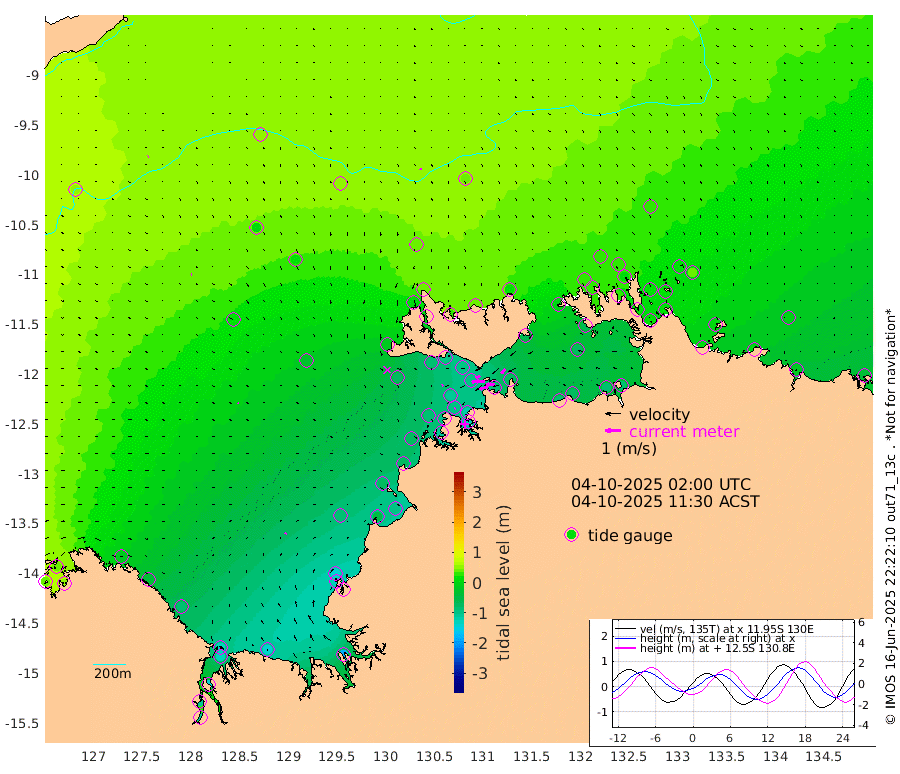 60cm/s -101T +4cm/s rms + 6cm/s 51T. Darwin_C1 52m 59cm/s -91T +4cm/s rms + 7cm/s -161T. Darwin_CW1 22m 44cm/s -108T +4cm/s rms + 8cm/s 61T. Darwin_CW2 34m 38cm/s -138T +3cm/s rms + 9cm/s 98T. Darwin_CW3 22m 66cm/s -91T +5cm/s rms + 7cm/s 88T. Darwin_C3 56m 32cm/s -114T +2cm/s rms + 9cm/s -126T. Darwin_CTbW 22m 9cm/s 154T +9cm/s rms + 2cm/s -110T. NWSLYN 196m 7cm/s -121T +1cm/s rms + 1cm/s -47T. DARBGF 30m 3cm/s 63T +7cm/s rms + 2cm/s -137T. ITFTIS 464m 4cm/s 79T +9cm/s rms + 1cm/s 74T. ITFMHB 146m 8cm/s 34T +4cm/s rms + 1cm/s -134T. ITFJBG 61m 8cm/s 94T +6cm/s rms + 4cm/s 121T. ITFFTB 108m 5cm/s -104T +4cm/s rms + 3cm/s 80T. NRSDAR 19m 42cm Carronade Island 44cm Guy Point 46cm Napier Broome Bay -21cm Lesueur Island -80cm Reveley Island -42cm Rocky Island -133cm Cape Domett -126cm Lacrosse Island -142cm Adolphus Island -108cm Pender Point -103cm Wyndham 17cm The Boxers 11cm Unnamed Shoal 51cm Loxton Shoal -139cm Pelican Island 22cm Calder Shoal 45cm Evans Shoal -181cm Quoin Island -136cm Port Keats -127cm Jones Point -141cm Catfish Island -87cm Cape Scott Offshore -55cm Cape Ford -99cm Anson Bay 38cm Goodrich Bank -76cm Peron Island North -76cm Point Jenny -75cm Native Point -88cm Fish Reef -91cm Tapa Bay -17cm Point Fawcett (Offshore) -107cm Burge Point -87cm Munkunuwa -69cm Beagle A -95cm Parsons Bank -108cm Fenton Patches 39cm Lynedoch Bank -99cm Hancox Shoal Area -120cm Nightcliff -115cm Darwin -94cm Charles Point Patches -87cm Glyde Point -81cm Chambers Bay -76cm Point Stuart -76cm Cape Hotham -70cm Christine Reef -86cm West Alligator Head -89cm East Field Island -58cm Two Hills Bay -29cm Newby Shoal -63cm Camp Point -91cm Medina Inlet South -7cm South Barlow Point 8cm St. Asaph Bay 37cm Cape Van Dieman 34cm Snake Bay 35cm Cache Point 53cm Echo Shoal 20cm Point Jahleel (Off) -8cm Cape Don 25cm Port Essington 25cm Smith Point - West 29cm NW Peacock Island 30cm North Of Jones Shoal 10cm Peacock Island 22cm Point David 27cm D'urville Point 31cm Money Shoal 20cm Copeland Island 22cm Cape Cockburn 21cm One Tree Point 34cm Hogmany Shoal 19cm New Year Island - West 22cm Grant Island 1cm Aurari Bay 4cm Cuthbert Point 10cm North Goulburn Island -7cm Paxie Shoal -17cm Entrance Island -34cm Yabooma Island