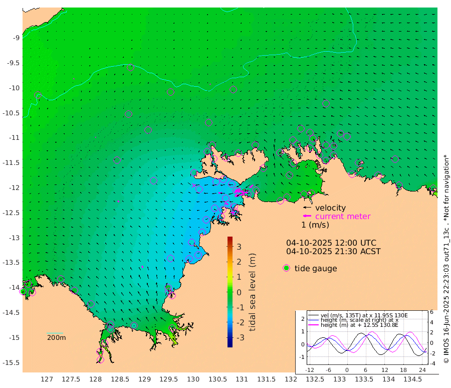 127cm/s -103T +4cm/s rms + 6cm/s 51T. Darwin_C1 52m 80cm/s -89T +4cm/s rms + 7cm/s -161T. Darwin_CW1 22m 70cm/s -108T +4cm/s rms + 8cm/s 61T. Darwin_CW2 34m 57cm/s -129T +3cm/s rms + 9cm/s 98T. Darwin_CW3 22m 83cm/s -91T +5cm/s rms + 7cm/s 88T. Darwin_C3 56m 78cm/s -115T +2cm/s rms + 9cm/s -126T. Darwin_CTbW 22m 6cm/s -52T +9cm/s rms + 2cm/s -110T. NWSLYN 196m 46cm/s -92T +1cm/s rms + 1cm/s -47T. DARBGF 30m 6cm/s -163T +7cm/s rms + 2cm/s -137T. ITFTIS 464m 4cm/s -48T +9cm/s rms + 1cm/s 74T. ITFMHB 146m 24cm/s -25T +4cm/s rms + 1cm/s -134T. ITFJBG 61m 19cm/s -50T +6cm/s rms + 4cm/s 121T. ITFFTB 108m 40cm/s -62T +4cm/s rms + 3cm/s 80T. NRSDAR 19m 14cm Carronade Island 15cm Guy Point 9cm Napier Broome Bay -37cm Lesueur Island -74cm Reveley Island -30cm Rocky Island -98cm Cape Domett -91cm Lacrosse Island -67cm Adolphus Island -11cm Pender Point 15cm Wyndham -61cm The Boxers -76cm Unnamed Shoal -8cm Loxton Shoal -119cm Pelican Island -49cm Calder Shoal -19cm Evans Shoal -48cm Quoin Island -151cm Port Keats -142cm Jones Point -31cm Catfish Island -138cm Cape Scott Offshore -179cm Cape Ford -162cm Anson Bay -40cm Goodrich Bank -137cm Peron Island North -163cm Point Jenny -163cm Native Point -155cm Fish Reef -171cm Tapa Bay -106cm Point Fawcett (Offshore) -171cm Burge Point -153cm Munkunuwa -146cm Beagle A -159cm Parsons Bank -168cm Fenton Patches -25cm Lynedoch Bank -156cm Hancox Shoal Area -171cm Nightcliff -167cm Darwin -166cm Charles Point Patches -108cm Glyde Point -61cm Chambers Bay -37cm Point Stuart -76cm Cape Hotham -60cm Christine Reef -32cm West Alligator Head -9cm East Field Island -51cm Two Hills Bay -112cm Newby Shoal -63cm Camp Point -157cm Medina Inlet South -93cm South Barlow Point -75cm St. Asaph Bay -46cm Cape Van Dieman -46cm Snake Bay -46cm Cache Point 12cm Echo Shoal -47cm Point Jahleel (Off) -67cm Cape Don -52cm Port Essington -54cm Smith Point - West -50cm NW Peacock Island -39cm North Of Jones Shoal -15cm Peacock Island -55cm Point David -55cm D'urville Point -47cm Money Shoal -54cm Copeland Island -67cm Cape Cockburn -52cm One Tree Point -63cm Hogmany Shoal -55cm New Year Island - West -56cm Grant Island -57cm Aurari Bay -65cm Cuthbert Point -62cm North Goulburn Island -66cm Paxie Shoal -66cm Entrance Island -58cm Yabooma Island