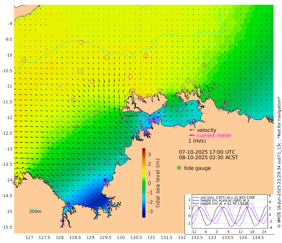 81cm/s -101T +4cm/s rms + 6cm/s 51T. Darwin_C1 52m 77cm/s -92T +4cm/s rms + 7cm/s -161T. Darwin_CW1 22m 43cm/s -106T +4cm/s rms + 8cm/s 61T. Darwin_CW2 34m 73cm/s -137T +3cm/s rms + 9cm/s 98T. Darwin_CW3 22m 100cm/s -90T +5cm/s rms + 7cm/s 88T. Darwin_C3 56m 28cm/s -115T +2cm/s rms + 9cm/s -126T. Darwin_CTbW 22m 8cm/s 158T +9cm/s rms + 2cm/s -110T. NWSLYN 196m 46cm/s 102T +1cm/s rms + 1cm/s -47T. DARBGF 30m 12cm/s 79T +7cm/s rms + 2cm/s -137T. ITFTIS 464m 19cm/s 126T +9cm/s rms + 1cm/s 74T. ITFMHB 146m 37cm/s 126T +4cm/s rms + 1cm/s -134T. ITFJBG 61m 48cm/s 119T +6cm/s rms + 4cm/s 121T. ITFFTB 108m 55cm/s 133T +4cm/s rms + 3cm/s 80T. NRSDAR 19m 52cm Carronade Island 41cm Guy Point 52cm Napier Broome Bay -16cm Lesueur Island -135cm Reveley Island -45cm Rocky Island -238cm Cape Domett -201cm Lacrosse Island -293cm Adolphus Island -304cm Pender Point -310cm Wyndham 74cm The Boxers 83cm Unnamed Shoal 108cm Loxton Shoal -249cm Pelican Island 94cm Calder Shoal 99cm Evans Shoal -388cm Quoin Island -181cm Port Keats -177cm Jones Point -321cm Catfish Island -79cm Cape Scott Offshore -4cm Cape Ford -89cm Anson Bay 95cm Goodrich Bank -55cm Peron Island North -44cm Point Jenny -40cm Native Point -50cm Fish Reef -73cm Tapa Bay 49cm Point Fawcett (Offshore) -91cm Burge Point -57cm Munkunuwa -5cm Beagle A -100cm Parsons Bank -77cm Fenton Patches 87cm Lynedoch Bank -117cm Hancox Shoal Area -111cm Nightcliff -127cm Darwin -91cm Charles Point Patches -126cm Glyde Point -172cm Chambers Bay -177cm Point Stuart -126cm Cape Hotham -154cm Christine Reef -201cm West Alligator Head -220cm East Field Island -122cm Two Hills Bay 42cm Newby Shoal -124cm Camp Point -68cm Medina Inlet South 59cm South Barlow Point 79cm St. Asaph Bay 99cm Cape Van Dieman 94cm Snake Bay 90cm Cache Point 113cm Echo Shoal 60cm Point Jahleel (Off) -8cm Cape Don 48cm Port Essington 52cm Smith Point - West 50cm NW Peacock Island 66cm North Of Jones Shoal 21cm Peacock Island 11cm Point David 47cm D'urville Point 42cm Money Shoal 3cm Copeland Island 8cm Cape Cockburn 15cm One Tree Point -4cm Hogmany Shoal 15cm New Year Island - West 6cm Grant Island -24cm Aurari Bay -59cm Cuthbert Point -23cm North Goulburn Island -89cm Paxie Shoal -113cm Entrance Island -168cm Yabooma Island