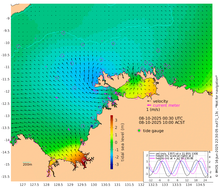 65cm/s -103T +4cm/s rms + 6cm/s 51T. Darwin_C1 52m 33cm/s -87T +4cm/s rms + 7cm/s -161T. Darwin_CW1 22m 49cm/s -107T +4cm/s rms + 8cm/s 61T. Darwin_CW2 34m 7cm/s -17T +3cm/s rms + 9cm/s 98T. Darwin_CW3 22m 37cm/s -97T +5cm/s rms + 7cm/s 88T. Darwin_C3 56m 47cm/s -117T +2cm/s rms + 9cm/s -126T. Darwin_CTbW 22m 13cm/s -36T +9cm/s rms + 2cm/s -110T. NWSLYN 196m 92cm/s -87T +1cm/s rms + 1cm/s -47T. DARBGF 30m 11cm/s -114T +7cm/s rms + 2cm/s -137T. ITFTIS 464m 25cm/s -33T +9cm/s rms + 1cm/s 74T. ITFMHB 146m 60cm/s -32T +4cm/s rms + 1cm/s -134T. ITFJBG 61m 63cm/s -53T +6cm/s rms + 4cm/s 121T. ITFFTB 108m 97cm/s -55T +4cm/s rms + 3cm/s 80T. NRSDAR 19m 13cm Carronade Island 20cm Guy Point 23cm Napier Broome Bay -11cm Lesueur Island 16cm Reveley Island 19cm Rocky Island 82cm Cape Domett 57cm Lacrosse Island 161cm Adolphus Island 266cm Pender Point 308cm Wyndham -119cm The Boxers -135cm Unnamed Shoal -97cm Loxton Shoal 56cm Pelican Island -135cm Calder Shoal -111cm Evans Shoal 254cm Quoin Island -34cm Port Keats -30cm Jones Point 258cm Catfish Island -108cm Cape Scott Offshore -260cm Cape Ford -125cm Anson Bay -129cm Goodrich Bank -138cm Peron Island North -161cm Point Jenny -163cm Native Point -157cm Fish Reef -151cm Tapa Bay -178cm Point Fawcett (Offshore) -138cm Burge Point -155cm Munkunuwa -175cm Beagle A -123cm Parsons Bank -143cm Fenton Patches -101cm Lynedoch Bank -101cm Hancox Shoal Area -119cm Nightcliff -109cm Darwin -138cm Charles Point Patches -22cm Glyde Point 87cm Chambers Bay 116cm Point Stuart 13cm Cape Hotham 72cm Christine Reef 142cm West Alligator Head 192cm East Field Island 46cm Two Hills Bay -156cm Newby Shoal 43cm Camp Point -146cm Medina Inlet South -169cm South Barlow Point -164cm St. Asaph Bay -139cm Cape Van Dieman -136cm Snake Bay -132cm Cache Point -80cm Echo Shoal -109cm Point Jahleel (Off) -69cm Cape Don -105cm Port Essington -112cm Smith Point - West -102cm NW Peacock Island -107cm North Of Jones Shoal -37cm Peacock Island -70cm Point David -107cm D'urville Point -86cm Money Shoal -64cm Copeland Island -86cm Cape Cockburn -72cm One Tree Point -73cm Hogmany Shoal -70cm New Year Island - West -67cm Grant Island -39cm Aurari Bay -15cm Cuthbert Point -47cm North Goulburn Island 16cm Paxie Shoal 30cm Entrance Island 80cm Yabooma Island