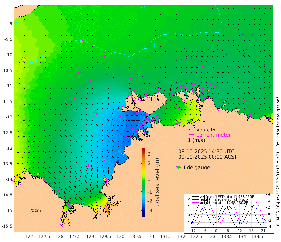 171cm/s -103T +4cm/s rms + 6cm/s 51T. Darwin_C1 52m 124cm/s -89T +4cm/s rms + 7cm/s -161T. Darwin_CW1 22m 129cm/s -108T +4cm/s rms + 8cm/s 61T. Darwin_CW2 34m 63cm/s -123T +3cm/s rms + 9cm/s 98T. Darwin_CW3 22m 159cm/s -92T +5cm/s rms + 7cm/s 88T. Darwin_C3 56m 98cm/s -115T +2cm/s rms + 9cm/s -126T. Darwin_CTbW 22m 1cm/s -57T +9cm/s rms + 2cm/s -110T. NWSLYN 196m 79cm/s -92T +1cm/s rms + 1cm/s -47T. DARBGF 30m 1cm/s -133T +7cm/s rms + 2cm/s -137T. ITFTIS 464m 13cm/s 2T +9cm/s rms + 1cm/s 74T. ITFMHB 146m 49cm/s -19T +4cm/s rms + 1cm/s -134T. ITFJBG 61m 34cm/s -35T +6cm/s rms + 4cm/s 121T. ITFFTB 108m 70cm/s -63T +4cm/s rms + 3cm/s 80T. NRSDAR 19m 159cm Carronade Island 165cm Guy Point 161cm Napier Broome Bay 57cm Lesueur Island -57cm Reveley Island -24cm Rocky Island -78cm Cape Domett -64cm Lacrosse Island -15cm Adolphus Island 99cm Pender Point 167cm Wyndham -25cm The Boxers -64cm Unnamed Shoal 37cm Loxton Shoal -119cm Pelican Island -28cm Calder Shoal 6cm Evans Shoal 8cm Quoin Island -179cm Port Keats -182cm Jones Point 125cm Catfish Island -172cm Cape Scott Offshore -269cm Cape Ford -210cm Anson Bay -26cm Goodrich Bank -190cm Peron Island North -206cm Point Jenny -207cm Native Point -213cm Fish Reef -224cm Tapa Bay -129cm Point Fawcett (Offshore) -235cm Burge Point -242cm Munkunuwa -180cm Beagle A -233cm Parsons Bank -219cm Fenton Patches -2cm Lynedoch Bank -205cm Hancox Shoal Area -224cm Nightcliff -233cm Darwin -220cm Charles Point Patches -114cm Glyde Point -6cm Chambers Bay 17cm Point Stuart -67cm Cape Hotham -5cm Christine Reef 30cm West Alligator Head 82cm East Field Island -19cm Two Hills Bay -100cm Newby Shoal -23cm Camp Point -224cm Medina Inlet South -123cm South Barlow Point -86cm St. Asaph Bay -38cm Cape Van Dieman -44cm Snake Bay -29cm Cache Point 77cm Echo Shoal -35cm Point Jahleel (Off) -56cm Cape Don -45cm Port Essington -46cm Smith Point - West -37cm NW Peacock Island -24cm North Of Jones Shoal -10cm Peacock Island -46cm Point David -48cm D'urville Point -25cm Money Shoal -44cm Copeland Island -56cm Cape Cockburn -41cm One Tree Point -39cm Hogmany Shoal -35cm New Year Island - West -42cm Grant Island -42cm Aurari Bay -39cm Cuthbert Point -47cm North Goulburn Island -36cm Paxie Shoal -40cm Entrance Island -25cm Yabooma Island