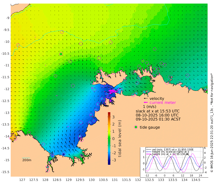 189cm/s -101T +4cm/s rms + 6cm/s 51T. Darwin_C1 52m 154cm/s -90T +4cm/s rms + 7cm/s -161T. Darwin_CW1 22m 121cm/s -107T +4cm/s rms + 8cm/s 61T. Darwin_CW2 34m 91cm/s -133T +3cm/s rms + 9cm/s 98T. Darwin_CW3 22m 188cm/s -91T +5cm/s rms + 7cm/s 88T. Darwin_C3 56m 102cm/s -115T +2cm/s rms + 9cm/s -126T. Darwin_CTbW 22m 6cm/s 161T +9cm/s rms + 2cm/s -110T. NWSLYN 196m 30cm/s -104T +1cm/s rms + 1cm/s -47T. DARBGF 30m 8cm/s 79T +7cm/s rms + 2cm/s -137T. ITFTIS 464m 11cm/s 79T +9cm/s rms + 1cm/s 74T. ITFMHB 146m 19cm/s 24T +4cm/s rms + 1cm/s -134T. ITFJBG 61m 17cm/s 76T +6cm/s rms + 4cm/s 121T. ITFFTB 108m 23cm/s -89T +4cm/s rms + 3cm/s 80T. NRSDAR 19m 145cm Carronade Island 142cm Guy Point 147cm Napier Broome Bay 20cm Lesueur Island -147cm Reveley Island -59cm Rocky Island -235cm Cape Domett -200cm Lacrosse Island -230cm Adolphus Island -153cm Pender Point -110cm Wyndham 31cm The Boxers 7cm Unnamed Shoal 102cm Loxton Shoal -271cm Pelican Island 43cm Calder Shoal 73cm Evans Shoal -281cm Quoin Island -266cm Port Keats -264cm Jones Point -150cm Catfish Island -185cm Cape Scott Offshore -201cm Cape Ford -218cm Anson Bay 47cm Goodrich Bank -183cm Peron Island North -185cm Point Jenny -183cm Native Point -196cm Fish Reef -219cm Tapa Bay -61cm Point Fawcett (Offshore) -241cm Burge Point -220cm Munkunuwa -140cm Beagle A -246cm Parsons Bank -220cm Fenton Patches 59cm Lynedoch Bank -238cm Hancox Shoal Area -247cm Nightcliff -264cm Darwin -227cm Charles Point Patches -179cm Glyde Point -135cm Chambers Bay -124cm Point Stuart -147cm Cape Hotham -122cm Christine Reef -134cm West Alligator Head -110cm East Field Island -110cm Two Hills Bay -51cm Newby Shoal -111cm Camp Point -215cm Medina Inlet South -49cm South Barlow Point -8cm St. Asaph Bay 41cm Cape Van Dieman 33cm Snake Bay 41cm Cache Point 135cm Echo Shoal 13cm Point Jahleel (Off) -50cm Cape Don 0cm Port Essington 0cm Smith Point - West 5cm NW Peacock Island 28cm North Of Jones Shoal 7cm Peacock Island -28cm Point David -4cm D'urville Point 11cm Money Shoal -33cm Copeland Island -40cm Cape Cockburn -22cm One Tree Point -35cm Hogmany Shoal -19cm New Year Island - West -30cm Grant Island -52cm Aurari Bay -75cm Cuthbert Point -54cm North Goulburn Island -91cm Paxie Shoal -113cm Entrance Island -140cm Yabooma Island