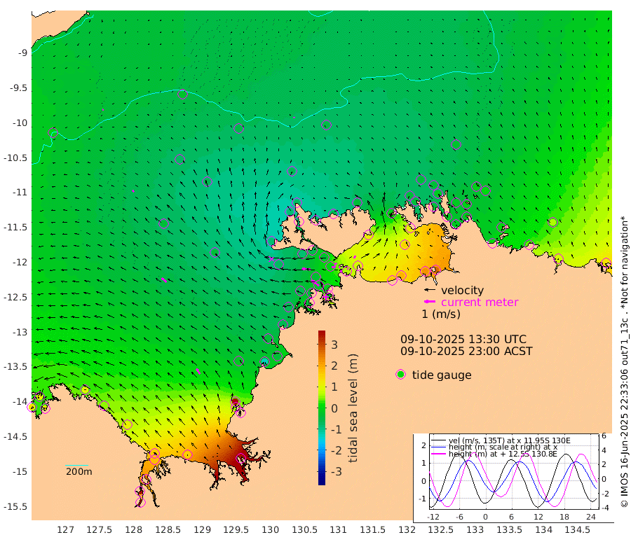 18cm/s -107T +4cm/s rms + 6cm/s 51T. Darwin_C1 52m 8cm/s 71T +4cm/s rms + 7cm/s -161T. Darwin_CW1 22m 35cm/s -109T +4cm/s rms + 8cm/s 61T. Darwin_CW2 34m 25cm/s 25T +3cm/s rms + 9cm/s 98T. Darwin_CW3 22m 13cm/s -112T +5cm/s rms + 7cm/s 88T. Darwin_C3 56m 17cm/s -121T +2cm/s rms + 9cm/s -126T. Darwin_CTbW 22m 7cm/s -16T +9cm/s rms + 2cm/s -110T. NWSLYN 196m 79cm/s -86T +1cm/s rms + 1cm/s -47T. DARBGF 30m 10cm/s -100T +7cm/s rms + 2cm/s -137T. ITFTIS 464m 19cm/s -35T +9cm/s rms + 1cm/s 74T. ITFMHB 146m 57cm/s -32T +4cm/s rms + 1cm/s -134T. ITFJBG 61m 56cm/s -50T +6cm/s rms + 4cm/s 121T. ITFFTB 108m 89cm/s -55T +4cm/s rms + 3cm/s 80T. NRSDAR 19m 121cm Carronade Island 133cm Guy Point 122cm Napier Broome Bay 106cm Lesueur Island 109cm Reveley Island 48cm Rocky Island 179cm Cape Domett 162cm Lacrosse Island 262cm Adolphus Island 342cm Pender Point 399cm Wyndham -35cm The Boxers -72cm Unnamed Shoal -30cm Loxton Shoal 153cm Pelican Island -56cm Calder Shoal -46cm Evans Shoal 345cm Quoin Island 66cm Port Keats 52cm Jones Point 387cm Catfish Island -16cm Cape Scott Offshore -125cm Cape Ford -35cm Anson Bay -65cm Goodrich Bank -45cm Peron Island North -60cm Point Jenny -64cm Native Point -62cm Fish Reef -53cm Tapa Bay -88cm Point Fawcett (Offshore) -43cm Burge Point -87cm Munkunuwa -70cm Beagle A -43cm Parsons Bank -41cm Fenton Patches -46cm Lynedoch Bank -9cm Hancox Shoal Area -22cm Nightcliff -20cm Darwin -38cm Charles Point Patches 58cm Glyde Point 164cm Chambers Bay 185cm Point Stuart 88cm Cape Hotham 156cm Christine Reef 214cm West Alligator Head 265cm East Field Island 118cm Two Hills Bay -43cm Newby Shoal 114cm Camp Point -61cm Medina Inlet South -98cm South Barlow Point -88cm St. Asaph Bay -76cm Cape Van Dieman -77cm Snake Bay -59cm Cache Point -8cm Echo Shoal -41cm Point Jahleel (Off) -1cm Cape Don -42cm Port Essington -43cm Smith Point - West -37cm NW Peacock Island -42cm North Of Jones Shoal -15cm Peacock Island -18cm Point David -42cm D'urville Point -26cm Money Shoal -12cm Copeland Island -13cm Cape Cockburn -17cm One Tree Point 7cm Hogmany Shoal -10cm New Year Island - West -8cm Grant Island 12cm Aurari Bay 43cm Cuthbert Point 10cm North Goulburn Island 64cm Paxie Shoal 80cm Entrance Island 127cm Yabooma Island