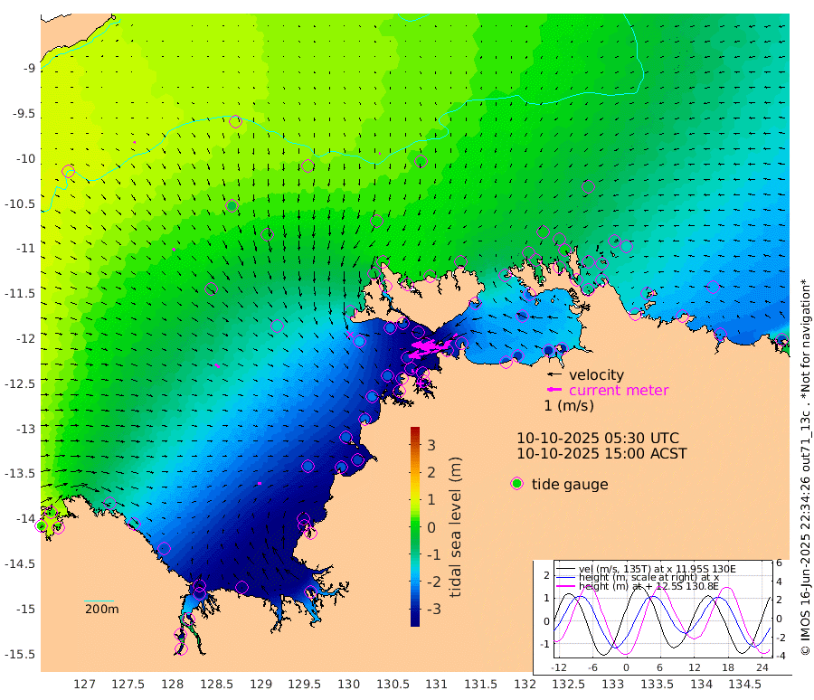 236cm/s -101T +4cm/s rms + 6cm/s 51T. Darwin_C1 52m 194cm/s -91T +4cm/s rms + 7cm/s -161T. Darwin_CW1 22m 110cm/s -106T +4cm/s rms + 8cm/s 61T. Darwin_CW2 34m 128cm/s -137T +3cm/s rms + 9cm/s 98T. Darwin_CW3 22m 196cm/s -90T +5cm/s rms + 7cm/s 88T. Darwin_C3 56m 130cm/s -115T +2cm/s rms + 9cm/s -126T. Darwin_CTbW 22m 11cm/s -175T +9cm/s rms + 2cm/s -110T. NWSLYN 196m 11cm/s 167T +1cm/s rms + 1cm/s -47T. DARBGF 30m 13cm/s 111T +7cm/s rms + 2cm/s -137T. ITFTIS 464m 19cm/s 137T +9cm/s rms + 1cm/s 74T. ITFMHB 146m 23cm/s 101T +4cm/s rms + 1cm/s -134T. ITFJBG 61m 38cm/s 118T +6cm/s rms + 4cm/s 121T. ITFFTB 108m 22cm/s 157T +4cm/s rms + 3cm/s 80T. NRSDAR 19m 25cm Carronade Island 23cm Guy Point 25cm Napier Broome Bay -122cm Lesueur Island -253cm Reveley Island -119cm Rocky Island -384cm Cape Domett -343cm Lacrosse Island -420cm Adolphus Island -356cm Pender Point -350cm Wyndham -29cm The Boxers -50cm Unnamed Shoal 57cm Loxton Shoal -404cm Pelican Island 3cm Calder Shoal 40cm Evans Shoal -498cm Quoin Island -371cm Port Keats -356cm Jones Point -401cm Catfish Island -241cm Cape Scott Offshore -247cm Cape Ford -266cm Anson Bay 14cm Goodrich Bank -238cm Peron Island North -225cm Point Jenny -222cm Native Point -243cm Fish Reef -264cm Tapa Bay -90cm Point Fawcett (Offshore) -295cm Burge Point -231cm Munkunuwa -188cm Beagle A -295cm Parsons Bank -281cm Fenton Patches 21cm Lynedoch Bank -301cm Hancox Shoal Area -303cm Nightcliff -335cm Darwin -293cm Charles Point Patches -277cm Glyde Point -258cm Chambers Bay -266cm Point Stuart -253cm Cape Hotham -245cm Christine Reef -287cm West Alligator Head -287cm East Field Island -226cm Two Hills Bay -131cm Newby Shoal -222cm Camp Point -257cm Medina Inlet South -72cm South Barlow Point -30cm St. Asaph Bay 13cm Cape Van Dieman 0cm Snake Bay -1cm Cache Point 88cm Echo Shoal -34cm Point Jahleel (Off) -116cm Cape Don -50cm Port Essington -49cm Smith Point - West -50cm NW Peacock Island -18cm North Of Jones Shoal -10cm Peacock Island -92cm Point David -58cm D'urville Point -47cm Money Shoal -97cm Copeland Island -128cm Cape Cockburn -86cm One Tree Point -130cm Hogmany Shoal -94cm New Year Island - West -104cm Grant Island -132cm Aurari Bay -171cm Cuthbert Point -133cm North Goulburn Island -184cm Paxie Shoal -213cm Entrance Island -250cm Yabooma Island