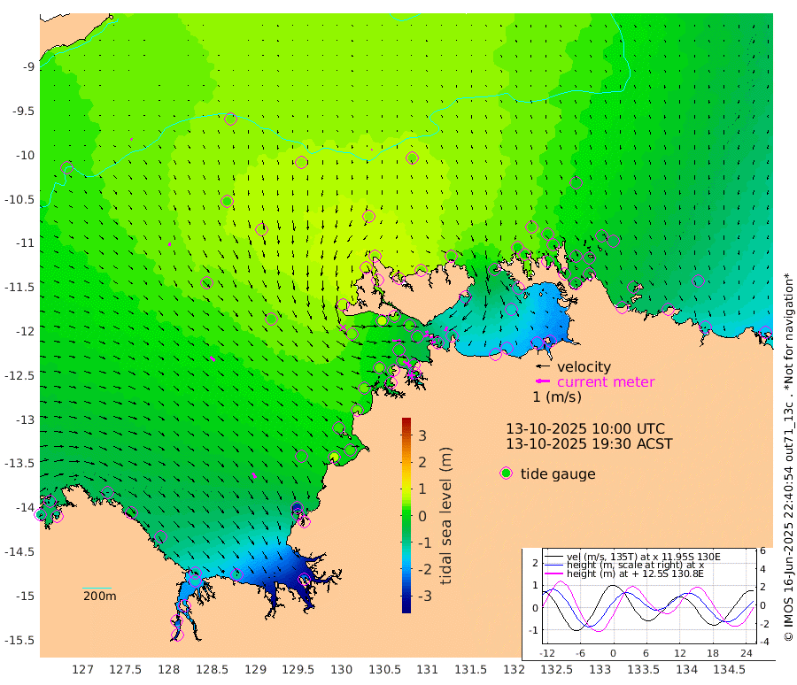 21cm/s 81T +4cm/s rms + 6cm/s 51T. Darwin_C1 52m 5cm/s 88T +4cm/s rms + 7cm/s -161T. Darwin_CW1 22m 35cm/s 72T +4cm/s rms + 8cm/s 61T. Darwin_CW2 34m 36cm/s -153T +3cm/s rms + 9cm/s 98T. Darwin_CW3 22m 23cm/s 81T +5cm/s rms + 7cm/s 88T. Darwin_C3 56m 21cm/s 61T +2cm/s rms + 9cm/s -126T. Darwin_CTbW 22m 5cm/s -172T +9cm/s rms + 2cm/s -110T. NWSLYN 196m 63cm/s 93T +1cm/s rms + 1cm/s -47T. DARBGF 30m 9cm/s 123T +7cm/s rms + 2cm/s -137T. ITFTIS 464m 24cm/s 164T +9cm/s rms + 1cm/s 74T. ITFMHB 146m 42cm/s 150T +4cm/s rms + 1cm/s -134T. ITFJBG 61m 44cm/s 135T +6cm/s rms + 4cm/s 121T. ITFFTB 108m 66cm/s 123T +4cm/s rms + 3cm/s 80T. NRSDAR 19m -98cm Carronade Island -100cm Guy Point -104cm Napier Broome Bay -85cm Lesueur Island -69cm Reveley Island -12cm Rocky Island -125cm Cape Domett -112cm Lacrosse Island -176cm Adolphus Island -245cm Pender Point -291cm Wyndham 23cm The Boxers 27cm Unnamed Shoal 39cm Loxton Shoal -106cm Pelican Island 49cm Calder Shoal 46cm Evans Shoal -222cm Quoin Island -48cm Port Keats -50cm Jones Point -292cm Catfish Island 17cm Cape Scott Offshore 75cm Cape Ford 26cm Anson Bay 50cm Goodrich Bank 33cm Peron Island North 36cm Point Jenny 40cm Native Point 38cm Fish Reef 34cm Tapa Bay 65cm Point Fawcett (Offshore) 21cm Burge Point 69cm Munkunuwa 44cm Beagle A 25cm Parsons Bank 20cm Fenton Patches 36cm Lynedoch Bank 2cm Hancox Shoal Area 15cm Nightcliff 9cm Darwin 24cm Charles Point Patches -60cm Glyde Point -145cm Chambers Bay -164cm Point Stuart -85cm Cape Hotham -132cm Christine Reef -184cm West Alligator Head -225cm East Field Island -108cm Two Hills Bay 23cm Newby Shoal -107cm Camp Point 45cm Medina Inlet South 76cm South Barlow Point 72cm St. Asaph Bay 55cm Cape Van Dieman 56cm Snake Bay 40cm Cache Point 25cm Echo Shoal 27cm Point Jahleel (Off) -16cm Cape Don 17cm Port Essington 22cm Smith Point - West 12cm NW Peacock Island 26cm North Of Jones Shoal 7cm Peacock Island -19cm Point David 14cm D'urville Point -3cm Money Shoal -24cm Copeland Island -32cm Cape Cockburn -15cm One Tree Point -45cm Hogmany Shoal -26cm New Year Island - West -27cm Grant Island -50cm Aurari Bay -82cm Cuthbert Point -50cm North Goulburn Island -101cm Paxie Shoal -119cm Entrance Island -162cm Yabooma Island