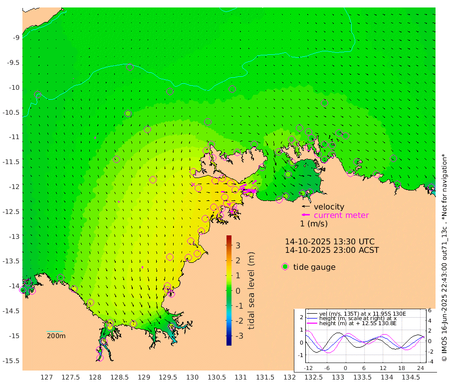 170cm/s 78T +4cm/s rms + 6cm/s 51T. Darwin_C1 52m 99cm/s 93T +4cm/s rms + 7cm/s -161T. Darwin_CW1 22m 79cm/s 73T +4cm/s rms + 8cm/s 61T. Darwin_CW2 34m 72cm/s 51T +3cm/s rms + 9cm/s 98T. Darwin_CW3 22m 110cm/s 89T +5cm/s rms + 7cm/s 88T. Darwin_C3 56m 94cm/s 65T +2cm/s rms + 9cm/s -126T. Darwin_CTbW 22m 1cm/s -154T +9cm/s rms + 2cm/s -110T. NWSLYN 196m 40cm/s 86T +1cm/s rms + 1cm/s -47T. DARBGF 30m 5cm/s -177T +7cm/s rms + 2cm/s -137T. ITFTIS 464m 20cm/s -173T +9cm/s rms + 1cm/s 74T. ITFMHB 146m 20cm/s 174T +4cm/s rms + 1cm/s -134T. ITFJBG 61m 19cm/s 160T +6cm/s rms + 4cm/s 121T. ITFFTB 108m 36cm/s 112T +4cm/s rms + 3cm/s 80T. NRSDAR 19m -27cm Carronade Island -29cm Guy Point -25cm Napier Broome Bay 18cm Lesueur Island 79cm Reveley Island 84cm Rocky Island 95cm Cape Domett 89cm Lacrosse Island 74cm Adolphus Island 24cm Pender Point 1cm Wyndham 37cm The Boxers 41cm Unnamed Shoal 10cm Loxton Shoal 107cm Pelican Island 36cm Calder Shoal 21cm Evans Shoal 88cm Quoin Island 123cm Port Keats 112cm Jones Point 85cm Catfish Island 115cm Cape Scott Offshore 111cm Cape Ford 124cm Anson Bay 23cm Goodrich Bank 121cm Peron Island North 116cm Point Jenny 116cm Native Point 125cm Fish Reef 125cm Tapa Bay 84cm Point Fawcett (Offshore) 125cm Burge Point 134cm Munkunuwa 102cm Beagle A 128cm Parsons Bank 119cm Fenton Patches 13cm Lynedoch Bank 116cm Hancox Shoal Area 127cm Nightcliff 130cm Darwin 120cm Charles Point Patches 79cm Glyde Point 36cm Chambers Bay 35cm Point Stuart 61cm Cape Hotham 39cm Christine Reef 38cm West Alligator Head 13cm East Field Island 48cm Two Hills Bay 75cm Newby Shoal 30cm Camp Point 128cm Medina Inlet South 72cm South Barlow Point 56cm St. Asaph Bay 27cm Cape Van Dieman 31cm Snake Bay 27cm Cache Point -8cm Echo Shoal 33cm Point Jahleel (Off) 45cm Cape Don 29cm Port Essington 35cm Smith Point - West 26cm NW Peacock Island 24cm North Of Jones Shoal 8cm Peacock Island 16cm Point David 30cm D'urville Point 8cm Money Shoal 15cm Copeland Island 26cm Cape Cockburn 21cm One Tree Point 18cm Hogmany Shoal 15cm New Year Island - West 19cm Grant Island 16cm Aurari Bay 15cm Cuthbert Point 18cm North Goulburn Island 5cm Paxie Shoal 2cm Entrance Island -15cm Yabooma Island