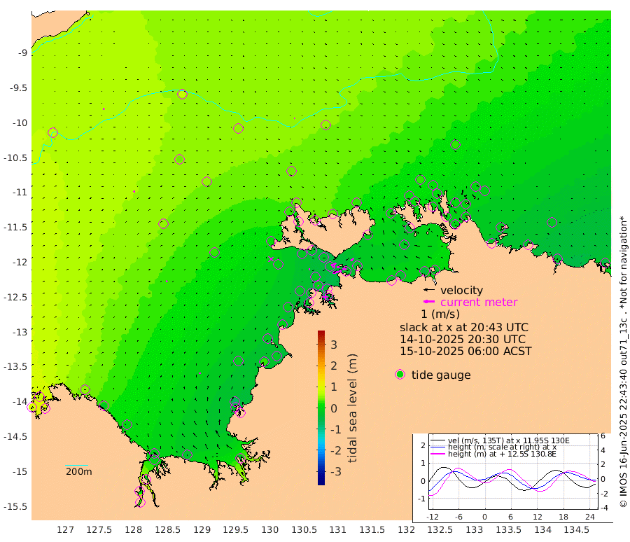 83cm/s -101T +4cm/s rms + 6cm/s 51T. Darwin_C1 52m 32cm/s -90T +4cm/s rms + 7cm/s -161T. Darwin_CW1 22m 23cm/s -107T +4cm/s rms + 8cm/s 61T. Darwin_CW2 34m 33cm/s -132T +3cm/s rms + 9cm/s 98T. Darwin_CW3 22m 24cm/s -91T +5cm/s rms + 7cm/s 88T. Darwin_C3 56m 52cm/s -116T +2cm/s rms + 9cm/s -126T. Darwin_CTbW 22m 7cm/s 116T +9cm/s rms + 2cm/s -110T. NWSLYN 196m 9cm/s -90T +1cm/s rms + 1cm/s -47T. DARBGF 30m 10cm/s 27T +7cm/s rms + 2cm/s -137T. ITFTIS 464m 13cm/s 29T +9cm/s rms + 1cm/s 74T. ITFMHB 146m 13cm/s 1T +4cm/s rms + 1cm/s -134T. ITFJBG 61m 12cm/s 22T +6cm/s rms + 4cm/s 121T. ITFFTB 108m 10cm/s -78T +4cm/s rms + 3cm/s 80T. NRSDAR 19m 76cm Carronade Island 82cm Guy Point 85cm Napier Broome Bay 53cm Lesueur Island -2cm Reveley Island -13cm Rocky Island -8cm Cape Domett -5cm Lacrosse Island -13cm Adolphus Island 22cm Pender Point 28cm Wyndham 50cm The Boxers 37cm Unnamed Shoal 71cm Loxton Shoal -30cm Pelican Island 54cm Calder Shoal 50cm Evans Shoal -24cm Quoin Island -19cm Port Keats -29cm Jones Point -73cm Catfish Island -9cm Cape Scott Offshore 25cm Cape Ford -15cm Anson Bay 44cm Goodrich Bank -17cm Peron Island North -10cm Point Jenny -8cm Native Point -20cm Fish Reef -14cm Tapa Bay 18cm Point Fawcett (Offshore) -15cm Burge Point -21cm Munkunuwa -1cm Beagle A -30cm Parsons Bank -18cm Fenton Patches 47cm Lynedoch Bank -26cm Hancox Shoal Area -23cm Nightcliff -22cm Darwin -6cm Charles Point Patches -20cm Glyde Point -24cm Chambers Bay -33cm Point Stuart -25cm Cape Hotham -19cm Christine Reef -40cm West Alligator Head -33cm East Field Island -26cm Two Hills Bay 33cm Newby Shoal -2cm Camp Point -13cm Medina Inlet South 22cm South Barlow Point 33cm St. Asaph Bay 42cm Cape Van Dieman 41cm Snake Bay 38cm Cache Point 71cm Echo Shoal 26cm Point Jahleel (Off) 5cm Cape Don 19cm Port Essington 13cm Smith Point - West 15cm NW Peacock Island 29cm North Of Jones Shoal 8cm Peacock Island 3cm Point David 10cm D'urville Point 26cm Money Shoal -2cm Copeland Island -3cm Cape Cockburn 6cm One Tree Point 0cm Hogmany Shoal 8cm New Year Island - West 3cm Grant Island -16cm Aurari Bay -24cm Cuthbert Point -10cm North Goulburn Island -12cm Paxie Shoal -34cm Entrance Island -46cm Yabooma Island