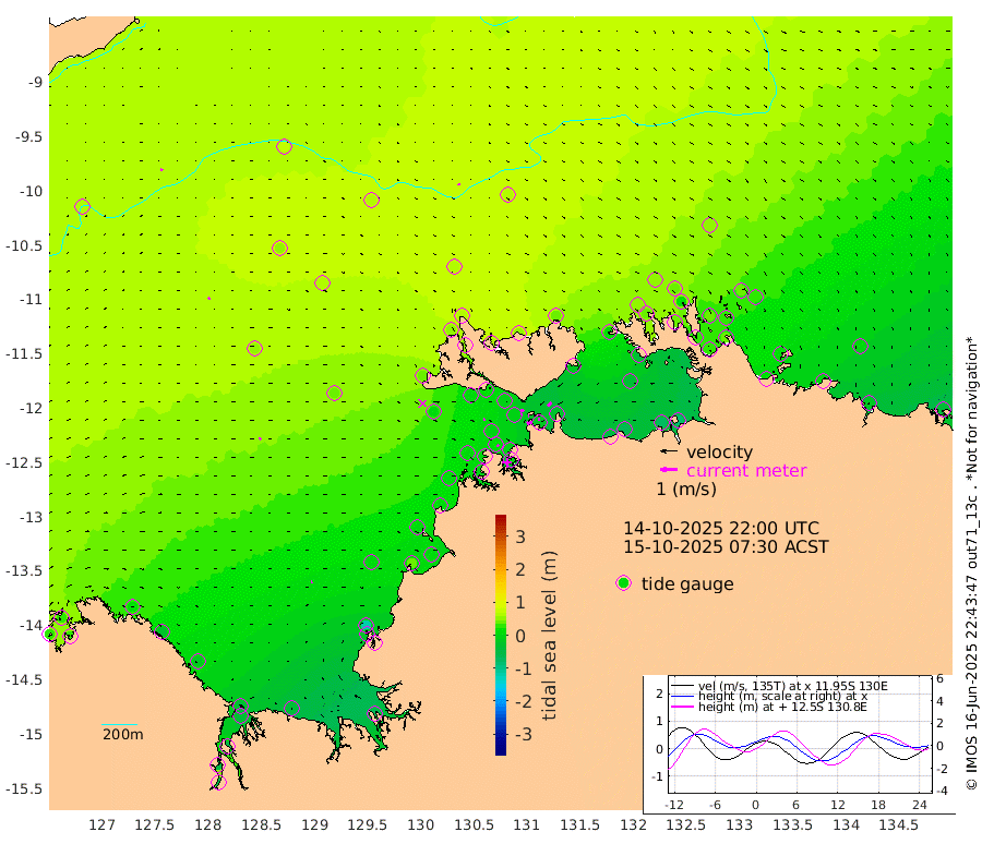 34cm/s -102T +4cm/s rms + 6cm/s 51T. Darwin_C1 52m 11cm/s -84T +4cm/s rms + 7cm/s -161T. Darwin_CW1 22m 7cm/s -120T +4cm/s rms + 8cm/s 61T. Darwin_CW2 34m 27cm/s -136T +3cm/s rms + 9cm/s 98T. Darwin_CW3 22m 4cm/s -87T +5cm/s rms + 7cm/s 88T. Darwin_C3 56m 19cm/s -116T +2cm/s rms + 9cm/s -126T. Darwin_CTbW 22m 9cm/s 126T +9cm/s rms + 2cm/s -110T. NWSLYN 196m 10cm/s 96T +1cm/s rms + 1cm/s -47T. DARBGF 30m 10cm/s 29T +7cm/s rms + 2cm/s -137T. ITFTIS 464m 11cm/s 36T +9cm/s rms + 1cm/s 74T. ITFMHB 146m 6cm/s 57T +4cm/s rms + 1cm/s -134T. ITFJBG 61m 10cm/s 63T +6cm/s rms + 4cm/s 121T. ITFFTB 108m 10cm/s 135T +4cm/s rms + 3cm/s 80T. NRSDAR 19m 24cm Carronade Island 29cm Guy Point 32cm Napier Broome Bay 20cm Lesueur Island -20cm Reveley Island -27cm Rocky Island -36cm Cape Domett -34cm Lacrosse Island -48cm Adolphus Island -46cm Pender Point -54cm Wyndham 53cm The Boxers 52cm Unnamed Shoal 74cm Loxton Shoal -43cm Pelican Island 61cm Calder Shoal 62cm Evans Shoal -63cm Quoin Island -19cm Port Keats -29cm Jones Point -120cm Catfish Island 6cm Cape Scott Offshore 37cm Cape Ford 8cm Anson Bay 62cm Goodrich Bank 10cm Peron Island North 6cm Point Jenny 9cm Native Point 1cm Fish Reef 6cm Tapa Bay 41cm Point Fawcett (Offshore) -1cm Burge Point 7cm Munkunuwa 10cm Beagle A -2cm Parsons Bank -8cm Fenton Patches 62cm Lynedoch Bank -6cm Hancox Shoal Area -7cm Nightcliff 3cm Darwin 20cm Charles Point Patches -20cm Glyde Point -51cm Chambers Bay -61cm Point Stuart -30cm Cape Hotham -45cm Christine Reef -74cm West Alligator Head -83cm East Field Island -35cm Two Hills Bay 38cm Newby Shoal -19cm Camp Point 13cm Medina Inlet South 52cm South Barlow Point 55cm St. Asaph Bay 62cm Cape Van Dieman 66cm Snake Bay 55cm Cache Point 64cm Echo Shoal 43cm Point Jahleel (Off) 21cm Cape Don 46cm Port Essington 40cm Smith Point - West 42cm NW Peacock Island 54cm North Of Jones Shoal 18cm Peacock Island 34cm Point David 40cm D'urville Point 50cm Money Shoal 29cm Copeland Island 36cm Cape Cockburn 37cm One Tree Point 33cm Hogmany Shoal 35cm New Year Island - West 33cm Grant Island 13cm Aurari Bay 3cm Cuthbert Point 20cm North Goulburn Island 8cm Paxie Shoal -17cm Entrance Island -34cm Yabooma Island