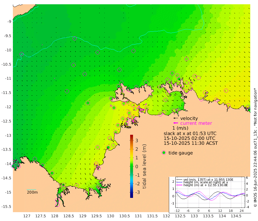 101cm/s 78T +4cm/s rms + 6cm/s 51T. Darwin_C1 52m 44cm/s 91T +4cm/s rms + 7cm/s -161T. Darwin_CW1 22m 26cm/s 75T +4cm/s rms + 8cm/s 61T. Darwin_CW2 34m 52cm/s 45T +3cm/s rms + 9cm/s 98T. Darwin_CW3 22m 41cm/s 90T +5cm/s rms + 7cm/s 88T. Darwin_C3 56m 55cm/s 64T +2cm/s rms + 9cm/s -126T. Darwin_CTbW 22m 2cm/s 127T +9cm/s rms + 2cm/s -110T. NWSLYN 196m 7cm/s 86T +1cm/s rms + 1cm/s -47T. DARBGF 30m 4cm/s -84T +7cm/s rms + 2cm/s -137T. ITFTIS 464m 5cm/s -49T +9cm/s rms + 1cm/s 74T. ITFMHB 146m 4cm/s -155T +4cm/s rms + 1cm/s -134T. ITFJBG 61m 6cm/s -96T +6cm/s rms + 4cm/s 121T. ITFFTB 108m 5cm/s 81T +4cm/s rms + 3cm/s 80T. NRSDAR 19m -46cm Carronade Island -50cm Guy Point -47cm Napier Broome Bay -11cm Lesueur Island 21cm Reveley Island -15cm Rocky Island 41cm Cape Domett 33cm Lacrosse Island 44cm Adolphus Island 13cm Pender Point 11cm Wyndham -8cm The Boxers 15cm Unnamed Shoal -33cm Loxton Shoal 63cm Pelican Island -18cm Calder Shoal -14cm Evans Shoal 64cm Quoin Island 55cm Port Keats 62cm Jones Point 113cm Catfish Island 46cm Cape Scott Offshore 17cm Cape Ford 58cm Anson Bay -4cm Goodrich Bank 57cm Peron Island North 42cm Point Jenny 39cm Native Point 51cm Fish Reef 50cm Tapa Bay 23cm Point Fawcett (Offshore) 49cm Burge Point 43cm Munkunuwa 25cm Beagle A 69cm Parsons Bank 42cm Fenton Patches -5cm Lynedoch Bank 65cm Hancox Shoal Area 55cm Nightcliff 70cm Darwin 61cm Charles Point Patches 59cm Glyde Point 55cm Chambers Bay 62cm Point Stuart 60cm Cape Hotham 45cm Christine Reef 63cm West Alligator Head 54cm East Field Island 61cm Two Hills Bay 7cm Newby Shoal 42cm Camp Point 51cm Medina Inlet South 18cm South Barlow Point 3cm St. Asaph Bay 0cm Cape Van Dieman 7cm Snake Bay 6cm Cache Point -44cm Echo Shoal 15cm Point Jahleel (Off) 45cm Cape Don 37cm Port Essington 36cm Smith Point - West 40cm NW Peacock Island 26cm North Of Jones Shoal 12cm Peacock Island 67cm Point David 46cm D'urville Point 41cm Money Shoal 70cm Copeland Island 92cm Cape Cockburn 64cm One Tree Point 88cm Hogmany Shoal 62cm New Year Island - West 69cm Grant Island 85cm Aurari Bay 102cm Cuthbert Point 86cm North Goulburn Island 101cm Paxie Shoal 109cm Entrance Island 129cm Yabooma Island