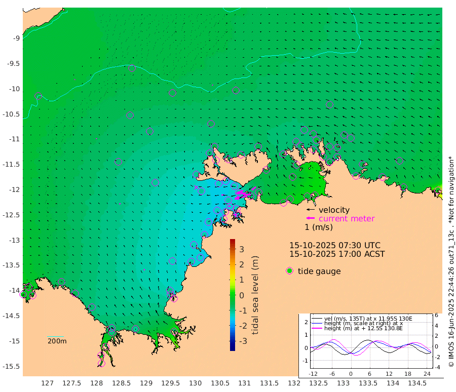 163cm/s -102T +4cm/s rms + 6cm/s 51T. Darwin_C1 52m 100cm/s -89T +4cm/s rms + 7cm/s -161T. Darwin_CW1 22m 66cm/s -106T +4cm/s rms + 8cm/s 61T. Darwin_CW2 34m 65cm/s -128T +3cm/s rms + 9cm/s 98T. Darwin_CW3 22m 97cm/s -90T +5cm/s rms + 7cm/s 88T. Darwin_C3 56m 96cm/s -115T +2cm/s rms + 9cm/s -126T. Darwin_CTbW 22m 9cm/s -48T +9cm/s rms + 2cm/s -110T. NWSLYN 196m 38cm/s -93T +1cm/s rms + 1cm/s -47T. DARBGF 30m 4cm/s -154T +7cm/s rms + 2cm/s -137T. ITFTIS 464m 7cm/s -15T +9cm/s rms + 1cm/s 74T. ITFMHB 146m 13cm/s -22T +4cm/s rms + 1cm/s -134T. ITFJBG 61m 12cm/s -45T +6cm/s rms + 4cm/s 121T. ITFFTB 108m 30cm/s -68T +4cm/s rms + 3cm/s 80T. NRSDAR 19m -22cm Carronade Island -22cm Guy Point -34cm Napier Broome Bay -60cm Lesueur Island -80cm Reveley Island -63cm Rocky Island -97cm Cape Domett -90cm Lacrosse Island -72cm Adolphus Island -42cm Pender Point -24cm Wyndham -81cm The Boxers -90cm Unnamed Shoal -57cm Loxton Shoal -102cm Pelican Island -76cm Calder Shoal -60cm Evans Shoal -86cm Quoin Island -123cm Port Keats -109cm Jones Point -94cm Catfish Island -125cm Cape Scott Offshore -121cm Cape Ford -135cm Anson Bay -63cm Goodrich Bank -131cm Peron Island North -122cm Point Jenny -122cm Native Point -127cm Fish Reef -130cm Tapa Bay -111cm Point Fawcett (Offshore) -126cm Burge Point -127cm Munkunuwa -107cm Beagle A -130cm Parsons Bank -114cm Fenton Patches -56cm Lynedoch Bank -119cm Hancox Shoal Area -125cm Nightcliff -138cm Darwin -138cm Charles Point Patches -88cm Glyde Point -43cm Chambers Bay -40cm Point Stuart -69cm Cape Hotham -44cm Christine Reef -38cm West Alligator Head -14cm East Field Island -60cm Two Hills Bay -106cm Newby Shoal -49cm Camp Point -135cm Medina Inlet South -100cm South Barlow Point -86cm St. Asaph Bay -67cm Cape Van Dieman -75cm Snake Bay -68cm Cache Point -34cm Echo Shoal -67cm Point Jahleel (Off) -77cm Cape Don -71cm Port Essington -71cm Smith Point - West -67cm NW Peacock Island -69cm North Of Jones Shoal -24cm Peacock Island -64cm Point David -70cm D'urville Point -60cm Money Shoal -60cm Copeland Island -83cm Cape Cockburn -70cm One Tree Point -76cm Hogmany Shoal -65cm New Year Island - West -68cm Grant Island -57cm Aurari Bay -60cm Cuthbert Point -66cm North Goulburn Island -59cm Paxie Shoal -39cm Entrance Island -21cm Yabooma Island