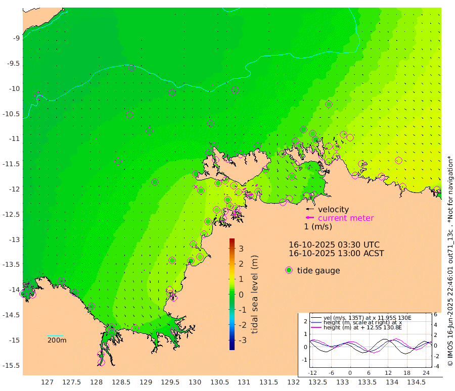 72cm/s 79T +4cm/s rms + 6cm/s 51T. Darwin_C1 52m 25cm/s 87T +4cm/s rms + 7cm/s -161T. Darwin_CW1 22m 16cm/s 74T +4cm/s rms + 8cm/s 61T. Darwin_CW2 34m 33cm/s 47T +3cm/s rms + 9cm/s 98T. Darwin_CW3 22m 15cm/s 90T +5cm/s rms + 7cm/s 88T. Darwin_C3 56m 43cm/s 64T +2cm/s rms + 9cm/s -126T. Darwin_CTbW 22m 3cm/s 149T +9cm/s rms + 2cm/s -110T. NWSLYN 196m 12cm/s 93T +1cm/s rms + 1cm/s -47T. DARBGF 30m 3cm/s -98T +7cm/s rms + 2cm/s -137T. ITFTIS 464m 2cm/s -107T +9cm/s rms + 1cm/s 74T. ITFMHB 146m 10cm/s 156T +4cm/s rms + 1cm/s -134T. ITFJBG 61m 6cm/s 162T +6cm/s rms + 4cm/s 121T. ITFFTB 108m 8cm/s 115T +4cm/s rms + 3cm/s 80T. NRSDAR 19m -35cm Carronade Island -39cm Guy Point -39cm Napier Broome Bay -16cm Lesueur Island 4cm Reveley Island -32cm Rocky Island 9cm Cape Domett 10cm Lacrosse Island 3cm Adolphus Island -25cm Pender Point -25cm Wyndham -10cm The Boxers 10cm Unnamed Shoal -35cm Loxton Shoal 32cm Pelican Island -17cm Calder Shoal -15cm Evans Shoal 12cm Quoin Island 27cm Port Keats 39cm Jones Point 95cm Catfish Island 33cm Cape Scott Offshore 9cm Cape Ford 44cm Anson Bay -7cm Goodrich Bank 43cm Peron Island North 35cm Point Jenny 31cm Native Point 42cm Fish Reef 37cm Tapa Bay 22cm Point Fawcett (Offshore) 34cm Burge Point 29cm Munkunuwa 23cm Beagle A 48cm Parsons Bank 31cm Fenton Patches -9cm Lynedoch Bank 45cm Hancox Shoal Area 40cm Nightcliff 44cm Darwin 39cm Charles Point Patches 40cm Glyde Point 43cm Chambers Bay 46cm Point Stuart 44cm Cape Hotham 31cm Christine Reef 46cm West Alligator Head 38cm East Field Island 45cm Two Hills Bay 2cm Newby Shoal 28cm Camp Point 35cm Medina Inlet South 11cm South Barlow Point 2cm St. Asaph Bay -2cm Cape Van Dieman 1cm Snake Bay 5cm Cache Point -37cm Echo Shoal 10cm Point Jahleel (Off) 34cm Cape Don 27cm Port Essington 28cm Smith Point - West 30cm NW Peacock Island 21cm North Of Jones Shoal 10cm Peacock Island 53cm Point David 36cm D'urville Point 31cm Money Shoal 56cm Copeland Island 74cm Cape Cockburn 50cm One Tree Point 69cm Hogmany Shoal 48cm New Year Island - West 52cm Grant Island 69cm Aurari Bay 82cm Cuthbert Point 70cm North Goulburn Island 80cm Paxie Shoal 90cm Entrance Island 109cm Yabooma Island