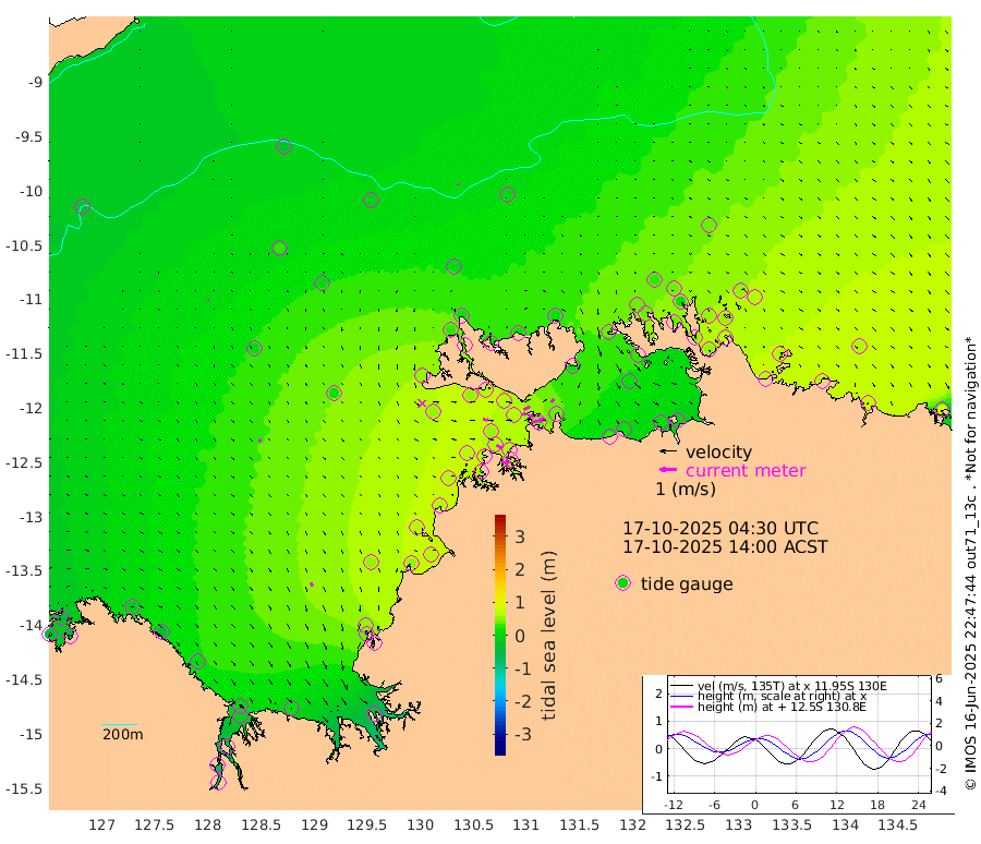 67cm/s 78T +4cm/s rms + 6cm/s 51T. Darwin_C1 52m 27cm/s 85T +4cm/s rms + 7cm/s -161T. Darwin_CW1 22m 23cm/s 75T +4cm/s rms + 8cm/s 61T. Darwin_CW2 34m 25cm/s 51T +3cm/s rms + 9cm/s 98T. Darwin_CW3 22m 22cm/s 88T +5cm/s rms + 7cm/s 88T. Darwin_C3 56m 40cm/s 64T +2cm/s rms + 9cm/s -126T. Darwin_CTbW 22m 5cm/s 149T +9cm/s rms + 2cm/s -110T. NWSLYN 196m 29cm/s 93T +1cm/s rms + 1cm/s -47T. DARBGF 30m 0cm/s -83T +7cm/s rms + 2cm/s -137T. ITFTIS 464m 5cm/s 171T +9cm/s rms + 1cm/s 74T. ITFMHB 146m 21cm/s 151T +4cm/s rms + 1cm/s -134T. ITFJBG 61m 17cm/s 139T +6cm/s rms + 4cm/s 121T. ITFFTB 108m 27cm/s 121T +4cm/s rms + 3cm/s 80T. NRSDAR 19m -39cm Carronade Island -44cm Guy Point -45cm Napier Broome Bay -17cm Lesueur Island 1cm Reveley Island -40cm Rocky Island -3cm Cape Domett 3cm Lacrosse Island -27cm Adolphus Island -68cm Pender Point -77cm Wyndham 6cm The Boxers 26cm Unnamed Shoal -23cm Loxton Shoal 22cm Pelican Island 3cm Calder Shoal -1cm Evans Shoal -28cm Quoin Island 32cm Port Keats 44cm Jones Point 53cm Catfish Island 53cm Cape Scott Offshore 47cm Cape Ford 67cm Anson Bay 8cm Goodrich Bank 63cm Peron Island North 61cm Point Jenny 57cm Native Point 67cm Fish Reef 62cm Tapa Bay 50cm Point Fawcett (Offshore) 56cm Burge Point 56cm Munkunuwa 50cm Beagle A 64cm Parsons Bank 54cm Fenton Patches 1cm Lynedoch Bank 59cm Hancox Shoal Area 61cm Nightcliff 59cm Darwin 60cm Charles Point Patches 39cm Glyde Point 26cm Chambers Bay 21cm Point Stuart 37cm Cape Hotham 15cm Christine Reef 18cm West Alligator Head 2cm East Field Island 30cm Two Hills Bay 21cm Newby Shoal 16cm Camp Point 59cm Medina Inlet South 34cm South Barlow Point 27cm St. Asaph Bay 15cm Cape Van Dieman 16cm Snake Bay 20cm Cache Point -25cm Echo Shoal 21cm Point Jahleel (Off) 37cm Cape Don 34cm Port Essington 36cm Smith Point - West 35cm NW Peacock Island 30cm North Of Jones Shoal 13cm Peacock Island 50cm Point David 41cm D'urville Point 34cm Money Shoal 52cm Copeland Island 69cm Cape Cockburn 48cm One Tree Point 61cm Hogmany Shoal 45cm New Year Island - West 47cm Grant Island 60cm Aurari Bay 65cm Cuthbert Point 61cm North Goulburn Island 63cm Paxie Shoal 68cm Entrance Island 81cm Yabooma Island