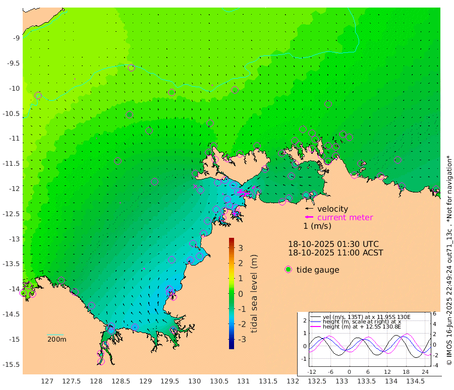 79cm/s -101T +4cm/s rms + 6cm/s 51T. Darwin_C1 52m 68cm/s -90T +4cm/s rms + 7cm/s -161T. Darwin_CW1 22m 55cm/s -107T +4cm/s rms + 8cm/s 61T. Darwin_CW2 34m 45cm/s -138T +3cm/s rms + 9cm/s 98T. Darwin_CW3 22m 81cm/s -91T +5cm/s rms + 7cm/s 88T. Darwin_C3 56m 41cm/s -115T +2cm/s rms + 9cm/s -126T. Darwin_CTbW 22m 9cm/s 156T +9cm/s rms + 2cm/s -110T. NWSLYN 196m 14cm/s -108T +1cm/s rms + 1cm/s -47T. DARBGF 30m 4cm/s 87T +7cm/s rms + 2cm/s -137T. ITFTIS 464m 5cm/s 78T +9cm/s rms + 1cm/s 74T. ITFMHB 146m 12cm/s 19T +4cm/s rms + 1cm/s -134T. ITFJBG 61m 6cm/s 79T +6cm/s rms + 4cm/s 121T. ITFFTB 108m 10cm/s -80T +4cm/s rms + 3cm/s 80T. NRSDAR 19m 34cm Carronade Island 41cm Guy Point 40cm Napier Broome Bay -39cm Lesueur Island -110cm Reveley Island -72cm Rocky Island -168cm Cape Domett -155cm Lacrosse Island -172cm Adolphus Island -123cm Pender Point -113cm Wyndham -6cm The Boxers -11cm Unnamed Shoal 47cm Loxton Shoal -179cm Pelican Island 7cm Calder Shoal 34cm Evans Shoal -192cm Quoin Island -178cm Port Keats -180cm Jones Point -160cm Catfish Island -117cm Cape Scott Offshore -169cm Cape Ford -130cm Anson Bay 19cm Goodrich Bank -121cm Peron Island North -125cm Point Jenny -123cm Native Point -142cm Fish Reef -138cm Tapa Bay -50cm Point Fawcett (Offshore) -164cm Burge Point -130cm Munkunuwa -119cm Beagle A -147cm Parsons Bank -164cm Fenton Patches 28cm Lynedoch Bank -144cm Hancox Shoal Area -156cm Nightcliff -166cm Darwin -145cm Charles Point Patches -129cm Glyde Point -110cm Chambers Bay -111cm Point Stuart -113cm Cape Hotham -101cm Christine Reef -121cm West Alligator Head -120cm East Field Island -91cm Two Hills Bay -72cm Newby Shoal -91cm Camp Point -136cm Medina Inlet South -35cm South Barlow Point -15cm St. Asaph Bay 17cm Cape Van Dieman 17cm Snake Bay 11cm Cache Point 55cm Echo Shoal -3cm Point Jahleel (Off) -38cm Cape Don -3cm Port Essington -4cm Smith Point - West 1cm NW Peacock Island 15cm North Of Jones Shoal 4cm Peacock Island -6cm Point David -3cm D'urville Point 7cm Money Shoal -9cm Copeland Island -18cm Cape Cockburn -6cm One Tree Point -10cm Hogmany Shoal -9cm New Year Island - West -10cm Grant Island -27cm Aurari Bay -38cm Cuthbert Point -23cm North Goulburn Island -35cm Paxie Shoal -58cm Entrance Island -71cm Yabooma Island