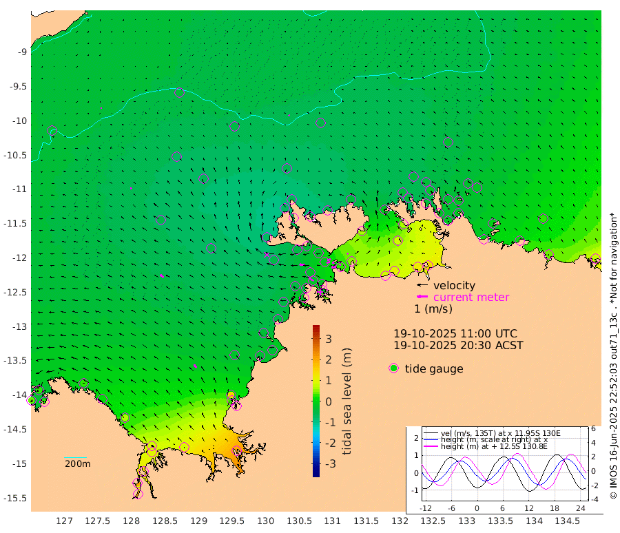 45cm/s -104T +4cm/s rms + 6cm/s 51T. Darwin_C1 52m 16cm/s -81T +4cm/s rms + 7cm/s -161T. Darwin_CW1 22m 29cm/s -109T +4cm/s rms + 8cm/s 61T. Darwin_CW2 34m 9cm/s -51T +3cm/s rms + 9cm/s 98T. Darwin_CW3 22m 19cm/s -98T +5cm/s rms + 7cm/s 88T. Darwin_C3 56m 35cm/s -116T +2cm/s rms + 9cm/s -126T. Darwin_CTbW 22m 9cm/s -26T +9cm/s rms + 2cm/s -110T. NWSLYN 196m 54cm/s -86T +1cm/s rms + 1cm/s -47T. DARBGF 30m 8cm/s -109T +7cm/s rms + 2cm/s -137T. ITFTIS 464m 13cm/s -39T +9cm/s rms + 1cm/s 74T. ITFMHB 146m 36cm/s -36T +4cm/s rms + 1cm/s -134T. ITFJBG 61m 38cm/s -53T +6cm/s rms + 4cm/s 121T. ITFFTB 108m 56cm/s -56T +4cm/s rms + 3cm/s 80T. NRSDAR 19m 32cm Carronade Island 39cm Guy Point 25cm Napier Broome Bay 31cm Lesueur Island 57cm Reveley Island 13cm Rocky Island 99cm Cape Domett 86cm Lacrosse Island 153cm Adolphus Island 192cm Pender Point 220cm Wyndham -52cm The Boxers -74cm Unnamed Shoal -42cm Loxton Shoal 81cm Pelican Island -56cm Calder Shoal -47cm Evans Shoal 198cm Quoin Island 32cm Port Keats 29cm Jones Point 155cm Catfish Island -30cm Cape Scott Offshore -42cm Cape Ford -42cm Anson Bay -57cm Goodrich Bank -36cm Peron Island North -52cm Point Jenny -54cm Native Point -45cm Fish Reef -46cm Tapa Bay -74cm Point Fawcett (Offshore) -24cm Burge Point -53cm Munkunuwa -54cm Beagle A -25cm Parsons Bank -28cm Fenton Patches -46cm Lynedoch Bank -12cm Hancox Shoal Area -23cm Nightcliff -15cm Darwin -32cm Charles Point Patches 27cm Glyde Point 82cm Chambers Bay 102cm Point Stuart 47cm Cape Hotham 80cm Christine Reef 119cm West Alligator Head 149cm East Field Island 59cm Two Hills Bay -47cm Newby Shoal 57cm Camp Point -44cm Medina Inlet South -73cm South Barlow Point -71cm St. Asaph Bay -64cm Cape Van Dieman -64cm Snake Bay -55cm Cache Point -31cm Echo Shoal -41cm Point Jahleel (Off) -17cm Cape Don -41cm Port Essington -43cm Smith Point - West -38cm NW Peacock Island -44cm North Of Jones Shoal -15cm Peacock Island -24cm Point David -41cm D'urville Point -31cm Money Shoal -19cm Copeland Island -20cm Cape Cockburn -24cm One Tree Point -11cm Hogmany Shoal -23cm New Year Island - West -19cm Grant Island -7cm Aurari Bay 12cm Cuthbert Point -8cm North Goulburn Island 23cm Paxie Shoal 43cm Entrance Island 77cm Yabooma Island