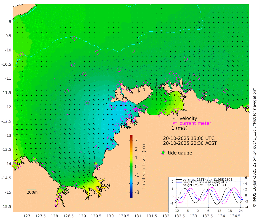111cm/s -103T +4cm/s rms + 6cm/s 51T. Darwin_C1 52m 83cm/s -88T +4cm/s rms + 7cm/s -161T. Darwin_CW1 22m 88cm/s -108T +4cm/s rms + 8cm/s 61T. Darwin_CW2 34m 38cm/s -122T +3cm/s rms + 9cm/s 98T. Darwin_CW3 22m 107cm/s -92T +5cm/s rms + 7cm/s 88T. Darwin_C3 56m 67cm/s -115T +2cm/s rms + 9cm/s -126T. Darwin_CTbW 22m 4cm/s -37T +9cm/s rms + 2cm/s -110T. NWSLYN 196m 64cm/s -90T +1cm/s rms + 1cm/s -47T. DARBGF 30m 3cm/s -128T +7cm/s rms + 2cm/s -137T. ITFTIS 464m 9cm/s -15T +9cm/s rms + 1cm/s 74T. ITFMHB 146m 38cm/s -25T +4cm/s rms + 1cm/s -134T. ITFJBG 61m 30cm/s -42T +6cm/s rms + 4cm/s 121T. ITFFTB 108m 59cm/s -61T +4cm/s rms + 3cm/s 80T. NRSDAR 19m 110cm Carronade Island 116cm Guy Point 108cm Napier Broome Bay 36cm Lesueur Island -21cm Reveley Island -7cm Rocky Island -30cm Cape Domett -27cm Lacrosse Island 20cm Adolphus Island 100cm Pender Point 145cm Wyndham -30cm The Boxers -64cm Unnamed Shoal 17cm Loxton Shoal -69cm Pelican Island -28cm Calder Shoal -4cm Evans Shoal 30cm Quoin Island -106cm Port Keats -116cm Jones Point 46cm Catfish Island -123cm Cape Scott Offshore -158cm Cape Ford -151cm Anson Bay -28cm Goodrich Bank -130cm Peron Island North -140cm Point Jenny -141cm Native Point -146cm Fish Reef -153cm Tapa Bay -101cm Point Fawcett (Offshore) -145cm Burge Point -158cm Munkunuwa -123cm Beagle A -146cm Parsons Bank -141cm Fenton Patches -11cm Lynedoch Bank -132cm Hancox Shoal Area -145cm Nightcliff -151cm Darwin -151cm Charles Point Patches -71cm Glyde Point 3cm Chambers Bay 24cm Point Stuart -36cm Cape Hotham 13cm Christine Reef 35cm West Alligator Head 72cm East Field Island -5cm Two Hills Bay -65cm Newby Shoal -8cm Camp Point -151cm Medina Inlet South -91cm South Barlow Point -69cm St. Asaph Bay -37cm Cape Van Dieman -41cm Snake Bay -30cm Cache Point 39cm Echo Shoal -31cm Point Jahleel (Off) -40cm Cape Don -38cm Port Essington -39cm Smith Point - West -31cm NW Peacock Island -26cm North Of Jones Shoal -10cm Peacock Island -36cm Point David -39cm D'urville Point -24cm Money Shoal -34cm Copeland Island -39cm Cape Cockburn -33cm One Tree Point -29cm Hogmany Shoal -30cm New Year Island - West -31cm Grant Island -36cm Aurari Bay -27cm Cuthbert Point -34cm North Goulburn Island -25cm Paxie Shoal -20cm Entrance Island -6cm Yabooma Island