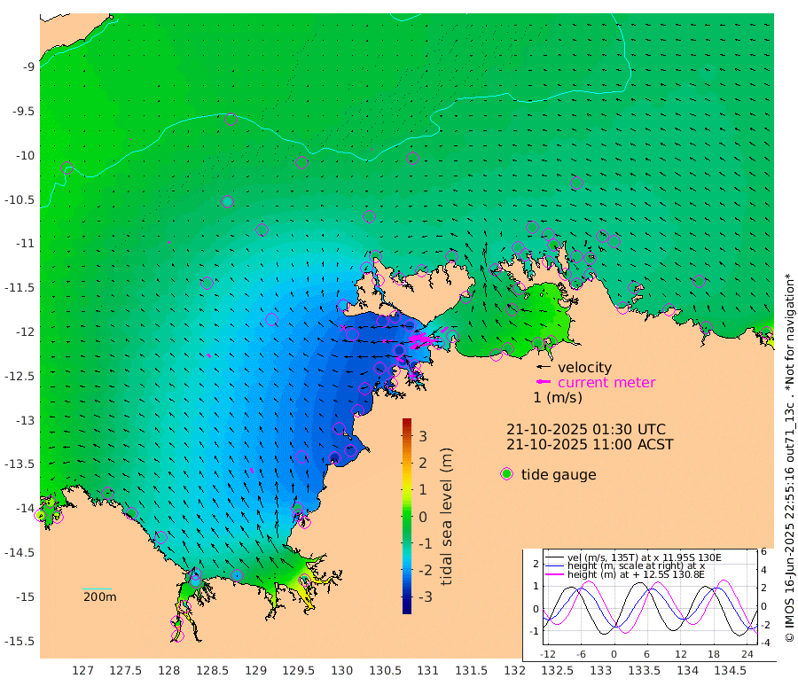 167cm/s -102T +4cm/s rms + 6cm/s 51T. Darwin_C1 52m 134cm/s -90T +4cm/s rms + 7cm/s -161T. Darwin_CW1 22m 118cm/s -107T +4cm/s rms + 8cm/s 61T. Darwin_CW2 34m 61cm/s -129T +3cm/s rms + 9cm/s 98T. Darwin_CW3 22m 157cm/s -91T +5cm/s rms + 7cm/s 88T. Darwin_C3 56m 99cm/s -115T +2cm/s rms + 9cm/s -126T. Darwin_CTbW 22m 4cm/s -96T +9cm/s rms + 2cm/s -110T. NWSLYN 196m 78cm/s -92T +1cm/s rms + 1cm/s -47T. DARBGF 30m 5cm/s -158T +7cm/s rms + 2cm/s -137T. ITFTIS 464m 10cm/s -16T +9cm/s rms + 1cm/s 74T. ITFMHB 146m 40cm/s -21T +4cm/s rms + 1cm/s -134T. ITFJBG 61m 30cm/s -45T +6cm/s rms + 4cm/s 121T. ITFFTB 108m 66cm/s -62T +4cm/s rms + 3cm/s 80T. NRSDAR 19m 52cm Carronade Island 59cm Guy Point 57cm Napier Broome Bay -56cm Lesueur Island -118cm Reveley Island -47cm Rocky Island -149cm Cape Domett -151cm Lacrosse Island -108cm Adolphus Island 12cm Pender Point 48cm Wyndham -90cm The Boxers -114cm Unnamed Shoal -25cm Loxton Shoal -180cm Pelican Island -89cm Calder Shoal -45cm Evans Shoal -109cm Quoin Island -232cm Port Keats -218cm Jones Point -76cm Catfish Island -224cm Cape Scott Offshore -273cm Cape Ford -255cm Anson Bay -69cm Goodrich Bank -237cm Peron Island North -238cm Point Jenny -237cm Native Point -255cm Fish Reef -255cm Tapa Bay -180cm Point Fawcett (Offshore) -264cm Burge Point -248cm Munkunuwa -228cm Beagle A -250cm Parsons Bank -259cm Fenton Patches -49cm Lynedoch Bank -236cm Hancox Shoal Area -266cm Nightcliff -270cm Darwin -264cm Charles Point Patches -163cm Glyde Point -74cm Chambers Bay -51cm Point Stuart -124cm Cape Hotham -67cm Christine Reef -44cm West Alligator Head -6cm East Field Island -81cm Two Hills Bay -173cm Newby Shoal -81cm Camp Point -257cm Medina Inlet South -160cm South Barlow Point -131cm St. Asaph Bay -78cm Cape Van Dieman -86cm Snake Bay -79cm Cache Point -2cm Echo Shoal -83cm Point Jahleel (Off) -102cm Cape Don -86cm Port Essington -89cm Smith Point - West -80cm NW Peacock Island -78cm North Of Jones Shoal -28cm Peacock Island -76cm Point David -87cm D'urville Point -69cm Money Shoal -75cm Copeland Island -105cm Cape Cockburn -82cm One Tree Point -80cm Hogmany Shoal -79cm New Year Island - West -78cm Grant Island -82cm Aurari Bay -73cm Cuthbert Point -83cm North Goulburn Island -67cm Paxie Shoal -64cm Entrance Island -55cm Yabooma Island