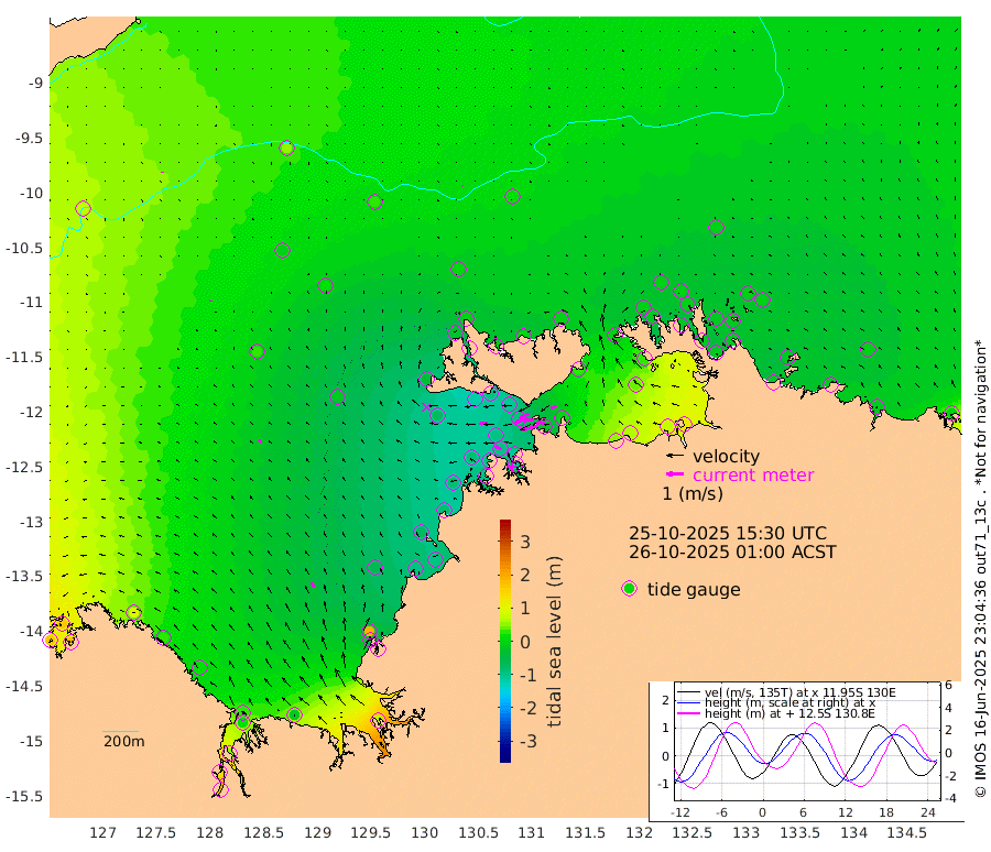 99cm/s -103T +4cm/s rms + 6cm/s 51T. Darwin_C1 52m 51cm/s -88T +4cm/s rms + 7cm/s -161T. Darwin_CW1 22m 74cm/s -110T +4cm/s rms + 8cm/s 61T. Darwin_CW2 34m 32cm/s -114T +3cm/s rms + 9cm/s 98T. Darwin_CW3 22m 73cm/s -93T +5cm/s rms + 7cm/s 88T. Darwin_C3 56m 59cm/s -116T +2cm/s rms + 9cm/s -126T. Darwin_CTbW 22m 2cm/s 119T +9cm/s rms + 2cm/s -110T. NWSLYN 196m 47cm/s -91T +1cm/s rms + 1cm/s -47T. DARBGF 30m 3cm/s 1T +7cm/s rms + 2cm/s -137T. ITFTIS 464m 9cm/s 10T +9cm/s rms + 1cm/s 74T. ITFMHB 146m 34cm/s -19T +4cm/s rms + 1cm/s -134T. ITFJBG 61m 23cm/s -31T +6cm/s rms + 4cm/s 121T. ITFFTB 108m 41cm/s -63T +4cm/s rms + 3cm/s 80T. NRSDAR 19m 162cm Carronade Island 165cm Guy Point 169cm Napier Broome Bay 100cm Lesueur Island 22cm Reveley Island 27cm Rocky Island 21cm Cape Domett 30cm Lacrosse Island 47cm Adolphus Island 142cm Pender Point 187cm Wyndham 25cm The Boxers -2cm Unnamed Shoal 49cm Loxton Shoal -15cm Pelican Island 16cm Calder Shoal 26cm Evans Shoal 70cm Quoin Island -58cm Port Keats -54cm Jones Point 183cm Catfish Island -63cm Cape Scott Offshore -91cm Cape Ford -90cm Anson Bay 2cm Goodrich Bank -75cm Peron Island North -85cm Point Jenny -86cm Native Point -85cm Fish Reef -97cm Tapa Bay -42cm Point Fawcett (Offshore) -99cm Burge Point -114cm Munkunuwa -71cm Beagle A -110cm Parsons Bank -93cm Fenton Patches 15cm Lynedoch Bank -94cm Hancox Shoal Area -105cm Nightcliff -102cm Darwin -95cm Charles Point Patches -27cm Glyde Point 45cm Chambers Bay 66cm Point Stuart 3cm Cape Hotham 39cm Christine Reef 79cm West Alligator Head 114cm East Field Island 34cm Two Hills Bay -17cm Newby Shoal 27cm Camp Point -98cm Medina Inlet South -55cm South Barlow Point -29cm St. Asaph Bay -5cm Cape Van Dieman -11cm Snake Bay 5cm Cache Point 74cm Echo Shoal 0cm Point Jahleel (Off) -8cm Cape Don -11cm Port Essington -15cm Smith Point - West -11cm NW Peacock Island -1cm North Of Jones Shoal -2cm Peacock Island -19cm Point David -19cm D'urville Point -5cm Money Shoal -21cm Copeland Island -21cm Cape Cockburn -15cm One Tree Point -5cm Hogmany Shoal -9cm New Year Island - West -15cm Grant Island -19cm Aurari Bay -14cm Cuthbert Point -17cm North Goulburn Island -7cm Paxie Shoal -13cm Entrance Island -9cm Yabooma Island