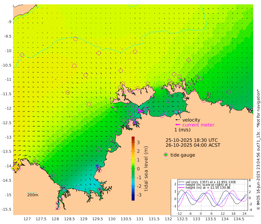 88cm/s -100T +4cm/s rms + 6cm/s 51T. Darwin_C1 52m 74cm/s -92T +4cm/s rms + 7cm/s -161T. Darwin_CW1 22m 31cm/s -106T +4cm/s rms + 8cm/s 61T. Darwin_CW2 34m 54cm/s -136T +3cm/s rms + 9cm/s 98T. Darwin_CW3 22m 67cm/s -90T +5cm/s rms + 7cm/s 88T. Darwin_C3 56m 45cm/s -116T +2cm/s rms + 9cm/s -126T. Darwin_CTbW 22m 10cm/s 135T +9cm/s rms + 2cm/s -110T. NWSLYN 196m 24cm/s 102T +1cm/s rms + 1cm/s -47T. DARBGF 30m 13cm/s 45T +7cm/s rms + 2cm/s -137T. ITFTIS 464m 13cm/s 75T +9cm/s rms + 1cm/s 74T. ITFMHB 146m 18cm/s 110T +4cm/s rms + 1cm/s -134T. ITFJBG 61m 28cm/s 102T +6cm/s rms + 4cm/s 121T. ITFFTB 108m 29cm/s 138T +4cm/s rms + 3cm/s 80T. NRSDAR 19m 79cm Carronade Island 76cm Guy Point 83cm Napier Broome Bay 40cm Lesueur Island -51cm Reveley Island -35cm Rocky Island -111cm Cape Domett -88cm Lacrosse Island -155cm Adolphus Island -145cm Pender Point -149cm Wyndham 84cm The Boxers 92cm Unnamed Shoal 101cm Loxton Shoal -128cm Pelican Island 96cm Calder Shoal 87cm Evans Shoal -225cm Quoin Island -78cm Port Keats -78cm Jones Point -237cm Catfish Island -23cm Cape Scott Offshore 82cm Cape Ford -29cm Anson Bay 89cm Goodrich Bank -10cm Peron Island North 5cm Point Jenny 10cm Native Point -6cm Fish Reef -10cm Tapa Bay 59cm Point Fawcett (Offshore) -16cm Burge Point -10cm Munkunuwa 30cm Beagle A -35cm Parsons Bank -14cm Fenton Patches 82cm Lynedoch Bank -44cm Hancox Shoal Area -40cm Nightcliff -45cm Darwin -18cm Charles Point Patches -53cm Glyde Point -90cm Chambers Bay -98cm Point Stuart -58cm Cape Hotham -77cm Christine Reef -116cm West Alligator Head -125cm East Field Island -63cm Two Hills Bay 69cm Newby Shoal -49cm Camp Point -13cm Medina Inlet South 64cm South Barlow Point 78cm St. Asaph Bay 91cm Cape Van Dieman 88cm Snake Bay 84cm Cache Point 100cm Echo Shoal 61cm Point Jahleel (Off) 16cm Cape Don 52cm Port Essington 50cm Smith Point - West 51cm NW Peacock Island 61cm North Of Jones Shoal 20cm Peacock Island 29cm Point David 47cm D'urville Point 52cm Money Shoal 22cm Copeland Island 28cm Cape Cockburn 29cm One Tree Point 28cm Hogmany Shoal 33cm New Year Island - West 27cm Grant Island -3cm Aurari Bay -22cm Cuthbert Point 5cm North Goulburn Island -30cm Paxie Shoal -50cm Entrance Island -87cm Yabooma Island
