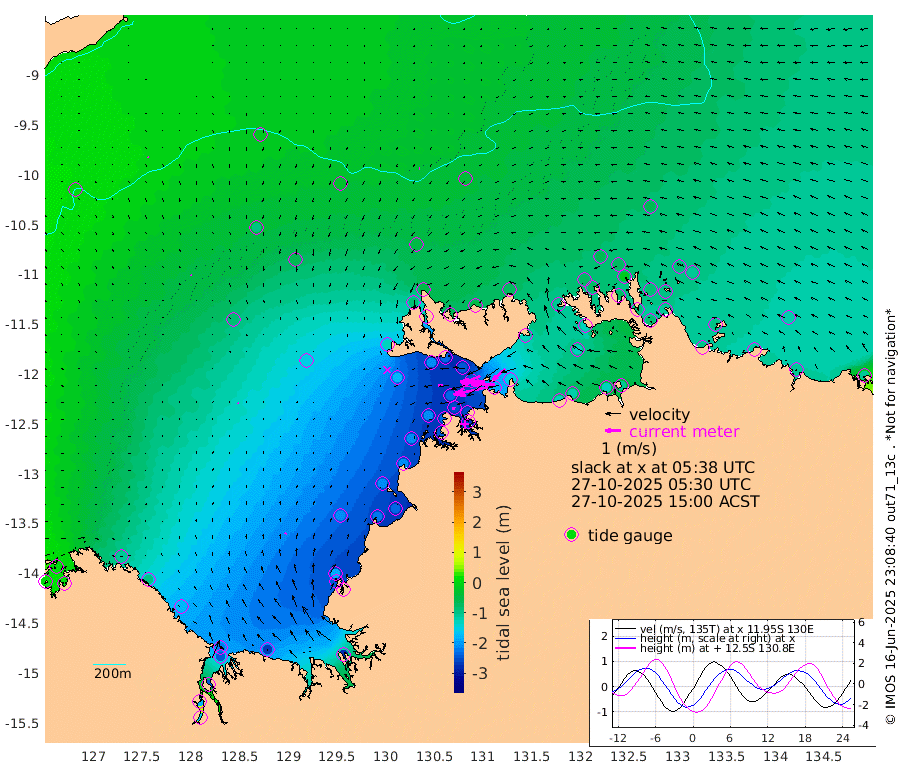 225cm/s -102T +4cm/s rms + 6cm/s 51T. Darwin_C1 52m 156cm/s -90T +4cm/s rms + 7cm/s -161T. Darwin_CW1 22m 110cm/s -107T +4cm/s rms + 8cm/s 61T. Darwin_CW2 34m 104cm/s -131T +3cm/s rms + 9cm/s 98T. Darwin_CW3 22m 158cm/s -90T +5cm/s rms + 7cm/s 88T. Darwin_C3 56m 131cm/s -115T +2cm/s rms + 9cm/s -126T. Darwin_CTbW 22m 5cm/s -99T +9cm/s rms + 2cm/s -110T. NWSLYN 196m 33cm/s -101T +1cm/s rms + 1cm/s -47T. DARBGF 30m 7cm/s 153T +7cm/s rms + 2cm/s -137T. ITFTIS 464m 4cm/s 130T +9cm/s rms + 1cm/s 74T. ITFMHB 146m 10cm/s 26T +4cm/s rms + 1cm/s -134T. ITFJBG 61m 5cm/s 98T +6cm/s rms + 4cm/s 121T. ITFFTB 108m 19cm/s -89T +4cm/s rms + 3cm/s 80T. NRSDAR 19m 7cm Carronade Island 2cm Guy Point 1cm Napier Broome Bay -101cm Lesueur Island -178cm Reveley Island -92cm Rocky Island -244cm Cape Domett -222cm Lacrosse Island -242cm Adolphus Island -176cm Pender Point -155cm Wyndham -79cm The Boxers -99cm Unnamed Shoal -22cm Loxton Shoal -262cm Pelican Island -62cm Calder Shoal -28cm Evans Shoal -275cm Quoin Island -271cm Port Keats -246cm Jones Point -181cm Catfish Island -211cm Cape Scott Offshore -218cm Cape Ford -234cm Anson Bay -49cm Goodrich Bank -207cm Peron Island North -206cm Point Jenny -208cm Native Point -208cm Fish Reef -235cm Tapa Bay -127cm Point Fawcett (Offshore) -239cm Burge Point -212cm Munkunuwa -179cm Beagle A -239cm Parsons Bank -230cm Fenton Patches -38cm Lynedoch Bank -240cm Hancox Shoal Area -250cm Nightcliff -266cm Darwin -250cm Charles Point Patches -189cm Glyde Point -134cm Chambers Bay -124cm Point Stuart -155cm Cape Hotham -134cm Christine Reef -128cm West Alligator Head -108cm East Field Island -127cm Two Hills Bay -148cm Newby Shoal -133cm Camp Point -228cm Medina Inlet South -118cm South Barlow Point -88cm St. Asaph Bay -52cm Cape Van Dieman -64cm Snake Bay -54cm Cache Point 10cm Echo Shoal -68cm Point Jahleel (Off) -103cm Cape Don -73cm Port Essington -75cm Smith Point - West -72cm NW Peacock Island -57cm North Of Jones Shoal -21cm Peacock Island -87cm Point David -77cm D'urville Point -64cm Money Shoal -85cm Copeland Island -107cm Cape Cockburn -84cm One Tree Point -109cm Hogmany Shoal -89cm New Year Island - West -94cm Grant Island -96cm Aurari Bay -108cm Cuthbert Point -99cm North Goulburn Island -115cm Paxie Shoal -112cm Entrance Island -109cm Yabooma Island