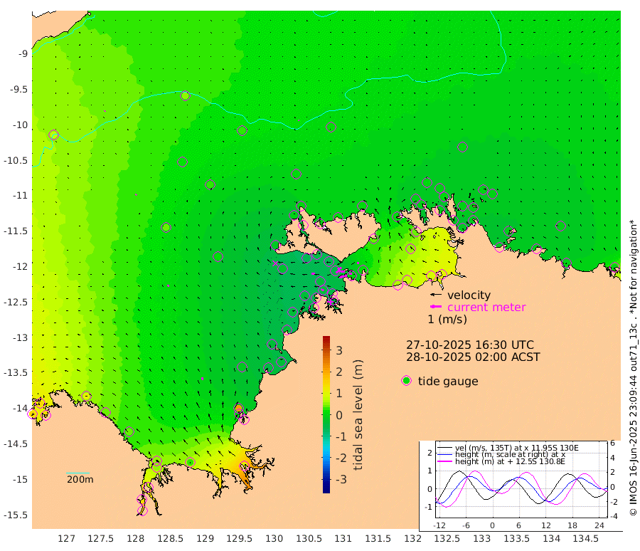 72cm/s -102T +4cm/s rms + 6cm/s 51T. Darwin_C1 52m 25cm/s -88T +4cm/s rms + 7cm/s -161T. Darwin_CW1 22m 44cm/s -112T +4cm/s rms + 8cm/s 61T. Darwin_CW2 34m 21cm/s -108T +3cm/s rms + 9cm/s 98T. Darwin_CW3 22m 37cm/s -94T +5cm/s rms + 7cm/s 88T. Darwin_C3 56m 38cm/s -118T +2cm/s rms + 9cm/s -126T. Darwin_CTbW 22m 3cm/s 118T +9cm/s rms + 2cm/s -110T. NWSLYN 196m 30cm/s -90T +1cm/s rms + 1cm/s -47T. DARBGF 30m 5cm/s 11T +7cm/s rms + 2cm/s -137T. ITFTIS 464m 8cm/s 16T +9cm/s rms + 1cm/s 74T. ITFMHB 146m 25cm/s -18T +4cm/s rms + 1cm/s -134T. ITFJBG 61m 17cm/s -25T +6cm/s rms + 4cm/s 121T. ITFFTB 108m 26cm/s -64T +4cm/s rms + 3cm/s 80T. NRSDAR 19m 142cm Carronade Island 143cm Guy Point 152cm Napier Broome Bay 101cm Lesueur Island 37cm Reveley Island 44cm Rocky Island 51cm Cape Domett 55cm Lacrosse Island 72cm Adolphus Island 143cm Pender Point 179cm Wyndham 40cm The Boxers 14cm Unnamed Shoal 49cm Loxton Shoal 23cm Pelican Island 27cm Calder Shoal 28cm Evans Shoal 95cm Quoin Island -10cm Port Keats -10cm Jones Point 205cm Catfish Island -20cm Cape Scott Offshore -48cm Cape Ford -38cm Anson Bay 11cm Goodrich Bank -35cm Peron Island North -37cm Point Jenny -38cm Native Point -37cm Fish Reef -46cm Tapa Bay -12cm Point Fawcett (Offshore) -48cm Burge Point -67cm Munkunuwa -27cm Beagle A -64cm Parsons Bank -41cm Fenton Patches 19cm Lynedoch Bank -48cm Hancox Shoal Area -52cm Nightcliff -49cm Darwin -41cm Charles Point Patches 3cm Glyde Point 59cm Chambers Bay 68cm Point Stuart 19cm Cape Hotham 49cm Christine Reef 79cm West Alligator Head 108cm East Field Island 41cm Two Hills Bay 13cm Newby Shoal 41cm Camp Point -48cm Medina Inlet South -27cm South Barlow Point -8cm St. Asaph Bay 5cm Cape Van Dieman -1cm Snake Bay 13cm Cache Point 69cm Echo Shoal 8cm Point Jahleel (Off) 7cm Cape Don 0cm Port Essington -4cm Smith Point - West -3cm NW Peacock Island 6cm North Of Jones Shoal 0cm Peacock Island -15cm Point David -10cm D'urville Point 3cm Money Shoal -16cm Copeland Island -16cm Cape Cockburn -8cm One Tree Point -4cm Hogmany Shoal -3cm New Year Island - West -10cm Grant Island -12cm Aurari Bay -7cm Cuthbert Point -11cm North Goulburn Island 0cm Paxie Shoal -8cm Entrance Island -7cm Yabooma Island