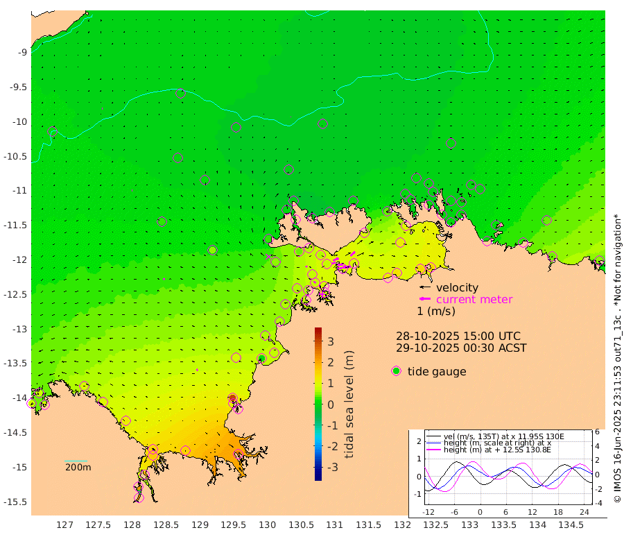 91cm/s 78T +4cm/s rms + 6cm/s 51T. Darwin_C1 52m 64cm/s 92T +4cm/s rms + 7cm/s -161T. Darwin_CW1 22m 37cm/s 69T +4cm/s rms + 8cm/s 61T. Darwin_CW2 34m 55cm/s 48T +3cm/s rms + 9cm/s 98T. Darwin_CW3 22m 58cm/s 91T +5cm/s rms + 7cm/s 88T. Darwin_C3 56m 56cm/s 66T +2cm/s rms + 9cm/s -126T. Darwin_CTbW 22m 2cm/s -3T +9cm/s rms + 2cm/s -110T. NWSLYN 196m 14cm/s -69T +1cm/s rms + 1cm/s -47T. DARBGF 30m 3cm/s -94T +7cm/s rms + 2cm/s -137T. ITFTIS 464m 4cm/s -102T +9cm/s rms + 1cm/s 74T. ITFMHB 146m 14cm/s -43T +4cm/s rms + 1cm/s -134T. ITFJBG 61m 14cm/s -58T +6cm/s rms + 4cm/s 121T. ITFFTB 108m 26cm/s -48T +4cm/s rms + 3cm/s 80T. NRSDAR 19m 82cm Carronade Island 86cm Guy Point 90cm Napier Broome Bay 96cm Lesueur Island 113cm Reveley Island 95cm Rocky Island 167cm Cape Domett 155cm Lacrosse Island 197cm Adolphus Island 212cm Pender Point 232cm Wyndham 32cm The Boxers 9cm Unnamed Shoal 8cm Loxton Shoal 157cm Pelican Island 13cm Calder Shoal -1cm Evans Shoal 242cm Quoin Island 128cm Port Keats 108cm Jones Point 299cm Catfish Island 80cm Cape Scott Offshore 3cm Cape Ford 78cm Anson Bay -7cm Goodrich Bank 59cm Peron Island North 61cm Point Jenny 59cm Native Point 61cm Fish Reef 67cm Tapa Bay 23cm Point Fawcett (Offshore) 70cm Burge Point 42cm Munkunuwa 51cm Beagle A 61cm Parsons Bank 74cm Fenton Patches -3cm Lynedoch Bank 76cm Hancox Shoal Area 85cm Nightcliff 81cm Darwin 71cm Charles Point Patches 91cm Glyde Point 126cm Chambers Bay 125cm Point Stuart 89cm Cape Hotham 120cm Christine Reef 141cm West Alligator Head 156cm East Field Island 97cm Two Hills Bay 55cm Newby Shoal 93cm Camp Point 61cm Medina Inlet South 6cm South Barlow Point 4cm St. Asaph Bay -11cm Cape Van Dieman -11cm Snake Bay -1cm Cache Point 12cm Echo Shoal 8cm Point Jahleel (Off) 38cm Cape Don 4cm Port Essington 6cm Smith Point - West 2cm NW Peacock Island 2cm North Of Jones Shoal 0cm Peacock Island 0cm Point David 2cm D'urville Point 1cm Money Shoal 2cm Copeland Island 8cm Cape Cockburn 6cm One Tree Point 10cm Hogmany Shoal 10cm New Year Island - West 8cm Grant Island 18cm Aurari Bay 33cm Cuthbert Point 18cm North Goulburn Island 39cm Paxie Shoal 42cm Entrance Island 51cm Yabooma Island