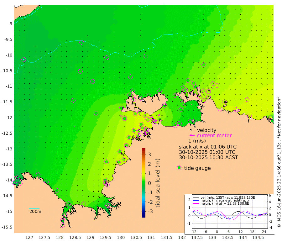 87cm/s 78T +4cm/s rms + 6cm/s 51T. Darwin_C1 52m 36cm/s 88T +4cm/s rms + 7cm/s -161T. Darwin_CW1 22m 16cm/s 77T +4cm/s rms + 8cm/s 61T. Darwin_CW2 34m 44cm/s 47T +3cm/s rms + 9cm/s 98T. Darwin_CW3 22m 24cm/s 91T +5cm/s rms + 7cm/s 88T. Darwin_C3 56m 47cm/s 63T +2cm/s rms + 9cm/s -126T. Darwin_CTbW 22m 3cm/s 128T +9cm/s rms + 2cm/s -110T. NWSLYN 196m 5cm/s 92T +1cm/s rms + 1cm/s -47T. DARBGF 30m 3cm/s -69T +7cm/s rms + 2cm/s -137T. ITFTIS 464m 5cm/s -34T +9cm/s rms + 1cm/s 74T. ITFMHB 146m 3cm/s -142T +4cm/s rms + 1cm/s -134T. ITFJBG 61m 5cm/s -86T +6cm/s rms + 4cm/s 121T. ITFFTB 108m 5cm/s 74T +4cm/s rms + 3cm/s 80T. NRSDAR 19m -50cm Carronade Island -47cm Guy Point -52cm Napier Broome Bay -18cm Lesueur Island 12cm Reveley Island -30cm Rocky Island 17cm Cape Domett 9cm Lacrosse Island 14cm Adolphus Island -11cm Pender Point -22cm Wyndham -10cm The Boxers 19cm Unnamed Shoal -26cm Loxton Shoal 38cm Pelican Island -16cm Calder Shoal -13cm Evans Shoal 11cm Quoin Island 36cm Port Keats 39cm Jones Point -20cm Catfish Island 28cm Cape Scott Offshore 26cm Cape Ford 39cm Anson Bay 2cm Goodrich Bank 33cm Peron Island North 32cm Point Jenny 32cm Native Point 25cm Fish Reef 43cm Tapa Bay 9cm Point Fawcett (Offshore) 34cm Burge Point 35cm Munkunuwa 15cm Beagle A 54cm Parsons Bank 30cm Fenton Patches -2cm Lynedoch Bank 54cm Hancox Shoal Area 43cm Nightcliff 49cm Darwin 43cm Charles Point Patches 35cm Glyde Point 20cm Chambers Bay 20cm Point Stuart 30cm Cape Hotham 21cm Christine Reef 18cm West Alligator Head 6cm East Field Island 25cm Two Hills Bay -1cm Newby Shoal 22cm Camp Point 34cm Medina Inlet South 15cm South Barlow Point 3cm St. Asaph Bay 5cm Cape Van Dieman 11cm Snake Bay 4cm Cache Point -41cm Echo Shoal 11cm Point Jahleel (Off) 26cm Cape Don 25cm Port Essington 27cm Smith Point - West 32cm NW Peacock Island 14cm North Of Jones Shoal 7cm Peacock Island 58cm Point David 37cm D'urville Point 31cm Money Shoal 59cm Copeland Island 67cm Cape Cockburn 47cm One Tree Point 76cm Hogmany Shoal 51cm New Year Island - West 58cm Grant Island 64cm Aurari Bay 76cm Cuthbert Point 66cm North Goulburn Island 77cm Paxie Shoal 84cm Entrance Island 91cm Yabooma Island