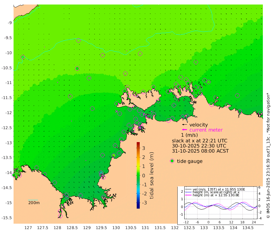 37cm/s -102T +4cm/s rms + 6cm/s 51T. Darwin_C1 52m 8cm/s -85T +4cm/s rms + 7cm/s -161T. Darwin_CW1 22m 19cm/s -111T +4cm/s rms + 8cm/s 61T. Darwin_CW2 34m 23cm/s -135T +3cm/s rms + 9cm/s 98T. Darwin_CW3 22m 16cm/s -91T +5cm/s rms + 7cm/s 88T. Darwin_C3 56m 26cm/s -115T +2cm/s rms + 9cm/s -126T. Darwin_CTbW 22m 7cm/s 136T +9cm/s rms + 2cm/s -110T. NWSLYN 196m 6cm/s -100T +1cm/s rms + 1cm/s -47T. DARBGF 30m 6cm/s 21T +7cm/s rms + 2cm/s -137T. ITFTIS 464m 9cm/s 19T +9cm/s rms + 1cm/s 74T. ITFMHB 146m 8cm/s 6T +4cm/s rms + 1cm/s -134T. ITFJBG 61m 7cm/s 10T +6cm/s rms + 4cm/s 121T. ITFFTB 108m 5cm/s -79T +4cm/s rms + 3cm/s 80T. NRSDAR 19m 11cm Carronade Island 14cm Guy Point 18cm Napier Broome Bay -5cm Lesueur Island -33cm Reveley Island -16cm Rocky Island -48cm Cape Domett -53cm Lacrosse Island -55cm Adolphus Island -33cm Pender Point -39cm Wyndham 23cm The Boxers 19cm Unnamed Shoal 43cm Loxton Shoal -53cm Pelican Island 24cm Calder Shoal 37cm Evans Shoal -69cm Quoin Island -47cm Port Keats -40cm Jones Point -101cm Catfish Island -33cm Cape Scott Offshore 35cm Cape Ford -37cm Anson Bay 35cm Goodrich Bank -23cm Peron Island North -28cm Point Jenny -26cm Native Point -29cm Fish Reef -30cm Tapa Bay 5cm Point Fawcett (Offshore) -34cm Burge Point -25cm Munkunuwa -26cm Beagle A -29cm Parsons Bank -42cm Fenton Patches 36cm Lynedoch Bank -36cm Hancox Shoal Area -54cm Nightcliff -31cm Darwin -17cm Charles Point Patches -32cm Glyde Point -50cm Chambers Bay -44cm Point Stuart -35cm Cape Hotham -44cm Christine Reef -52cm West Alligator Head -55cm East Field Island -31cm Two Hills Bay -3cm Newby Shoal -25cm Camp Point -24cm Medina Inlet South 14cm South Barlow Point 18cm St. Asaph Bay 35cm Cape Van Dieman 34cm Snake Bay 30cm Cache Point 34cm Echo Shoal 20cm Point Jahleel (Off) 5cm Cape Don 28cm Port Essington 21cm Smith Point - West 25cm NW Peacock Island 26cm North Of Jones Shoal 9cm Peacock Island 21cm Point David 23cm D'urville Point 30cm Money Shoal 18cm Copeland Island 20cm Cape Cockburn 21cm One Tree Point 30cm Hogmany Shoal 18cm New Year Island - West 21cm Grant Island 2cm Aurari Bay 6cm Cuthbert Point 10cm North Goulburn Island 4cm Paxie Shoal -12cm Entrance Island -25cm Yabooma Island