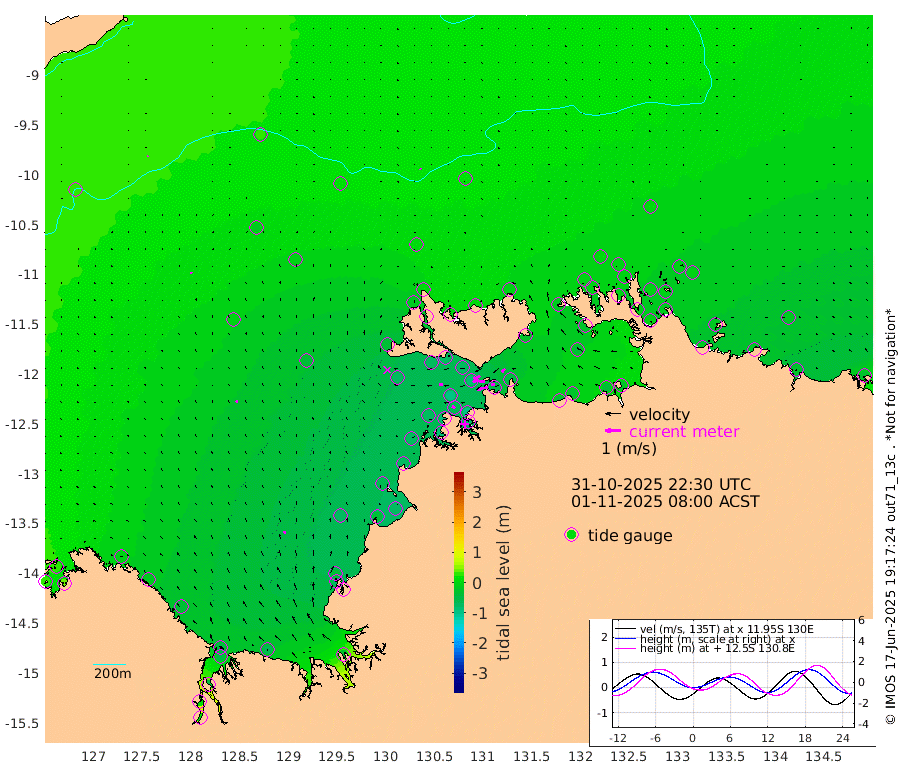 69cm/s -102T +4cm/s rms + 6cm/s 51T. Darwin_C1 52m 26cm/s -88T +4cm/s rms + 7cm/s -161T. Darwin_CW1 22m 37cm/s -109T +4cm/s rms + 8cm/s 61T. Darwin_CW2 34m 29cm/s -130T +3cm/s rms + 9cm/s 98T. Darwin_CW3 22m 36cm/s -92T +5cm/s rms + 7cm/s 88T. Darwin_C3 56m 46cm/s -116T +2cm/s rms + 9cm/s -126T. Darwin_CTbW 22m 4cm/s 138T +9cm/s rms + 2cm/s -110T. NWSLYN 196m 25cm/s -91T +1cm/s rms + 1cm/s -47T. DARBGF 30m 4cm/s 15T +7cm/s rms + 2cm/s -137T. ITFTIS 464m 10cm/s 6T +9cm/s rms + 1cm/s 74T. ITFMHB 146m 19cm/s -15T +4cm/s rms + 1cm/s -134T. ITFJBG 61m 15cm/s -27T +6cm/s rms + 4cm/s 121T. ITFFTB 108m 23cm/s -62T +4cm/s rms + 3cm/s 80T. NRSDAR 19m 25cm Carronade Island 29cm Guy Point 34cm Napier Broome Bay -10cm Lesueur Island -43cm Reveley Island -12cm Rocky Island -48cm Cape Domett -56cm Lacrosse Island -38cm Adolphus Island 12cm Pender Point 18cm Wyndham -2cm The Boxers -18cm Unnamed Shoal 30cm Loxton Shoal -63cm Pelican Island -3cm Calder Shoal 18cm Evans Shoal -31cm Quoin Island -75cm Port Keats -69cm Jones Point -39cm Catfish Island -68cm Cape Scott Offshore -44cm Cape Ford -79cm Anson Bay 7cm Goodrich Bank -66cm Peron Island North -77cm Point Jenny -76cm Native Point -76cm Fish Reef -81cm Tapa Bay -37cm Point Fawcett (Offshore) -83cm Burge Point -75cm Munkunuwa -74cm Beagle A -78cm Parsons Bank -90cm Fenton Patches 15cm Lynedoch Bank -80cm Hancox Shoal Area -99cm Nightcliff -77cm Darwin -65cm Charles Point Patches -54cm Glyde Point -43cm Chambers Bay -32cm Point Stuart -47cm Cape Hotham -41cm Christine Reef -35cm West Alligator Head -25cm East Field Island -34cm Two Hills Bay -42cm Newby Shoal -28cm Camp Point -71cm Medina Inlet South -27cm South Barlow Point -18cm St. Asaph Bay 4cm Cape Van Dieman 2cm Snake Bay 1cm Cache Point 29cm Echo Shoal -6cm Point Jahleel (Off) -18cm Cape Don 0cm Port Essington -9cm Smith Point - West -5cm NW Peacock Island 2cm North Of Jones Shoal 0cm Peacock Island -9cm Point David -9cm D'urville Point 5cm Money Shoal -11cm Copeland Island -15cm Cape Cockburn -5cm One Tree Point -6cm Hogmany Shoal -10cm New Year Island - West -9cm Grant Island -22cm Aurari Bay -17cm Cuthbert Point -16cm North Goulburn Island -13cm Paxie Shoal -30cm Entrance Island -33cm Yabooma Island