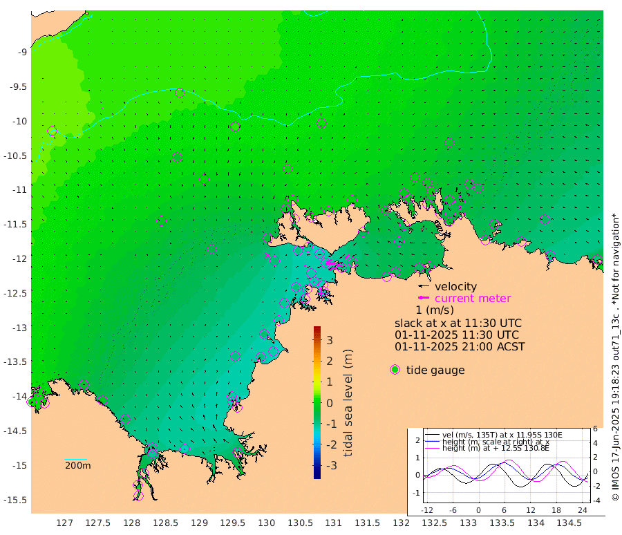 84cm/s -103T +4cm/s rms + 6cm/s 51T. Darwin_C1 52m 50cm/s -89T +4cm/s rms + 7cm/s -161T. Darwin_CW1 22m 48cm/s -107T +4cm/s rms + 8cm/s 61T. Darwin_CW2 34m 47cm/s -133T +3cm/s rms + 9cm/s 98T. Darwin_CW3 22m 64cm/s -91T +5cm/s rms + 7cm/s 88T. Darwin_C3 56m 51cm/s -115T +2cm/s rms + 9cm/s -126T. Darwin_CTbW 22m 3cm/s -65T +9cm/s rms + 2cm/s -110T. NWSLYN 196m 16cm/s -97T +1cm/s rms + 1cm/s -47T. DARBGF 30m 5cm/s 154T +7cm/s rms + 2cm/s -137T. ITFTIS 464m 4cm/s 155T +9cm/s rms + 1cm/s 74T. ITFMHB 146m 7cm/s 0T +4cm/s rms + 1cm/s -134T. ITFJBG 61m 2cm/s 49T +6cm/s rms + 4cm/s 121T. ITFFTB 108m 11cm/s -76T +4cm/s rms + 3cm/s 80T. NRSDAR 19m 22cm Carronade Island 21cm Guy Point 17cm Napier Broome Bay -24cm Lesueur Island -67cm Reveley Island -16cm Rocky Island -111cm Cape Domett -97cm Lacrosse Island -104cm Adolphus Island -78cm Pender Point -68cm Wyndham -13cm The Boxers -25cm Unnamed Shoal 33cm Loxton Shoal -129cm Pelican Island 3cm Calder Shoal 23cm Evans Shoal -116cm Quoin Island -128cm Port Keats -125cm Jones Point -113cm Catfish Island -97cm Cape Scott Offshore -90cm Cape Ford -116cm Anson Bay 6cm Goodrich Bank -87cm Peron Island North -105cm Point Jenny -104cm Native Point -99cm Fish Reef -116cm Tapa Bay -45cm Point Fawcett (Offshore) -118cm Burge Point -96cm Munkunuwa -83cm Beagle A -113cm Parsons Bank -114cm Fenton Patches 13cm Lynedoch Bank -119cm Hancox Shoal Area -125cm Nightcliff -124cm Darwin -116cm Charles Point Patches -96cm Glyde Point -88cm Chambers Bay -73cm Point Stuart -78cm Cape Hotham -79cm Christine Reef -75cm West Alligator Head -69cm East Field Island -64cm Two Hills Bay -49cm Newby Shoal -73cm Camp Point -103cm Medina Inlet South -32cm South Barlow Point -17cm St. Asaph Bay 3cm Cape Van Dieman 2cm Snake Bay 0cm Cache Point 45cm Echo Shoal -9cm Point Jahleel (Off) -42cm Cape Don -18cm Port Essington -18cm Smith Point - West -17cm NW Peacock Island -4cm North Of Jones Shoal -3cm Peacock Island -35cm Point David -21cm D'urville Point -20cm Money Shoal -37cm Copeland Island -43cm Cape Cockburn -31cm One Tree Point -45cm Hogmany Shoal -34cm New Year Island - West -37cm Grant Island -50cm Aurari Bay -66cm Cuthbert Point -52cm North Goulburn Island -77cm Paxie Shoal -85cm Entrance Island -100cm Yabooma Island