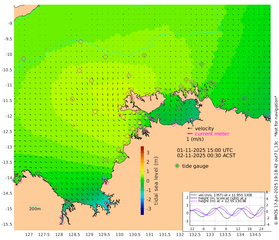 66cm/s 78T +4cm/s rms + 6cm/s 51T. Darwin_C1 52m 26cm/s 94T +4cm/s rms + 7cm/s -161T. Darwin_CW1 22m 27cm/s 72T +4cm/s rms + 8cm/s 61T. Darwin_CW2 34m 12cm/s 76T +3cm/s rms + 9cm/s 98T. Darwin_CW3 22m 21cm/s 88T +5cm/s rms + 7cm/s 88T. Darwin_C3 56m 47cm/s 64T +2cm/s rms + 9cm/s -126T. Darwin_CTbW 22m 3cm/s 170T +9cm/s rms + 2cm/s -110T. NWSLYN 196m 41cm/s 93T +1cm/s rms + 1cm/s -47T. DARBGF 30m 5cm/s 98T +7cm/s rms + 2cm/s -137T. ITFTIS 464m 14cm/s 159T +9cm/s rms + 1cm/s 74T. ITFMHB 146m 26cm/s 148T +4cm/s rms + 1cm/s -134T. ITFJBG 61m 29cm/s 133T +6cm/s rms + 4cm/s 121T. ITFFTB 108m 42cm/s 123T +4cm/s rms + 3cm/s 80T. NRSDAR 19m 13cm Carronade Island 7cm Guy Point 16cm Napier Broome Bay 9cm Lesueur Island -1cm Reveley Island 39cm Rocky Island -32cm Cape Domett -23cm Lacrosse Island -69cm Adolphus Island -107cm Pender Point -125cm Wyndham 56cm The Boxers 66cm Unnamed Shoal 47cm Loxton Shoal -37cm Pelican Island 64cm Calder Shoal 49cm Evans Shoal -117cm Quoin Island 16cm Port Keats 1cm Jones Point -123cm Catfish Island 40cm Cape Scott Offshore 77cm Cape Ford 44cm Anson Bay 53cm Goodrich Bank 55cm Peron Island North 68cm Point Jenny 69cm Native Point 63cm Fish Reef 58cm Tapa Bay 72cm Point Fawcett (Offshore) 60cm Burge Point 69cm Munkunuwa 77cm Beagle A 53cm Parsons Bank 62cm Fenton Patches 43cm Lynedoch Bank 36cm Hancox Shoal Area 52cm Nightcliff 38cm Darwin 42cm Charles Point Patches 5cm Glyde Point -41cm Chambers Bay -49cm Point Stuart -8cm Cape Hotham -26cm Christine Reef -57cm West Alligator Head -81cm East Field Island -17cm Two Hills Bay 84cm Newby Shoal -25cm Camp Point 59cm Medina Inlet South 74cm South Barlow Point 68cm St. Asaph Bay 58cm Cape Van Dieman 59cm Snake Bay 54cm Cache Point 35cm Echo Shoal 46cm Point Jahleel (Off) 29cm Cape Don 37cm Port Essington 44cm Smith Point - West 39cm NW Peacock Island 40cm North Of Jones Shoal 13cm Peacock Island 20cm Point David 41cm D'urville Point 26cm Money Shoal 16cm Copeland Island 27cm Cape Cockburn 22cm One Tree Point 13cm Hogmany Shoal 22cm New Year Island - West 22cm Grant Island 5cm Aurari Bay -6cm Cuthbert Point 11cm North Goulburn Island -25cm Paxie Shoal -30cm Entrance Island -63cm Yabooma Island