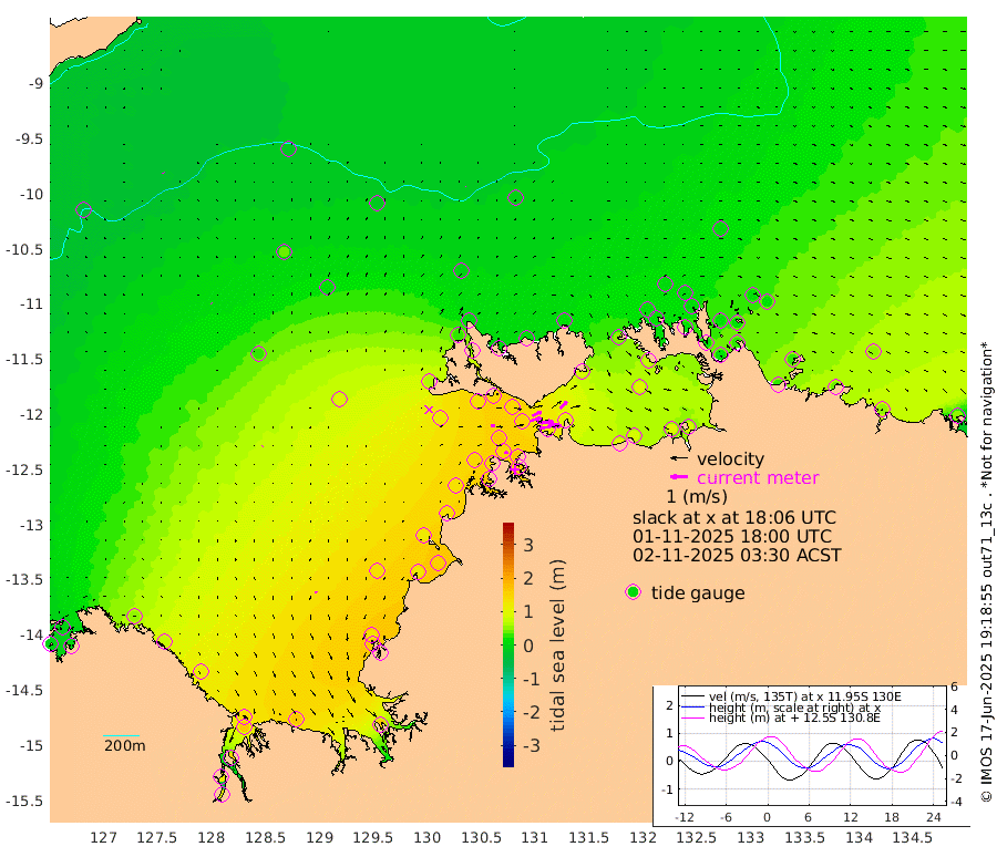 105cm/s 77T +4cm/s rms + 6cm/s 51T. Darwin_C1 52m 73cm/s 91T +4cm/s rms + 7cm/s -161T. Darwin_CW1 22m 65cm/s 73T +4cm/s rms + 8cm/s 61T. Darwin_CW2 34m 59cm/s 47T +3cm/s rms + 9cm/s 98T. Darwin_CW3 22m 93cm/s 89T +5cm/s rms + 7cm/s 88T. Darwin_C3 56m 59cm/s 65T +2cm/s rms + 9cm/s -126T. Darwin_CTbW 22m 3cm/s 3T +9cm/s rms + 2cm/s -110T. NWSLYN 196m 22cm/s 79T +1cm/s rms + 1cm/s -47T. DARBGF 30m 4cm/s -17T +7cm/s rms + 2cm/s -137T. ITFTIS 464m 2cm/s -47T +9cm/s rms + 1cm/s 74T. ITFMHB 146m 10cm/s -172T +4cm/s rms + 1cm/s -134T. ITFJBG 61m 2cm/s -146T +6cm/s rms + 4cm/s 121T. ITFFTB 108m 18cm/s 104T +4cm/s rms + 3cm/s 80T. NRSDAR 19m -7cm Carronade Island -10cm Guy Point 2cm Napier Broome Bay 52cm Lesueur Island 104cm Reveley Island 74cm Rocky Island 158cm Cape Domett 145cm Lacrosse Island 149cm Adolphus Island 116cm Pender Point 104cm Wyndham 32cm The Boxers 44cm Unnamed Shoal -19cm Loxton Shoal 161cm Pelican Island 18cm Calder Shoal -16cm Evans Shoal 168cm Quoin Island 175cm Port Keats 160cm Jones Point 134cm Catfish Island 128cm Cape Scott Offshore 117cm Cape Ford 146cm Anson Bay -1cm Goodrich Bank 119cm Peron Island North 134cm Point Jenny 134cm Native Point 137cm Fish Reef 146cm Tapa Bay 64cm Point Fawcett (Offshore) 163cm Burge Point 134cm Munkunuwa 121cm Beagle A 146cm Parsons Bank 158cm Fenton Patches -7cm Lynedoch Bank 144cm Hancox Shoal Area 167cm Nightcliff 163cm Darwin 145cm Charles Point Patches 121cm Glyde Point 98cm Chambers Bay 87cm Point Stuart 98cm Cape Hotham 94cm Christine Reef 93cm West Alligator Head 86cm East Field Island 78cm Two Hills Bay 92cm Newby Shoal 86cm Camp Point 141cm Medina Inlet South 53cm South Barlow Point 33cm St. Asaph Bay 2cm Cape Van Dieman 6cm Snake Bay 4cm Cache Point -34cm Echo Shoal 14cm Point Jahleel (Off) 47cm Cape Don 13cm Port Essington 13cm Smith Point - West 9cm NW Peacock Island 2cm North Of Jones Shoal 1cm Peacock Island 15cm Point David 12cm D'urville Point 7cm Money Shoal 15cm Copeland Island 24cm Cape Cockburn 16cm One Tree Point 12cm Hogmany Shoal 20cm New Year Island - West 20cm Grant Island 31cm Aurari Bay 36cm Cuthbert Point 30cm North Goulburn Island 46cm Paxie Shoal 51cm Entrance Island 55cm Yabooma Island