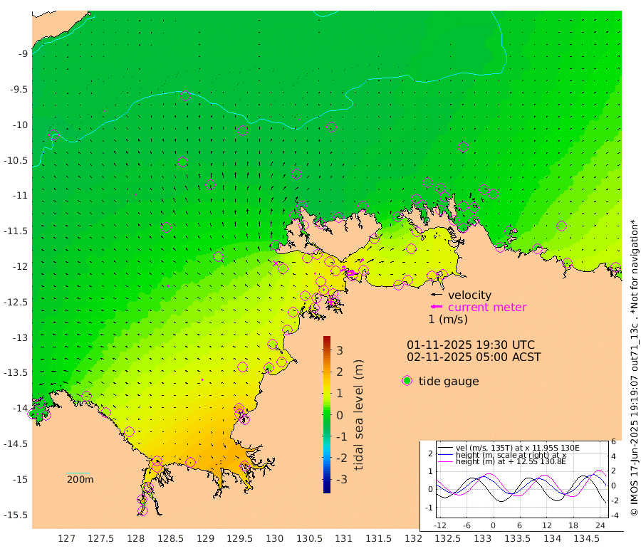 53cm/s 78T +4cm/s rms + 6cm/s 51T. Darwin_C1 52m 51cm/s 94T +4cm/s rms + 7cm/s -161T. Darwin_CW1 22m 43cm/s 71T +4cm/s rms + 8cm/s 61T. Darwin_CW2 34m 44cm/s 42T +3cm/s rms + 9cm/s 98T. Darwin_CW3 22m 73cm/s 90T +5cm/s rms + 7cm/s 88T. Darwin_C3 56m 26cm/s 67T +2cm/s rms + 9cm/s -126T. Darwin_CTbW 22m 5cm/s -5T +9cm/s rms + 2cm/s -110T. NWSLYN 196m 11cm/s -61T +1cm/s rms + 1cm/s -47T. DARBGF 30m 5cm/s -39T +7cm/s rms + 2cm/s -137T. ITFTIS 464m 12cm/s -22T +9cm/s rms + 1cm/s 74T. ITFMHB 146m 14cm/s -55T +4cm/s rms + 1cm/s -134T. ITFJBG 61m 21cm/s -51T +6cm/s rms + 4cm/s 121T. ITFFTB 108m 16cm/s -45T +4cm/s rms + 3cm/s 80T. NRSDAR 19m -2cm Carronade Island -2cm Guy Point 10cm Napier Broome Bay 48cm Lesueur Island 96cm Reveley Island 64cm Rocky Island 169cm Cape Domett 149cm Lacrosse Island 185cm Adolphus Island 190cm Pender Point 192cm Wyndham -1cm The Boxers 0cm Unnamed Shoal -36cm Loxton Shoal 164cm Pelican Island -18cm Calder Shoal -40cm Evans Shoal 236cm Quoin Island 148cm Port Keats 139cm Jones Point 200cm Catfish Island 85cm Cape Scott Offshore 48cm Cape Ford 96cm Anson Bay -33cm Goodrich Bank 67cm Peron Island North 71cm Point Jenny 70cm Native Point 77cm Fish Reef 85cm Tapa Bay 10cm Point Fawcett (Offshore) 104cm Burge Point 73cm Munkunuwa 56cm Beagle A 91cm Parsons Bank 98cm Fenton Patches -29cm Lynedoch Bank 97cm Hancox Shoal Area 109cm Nightcliff 117cm Darwin 97cm Charles Point Patches 101cm Glyde Point 109cm Chambers Bay 107cm Point Stuart 89cm Cape Hotham 99cm Christine Reef 119cm West Alligator Head 130cm East Field Island 79cm Two Hills Bay 36cm Newby Shoal 92cm Camp Point 86cm Medina Inlet South 1cm South Barlow Point -14cm St. Asaph Bay -34cm Cape Van Dieman -30cm Snake Bay -31cm Cache Point -44cm Echo Shoal -17cm Point Jahleel (Off) 22cm Cape Don -15cm Port Essington -20cm Smith Point - West -21cm NW Peacock Island -25cm North Of Jones Shoal -8cm Peacock Island -8cm Point David -21cm D'urville Point -14cm Money Shoal -6cm Copeland Island -6cm Cape Cockburn -6cm One Tree Point -12cm Hogmany Shoal -3cm New Year Island - West -4cm Grant Island 12cm Aurari Bay 23cm Cuthbert Point 9cm North Goulburn Island 44cm Paxie Shoal 47cm Entrance Island 67cm Yabooma Island