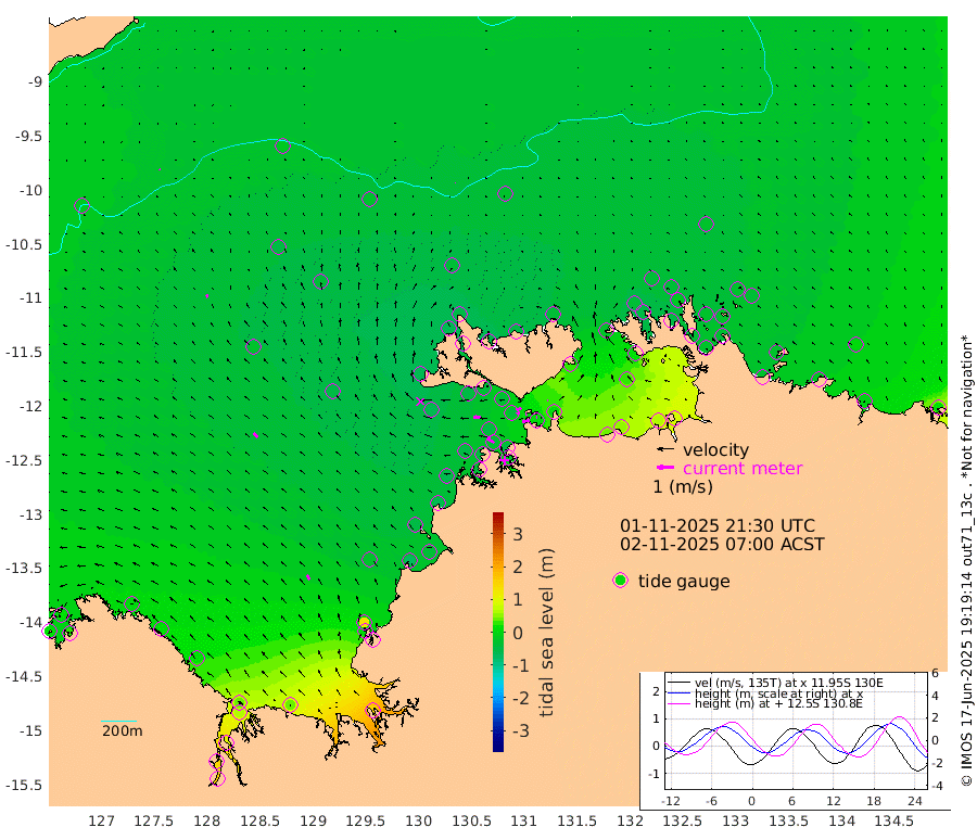 45cm/s -101T +4cm/s rms + 6cm/s 51T. Darwin_C1 52m 5cm/s -85T +4cm/s rms + 7cm/s -161T. Darwin_CW1 22m 18cm/s -107T +4cm/s rms + 8cm/s 61T. Darwin_CW2 34m 4cm/s -85T +3cm/s rms + 9cm/s 98T. Darwin_CW3 22m 6cm/s -105T +5cm/s rms + 7cm/s 88T. Darwin_C3 56m 32cm/s -117T +2cm/s rms + 9cm/s -126T. Darwin_CTbW 22m 3cm/s -8T +9cm/s rms + 2cm/s -110T. NWSLYN 196m 42cm/s -86T +1cm/s rms + 1cm/s -47T. DARBGF 30m 4cm/s -42T +7cm/s rms + 2cm/s -137T. ITFTIS 464m 16cm/s -14T +9cm/s rms + 1cm/s 74T. ITFMHB 146m 31cm/s -29T +4cm/s rms + 1cm/s -134T. ITFJBG 61m 31cm/s -44T +6cm/s rms + 4cm/s 121T. ITFFTB 108m 46cm/s -56T +4cm/s rms + 3cm/s 80T. NRSDAR 19m 17cm Carronade Island 21cm Guy Point 30cm Napier Broome Bay 11cm Lesueur Island 15cm Reveley Island 21cm Rocky Island 60cm Cape Domett 42cm Lacrosse Island 93cm Adolphus Island 151cm Pender Point 168cm Wyndham -32cm The Boxers -48cm Unnamed Shoal -20cm Loxton Shoal 42cm Pelican Island -42cm Calder Shoal -33cm Evans Shoal 146cm Quoin Island 6cm Port Keats 6cm Jones Point 130cm Catfish Island -33cm Cape Scott Offshore -75cm Cape Ford -39cm Anson Bay -42cm Goodrich Bank -48cm Peron Island North -60cm Point Jenny -60cm Native Point -54cm Fish Reef -54cm Tapa Bay -62cm Point Fawcett (Offshore) -44cm Burge Point -56cm Munkunuwa -66cm Beagle A -45cm Parsons Bank -52cm Fenton Patches -28cm Lynedoch Bank -37cm Hancox Shoal Area -46cm Nightcliff -27cm Darwin -34cm Charles Point Patches 1cm Glyde Point 38cm Chambers Bay 50cm Point Stuart 8cm Cape Hotham 30cm Christine Reef 60cm West Alligator Head 84cm East Field Island 20cm Two Hills Bay -51cm Newby Shoal 29cm Camp Point -45cm Medina Inlet South -59cm South Barlow Point -57cm St. Asaph Bay -48cm Cape Van Dieman -47cm Snake Bay -46cm Cache Point -17cm Echo Shoal -40cm Point Jahleel (Off) -23cm Cape Don -36cm Port Essington -46cm Smith Point - West -42cm NW Peacock Island -37cm North Of Jones Shoal -13cm Peacock Island -34cm Point David -46cm D'urville Point -28cm Money Shoal -33cm Copeland Island -42cm Cape Cockburn -29cm One Tree Point -37cm Hogmany Shoal -31cm New Year Island - West -32cm Grant Island -25cm Aurari Bay -15cm Cuthbert Point -26cm North Goulburn Island 6cm Paxie Shoal -2cm Entrance Island 17cm Yabooma Island