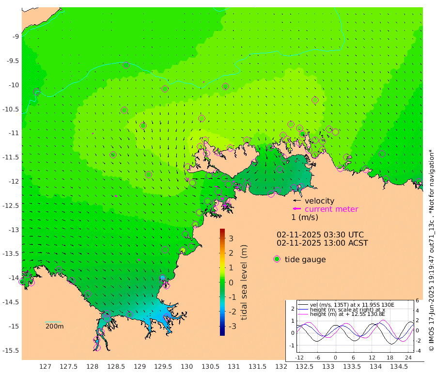 30cm/s 78T +4cm/s rms + 6cm/s 51T. Darwin_C1 52m 3cm/s -86T +4cm/s rms + 7cm/s -161T. Darwin_CW1 22m 8cm/s 77T +4cm/s rms + 8cm/s 61T. Darwin_CW2 34m 9cm/s -167T +3cm/s rms + 9cm/s 98T. Darwin_CW3 22m 7cm/s -82T +5cm/s rms + 7cm/s 88T. Darwin_C3 56m 27cm/s 62T +2cm/s rms + 9cm/s -126T. Darwin_CTbW 22m 10cm/s 154T +9cm/s rms + 2cm/s -110T. NWSLYN 196m 39cm/s 97T +1cm/s rms + 1cm/s -47T. DARBGF 30m 3cm/s 98T +7cm/s rms + 2cm/s -137T. ITFTIS 464m 13cm/s 158T +9cm/s rms + 1cm/s 74T. ITFMHB 146m 28cm/s 143T +4cm/s rms + 1cm/s -134T. ITFJBG 61m 30cm/s 132T +6cm/s rms + 4cm/s 121T. ITFFTB 108m 42cm/s 125T +4cm/s rms + 3cm/s 80T. NRSDAR 19m -26cm Carronade Island -25cm Guy Point -32cm Napier Broome Bay -39cm Lesueur Island -48cm Reveley Island -49cm Rocky Island -92cm Cape Domett -84cm Lacrosse Island -129cm Adolphus Island -167cm Pender Point -188cm Wyndham 24cm The Boxers 33cm Unnamed Shoal 19cm Loxton Shoal -70cm Pelican Island 30cm Calder Shoal 33cm Evans Shoal -184cm Quoin Island -39cm Port Keats -33cm Jones Point -156cm Catfish Island 9cm Cape Scott Offshore 63cm Cape Ford 17cm Anson Bay 42cm Goodrich Bank 22cm Peron Island North 40cm Point Jenny 39cm Native Point 26cm Fish Reef 31cm Tapa Bay 50cm Point Fawcett (Offshore) 14cm Burge Point 31cm Munkunuwa 35cm Beagle A 21cm Parsons Bank 15cm Fenton Patches 29cm Lynedoch Bank 14cm Hancox Shoal Area 10cm Nightcliff 0cm Darwin 16cm Charles Point Patches -23cm Glyde Point -54cm Chambers Bay -70cm Point Stuart -32cm Cape Hotham -47cm Christine Reef -84cm West Alligator Head -109cm East Field Island -38cm Two Hills Bay 23cm Newby Shoal -43cm Camp Point 20cm Medina Inlet South 48cm South Barlow Point 48cm St. Asaph Bay 48cm Cape Van Dieman 43cm Snake Bay 45cm Cache Point 11cm Echo Shoal 35cm Point Jahleel (Off) 20cm Cape Don 41cm Port Essington 46cm Smith Point - West 45cm NW Peacock Island 39cm North Of Jones Shoal 14cm Peacock Island 42cm Point David 49cm D'urville Point 38cm Money Shoal 41cm Copeland Island 48cm Cape Cockburn 37cm One Tree Point 51cm Hogmany Shoal 35cm New Year Island - West 39cm Grant Island 28cm Aurari Bay 29cm Cuthbert Point 36cm North Goulburn Island 14cm Paxie Shoal 14cm Entrance Island -1cm Yabooma Island