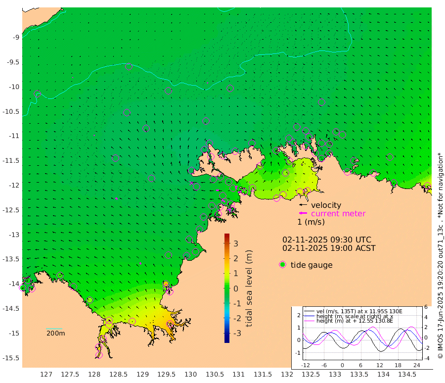 44cm/s -104T +4cm/s rms + 6cm/s 51T. Darwin_C1 52m 10cm/s -81T +4cm/s rms + 7cm/s -161T. Darwin_CW1 22m 14cm/s -104T +4cm/s rms + 8cm/s 61T. Darwin_CW2 34m 7cm/s -77T +3cm/s rms + 9cm/s 98T. Darwin_CW3 22m 7cm/s -103T +5cm/s rms + 7cm/s 88T. Darwin_C3 56m 31cm/s -116T +2cm/s rms + 9cm/s -126T. Darwin_CTbW 22m 9cm/s -26T +9cm/s rms + 2cm/s -110T. NWSLYN 196m 39cm/s -85T +1cm/s rms + 1cm/s -47T. DARBGF 30m 6cm/s -112T +7cm/s rms + 2cm/s -137T. ITFTIS 464m 11cm/s -35T +9cm/s rms + 1cm/s 74T. ITFMHB 146m 27cm/s -36T +4cm/s rms + 1cm/s -134T. ITFJBG 61m 29cm/s -52T +6cm/s rms + 4cm/s 121T. ITFFTB 108m 45cm/s -57T +4cm/s rms + 3cm/s 80T. NRSDAR 19m 6cm Carronade Island 10cm Guy Point -4cm Napier Broome Bay 28cm Lesueur Island 47cm Reveley Island -3cm Rocky Island 82cm Cape Domett 79cm Lacrosse Island 128cm Adolphus Island 149cm Pender Point 173cm Wyndham -46cm The Boxers -55cm Unnamed Shoal -42cm Loxton Shoal 81cm Pelican Island -50cm Calder Shoal -46cm Evans Shoal 183cm Quoin Island 29cm Port Keats 34cm Jones Point 175cm Catfish Island -11cm Cape Scott Offshore -61cm Cape Ford -18cm Anson Bay -51cm Goodrich Bank -24cm Peron Island North -43cm Point Jenny -45cm Native Point -33cm Fish Reef -31cm Tapa Bay -58cm Point Fawcett (Offshore) -26cm Burge Point -42cm Munkunuwa -44cm Beagle A -24cm Parsons Bank -21cm Fenton Patches -42cm Lynedoch Bank -6cm Hancox Shoal Area -11cm Nightcliff -5cm Darwin -18cm Charles Point Patches 24cm Glyde Point 69cm Chambers Bay 80cm Point Stuart 39cm Cape Hotham 56cm Christine Reef 94cm West Alligator Head 120cm East Field Island 44cm Two Hills Bay -52cm Newby Shoal 47cm Camp Point -31cm Medina Inlet South -62cm South Barlow Point -58cm St. Asaph Bay -57cm Cape Van Dieman -56cm Snake Bay -51cm Cache Point -25cm Echo Shoal -38cm Point Jahleel (Off) -22cm Cape Don -40cm Port Essington -42cm Smith Point - West -40cm NW Peacock Island -40cm North Of Jones Shoal -14cm Peacock Island -27cm Point David -42cm D'urville Point -34cm Money Shoal -22cm Copeland Island -31cm Cape Cockburn -28cm One Tree Point -22cm Hogmany Shoal -24cm New Year Island - West -26cm Grant Island -7cm Aurari Bay -3cm Cuthbert Point -17cm North Goulburn Island 10cm Paxie Shoal 22cm Entrance Island 53cm Yabooma Island