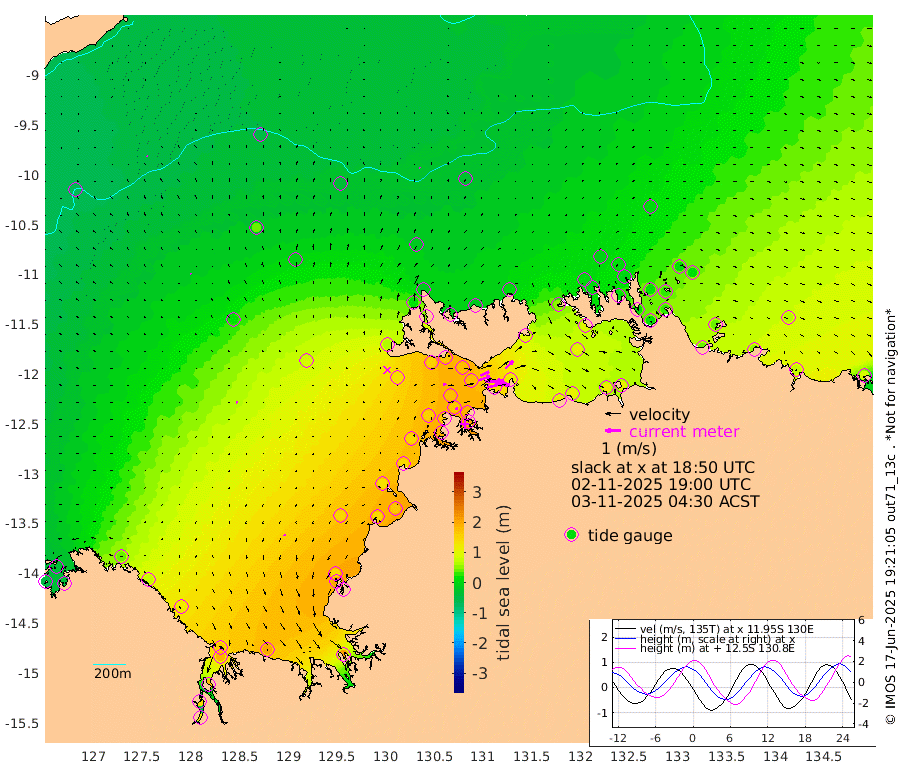 119cm/s 78T +4cm/s rms + 6cm/s 51T. Darwin_C1 52m 91cm/s 92T +4cm/s rms + 7cm/s -161T. Darwin_CW1 22m 77cm/s 73T +4cm/s rms + 8cm/s 61T. Darwin_CW2 34m 70cm/s 45T +3cm/s rms + 9cm/s 98T. Darwin_CW3 22m 117cm/s 89T +5cm/s rms + 7cm/s 88T. Darwin_C3 56m 62cm/s 66T +2cm/s rms + 9cm/s -126T. Darwin_CTbW 22m 6cm/s -7T +9cm/s rms + 2cm/s -110T. NWSLYN 196m 19cm/s 74T +1cm/s rms + 1cm/s -47T. DARBGF 30m 5cm/s -39T +7cm/s rms + 2cm/s -137T. ITFTIS 464m 7cm/s -37T +9cm/s rms + 1cm/s 74T. ITFMHB 146m 11cm/s -149T +4cm/s rms + 1cm/s -134T. ITFJBG 61m 8cm/s -75T +6cm/s rms + 4cm/s 121T. ITFFTB 108m 16cm/s 96T +4cm/s rms + 3cm/s 80T. NRSDAR 19m -44cm Carronade Island -48cm Guy Point -36cm Napier Broome Bay 39cm Lesueur Island 117cm Reveley Island 71cm Rocky Island 186cm Cape Domett 167cm Lacrosse Island 179cm Adolphus Island 138cm Pender Point 121cm Wyndham 14cm The Boxers 37cm Unnamed Shoal -46cm Loxton Shoal 194cm Pelican Island -2cm Calder Shoal -38cm Evans Shoal 210cm Quoin Island 204cm Port Keats 194cm Jones Point 142cm Catfish Island 142cm Cape Scott Offshore 136cm Cape Ford 165cm Anson Bay -17cm Goodrich Bank 134cm Peron Island North 145cm Point Jenny 145cm Native Point 151cm Fish Reef 164cm Tapa Bay 57cm Point Fawcett (Offshore) 185cm Burge Point 154cm Munkunuwa 126cm Beagle A 172cm Parsons Bank 177cm Fenton Patches -23cm Lynedoch Bank 169cm Hancox Shoal Area 189cm Nightcliff 193cm Darwin 168cm Charles Point Patches 142cm Glyde Point 113cm Chambers Bay 105cm Point Stuart 117cm Cape Hotham 105cm Christine Reef 113cm West Alligator Head 105cm East Field Island 91cm Two Hills Bay 82cm Newby Shoal 101cm Camp Point 160cm Medina Inlet South 48cm South Barlow Point 20cm St. Asaph Bay -14cm Cape Van Dieman -7cm Snake Bay -13cm Cache Point -66cm Echo Shoal 4cm Point Jahleel (Off) 46cm Cape Don 6cm Port Essington 5cm Smith Point - West 2cm NW Peacock Island -11cm North Of Jones Shoal -2cm Peacock Island 19cm Point David 7cm D'urville Point 1cm Money Shoal 21cm Copeland Island 28cm Cape Cockburn 17cm One Tree Point 17cm Hogmany Shoal 22cm New Year Island - West 23cm Grant Island 40cm Aurari Bay 49cm Cuthbert Point 37cm North Goulburn Island 63cm Paxie Shoal 73cm Entrance Island 84cm Yabooma Island