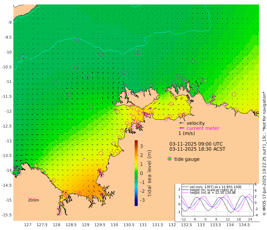 60cm/s 80T +4cm/s rms + 6cm/s 51T. Darwin_C1 52m 60cm/s 92T +4cm/s rms + 7cm/s -161T. Darwin_CW1 22m 46cm/s 70T +4cm/s rms + 8cm/s 61T. Darwin_CW2 34m 50cm/s 41T +3cm/s rms + 9cm/s 98T. Darwin_CW3 22m 81cm/s 90T +5cm/s rms + 7cm/s 88T. Darwin_C3 56m 25cm/s 66T +2cm/s rms + 9cm/s -126T. Darwin_CTbW 22m 9cm/s -15T +9cm/s rms + 2cm/s -110T. NWSLYN 196m 22cm/s -71T +1cm/s rms + 1cm/s -47T. DARBGF 30m 8cm/s -96T +7cm/s rms + 2cm/s -137T. ITFTIS 464m 12cm/s -51T +9cm/s rms + 1cm/s 74T. ITFMHB 146m 21cm/s -57T +4cm/s rms + 1cm/s -134T. ITFJBG 61m 29cm/s -59T +6cm/s rms + 4cm/s 121T. ITFFTB 108m 34cm/s -51T +4cm/s rms + 3cm/s 80T. NRSDAR 19m -15cm Carronade Island -8cm Guy Point -25cm Napier Broome Bay 61cm Lesueur Island 135cm Reveley Island 31cm Rocky Island 209cm Cape Domett 194cm Lacrosse Island 251cm Adolphus Island 230cm Pender Point 241cm Wyndham -24cm The Boxers -28cm Unnamed Shoal -62cm Loxton Shoal 224cm Pelican Island -38cm Calder Shoal -54cm Evans Shoal 316cm Quoin Island 175cm Port Keats 173cm Jones Point 272cm Catfish Island 102cm Cape Scott Offshore 69cm Cape Ford 110cm Anson Bay -46cm Goodrich Bank 85cm Peron Island North 77cm Point Jenny 74cm Native Point 85cm Fish Reef 101cm Tapa Bay 2cm Point Fawcett (Offshore) 113cm Burge Point 76cm Munkunuwa 58cm Beagle A 109cm Parsons Bank 113cm Fenton Patches -46cm Lynedoch Bank 129cm Hancox Shoal Area 132cm Nightcliff 138cm Darwin 115cm Charles Point Patches 129cm Glyde Point 153cm Chambers Bay 153cm Point Stuart 126cm Cape Hotham 138cm Christine Reef 170cm West Alligator Head 186cm East Field Island 113cm Two Hills Bay 16cm Newby Shoal 119cm Camp Point 91cm Medina Inlet South -12cm South Barlow Point -25cm St. Asaph Bay -49cm Cape Van Dieman -46cm Snake Bay -40cm Cache Point -58cm Echo Shoal -18cm Point Jahleel (Off) 26cm Cape Don -15cm Port Essington -15cm Smith Point - West -15cm NW Peacock Island -27cm North Of Jones Shoal -8cm Peacock Island 9cm Point David -13cm D'urville Point -12cm Money Shoal 15cm Copeland Island 16cm Cape Cockburn 5cm One Tree Point 25cm Hogmany Shoal 10cm New Year Island - West 12cm Grant Island 39cm Aurari Bay 56cm Cuthbert Point 31cm North Goulburn Island 72cm Paxie Shoal 95cm Entrance Island 134cm Yabooma Island