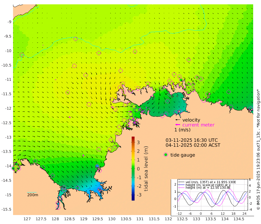 39cm/s 78T +4cm/s rms + 6cm/s 51T. Darwin_C1 52m 11cm/s 85T +4cm/s rms + 7cm/s -161T. Darwin_CW1 22m 24cm/s 73T +4cm/s rms + 8cm/s 61T. Darwin_CW2 34m 17cm/s -157T +3cm/s rms + 9cm/s 98T. Darwin_CW3 22m 7cm/s 76T +5cm/s rms + 7cm/s 88T. Darwin_C3 56m 41cm/s 62T +2cm/s rms + 9cm/s -126T. Darwin_CTbW 22m 5cm/s 149T +9cm/s rms + 2cm/s -110T. NWSLYN 196m 58cm/s 95T +1cm/s rms + 1cm/s -47T. DARBGF 30m 8cm/s 64T +7cm/s rms + 2cm/s -137T. ITFTIS 464m 14cm/s 137T +9cm/s rms + 1cm/s 74T. ITFMHB 146m 40cm/s 143T +4cm/s rms + 1cm/s -134T. ITFJBG 61m 40cm/s 126T +6cm/s rms + 4cm/s 121T. ITFFTB 108m 60cm/s 125T +4cm/s rms + 3cm/s 80T. NRSDAR 19m 0cm Carronade Island -12cm Guy Point 2cm Napier Broome Bay 5cm Lesueur Island -26cm Reveley Island 14cm Rocky Island -74cm Cape Domett -57cm Lacrosse Island -131cm Adolphus Island -185cm Pender Point -211cm Wyndham 78cm The Boxers 105cm Unnamed Shoal 63cm Loxton Shoal -71cm Pelican Island 87cm Calder Shoal 67cm Evans Shoal -200cm Quoin Island -2cm Port Keats -5cm Jones Point -196cm Catfish Island 46cm Cape Scott Offshore 123cm Cape Ford 55cm Anson Bay 80cm Goodrich Bank 69cm Peron Island North 83cm Point Jenny 86cm Native Point 82cm Fish Reef 73cm Tapa Bay 100cm Point Fawcett (Offshore) 71cm Burge Point 83cm Munkunuwa 99cm Beagle A 61cm Parsons Bank 75cm Fenton Patches 66cm Lynedoch Bank 39cm Hancox Shoal Area 55cm Nightcliff 46cm Darwin 59cm Charles Point Patches 0cm Glyde Point -70cm Chambers Bay -80cm Point Stuart -19cm Cape Hotham -58cm Christine Reef -97cm West Alligator Head -128cm East Field Island -35cm Two Hills Bay 103cm Newby Shoal -38cm Camp Point 74cm Medina Inlet South 102cm South Barlow Point 96cm St. Asaph Bay 87cm Cape Van Dieman 89cm Snake Bay 81cm Cache Point 48cm Echo Shoal 67cm Point Jahleel (Off) 39cm Cape Don 61cm Port Essington 66cm Smith Point - West 62cm NW Peacock Island 62cm North Of Jones Shoal 22cm Peacock Island 43cm Point David 65cm D'urville Point 49cm Money Shoal 37cm Copeland Island 52cm Cape Cockburn 43cm One Tree Point 36cm Hogmany Shoal 45cm New Year Island - West 42cm Grant Island 23cm Aurari Bay 4cm Cuthbert Point 27cm North Goulburn Island -19cm Paxie Shoal -27cm Entrance Island -69cm Yabooma Island