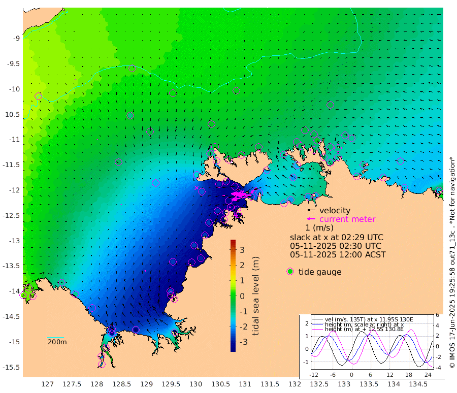 209cm/s -102T +4cm/s rms + 6cm/s 51T. Darwin_C1 52m 174cm/s -90T +4cm/s rms + 7cm/s -161T. Darwin_CW1 22m 123cm/s -107T +4cm/s rms + 8cm/s 61T. Darwin_CW2 34m 102cm/s -136T +3cm/s rms + 9cm/s 98T. Darwin_CW3 22m 190cm/s -90T +5cm/s rms + 7cm/s 88T. Darwin_C3 56m 118cm/s -115T +2cm/s rms + 9cm/s -126T. Darwin_CTbW 22m 9cm/s -172T +9cm/s rms + 2cm/s -110T. NWSLYN 196m 36cm/s -103T +1cm/s rms + 1cm/s -47T. DARBGF 30m 9cm/s 134T +7cm/s rms + 2cm/s -137T. ITFTIS 464m 9cm/s 136T +9cm/s rms + 1cm/s 74T. ITFMHB 146m 16cm/s 23T +4cm/s rms + 1cm/s -134T. ITFJBG 61m 10cm/s 102T +6cm/s rms + 4cm/s 121T. ITFFTB 108m 23cm/s -82T +4cm/s rms + 3cm/s 80T. NRSDAR 19m 40cm Carronade Island 42cm Guy Point 44cm Napier Broome Bay -111cm Lesueur Island -227cm Reveley Island -102cm Rocky Island -321cm Cape Domett -298cm Lacrosse Island -322cm Adolphus Island -223cm Pender Point -201cm Wyndham -61cm The Boxers -91cm Unnamed Shoal 32cm Loxton Shoal -348cm Pelican Island -39cm Calder Shoal 13cm Evans Shoal -360cm Quoin Island -354cm Port Keats -341cm Jones Point -255cm Catfish Island -261cm Cape Scott Offshore -314cm Cape Ford -292cm Anson Bay -21cm Goodrich Bank -263cm Peron Island North -266cm Point Jenny -265cm Native Point -281cm Fish Reef -300cm Tapa Bay -139cm Point Fawcett (Offshore) -326cm Burge Point -271cm Munkunuwa -240cm Beagle A -312cm Parsons Bank -319cm Fenton Patches -4cm Lynedoch Bank -311cm Hancox Shoal Area -329cm Nightcliff -347cm Darwin -316cm Charles Point Patches -259cm Glyde Point -200cm Chambers Bay -193cm Point Stuart -221cm Cape Hotham -192cm Christine Reef -203cm West Alligator Head -187cm East Field Island -178cm Two Hills Bay -172cm Newby Shoal -185cm Camp Point -289cm Medina Inlet South -120cm South Barlow Point -79cm St. Asaph Bay -26cm Cape Van Dieman -36cm Snake Bay -33cm Cache Point 61cm Echo Shoal -56cm Point Jahleel (Off) -115cm Cape Don -63cm Port Essington -65cm Smith Point - West -61cm NW Peacock Island -35cm North Of Jones Shoal -15cm Peacock Island -87cm Point David -70cm D'urville Point -53cm Money Shoal -89cm Copeland Island -117cm Cape Cockburn -81cm One Tree Point -112cm Hogmany Shoal -90cm New Year Island - West -95cm Grant Island -115cm Aurari Bay -133cm Cuthbert Point -112cm North Goulburn Island -139cm Paxie Shoal -162cm Entrance Island -178cm Yabooma Island