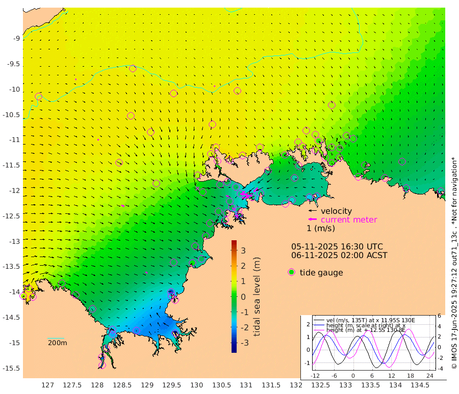 90cm/s -100T +4cm/s rms + 6cm/s 51T. Darwin_C1 52m 90cm/s -92T +4cm/s rms + 7cm/s -161T. Darwin_CW1 22m 39cm/s -106T +4cm/s rms + 8cm/s 61T. Darwin_CW2 34m 70cm/s -136T +3cm/s rms + 9cm/s 98T. Darwin_CW3 22m 90cm/s -90T +5cm/s rms + 7cm/s 88T. Darwin_C3 56m 34cm/s -115T +2cm/s rms + 9cm/s -126T. Darwin_CTbW 22m 10cm/s 149T +9cm/s rms + 2cm/s -110T. NWSLYN 196m 38cm/s 102T +1cm/s rms + 1cm/s -47T. DARBGF 30m 13cm/s 61T +7cm/s rms + 2cm/s -137T. ITFTIS 464m 15cm/s 104T +9cm/s rms + 1cm/s 74T. ITFMHB 146m 28cm/s 120T +4cm/s rms + 1cm/s -134T. ITFJBG 61m 40cm/s 113T +6cm/s rms + 4cm/s 121T. ITFFTB 108m 45cm/s 134T +4cm/s rms + 3cm/s 80T. NRSDAR 19m 71cm Carronade Island 61cm Guy Point 73cm Napier Broome Bay 14cm Lesueur Island -105cm Reveley Island -33cm Rocky Island -191cm Cape Domett -160cm Lacrosse Island -235cm Adolphus Island -241cm Pender Point -242cm Wyndham 90cm The Boxers 97cm Unnamed Shoal 118cm Loxton Shoal -203cm Pelican Island 103cm Calder Shoal 106cm Evans Shoal -317cm Quoin Island -145cm Port Keats -143cm Jones Point -248cm Catfish Island -57cm Cape Scott Offshore 11cm Cape Ford -66cm Anson Bay 104cm Goodrich Bank -35cm Peron Island North -29cm Point Jenny -25cm Native Point -33cm Fish Reef -53cm Tapa Bay 59cm Point Fawcett (Offshore) -70cm Burge Point -47cm Munkunuwa 8cm Beagle A -78cm Parsons Bank -57cm Fenton Patches 99cm Lynedoch Bank -92cm Hancox Shoal Area -89cm Nightcliff -96cm Darwin -60cm Charles Point Patches -95cm Glyde Point -135cm Chambers Bay -141cm Point Stuart -97cm Cape Hotham -122cm Christine Reef -164cm West Alligator Head -178cm East Field Island -92cm Two Hills Bay 59cm Newby Shoal -91cm Camp Point -48cm Medina Inlet South 69cm South Barlow Point 86cm St. Asaph Bay 107cm Cape Van Dieman 105cm Snake Bay 100cm Cache Point 122cm Echo Shoal 72cm Point Jahleel (Off) 13cm Cape Don 65cm Port Essington 66cm Smith Point - West 66cm NW Peacock Island 80cm North Of Jones Shoal 26cm Peacock Island 33cm Point David 63cm D'urville Point 62cm Money Shoal 25cm Copeland Island 37cm Cape Cockburn 38cm One Tree Point 28cm Hogmany Shoal 39cm New Year Island - West 31cm Grant Island 1cm Aurari Bay -26cm Cuthbert Point 5cm North Goulburn Island -53cm Paxie Shoal -74cm Entrance Island -122cm Yabooma Island