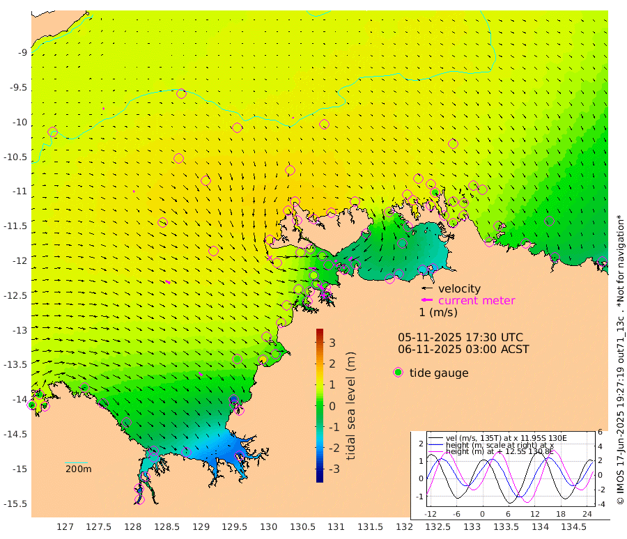1cm/s -93T +4cm/s rms + 6cm/s 51T. Darwin_C1 52m 20cm/s -87T +4cm/s rms + 7cm/s -161T. Darwin_CW1 22m 10cm/s 75T +4cm/s rms + 8cm/s 61T. Darwin_CW2 34m 43cm/s -141T +3cm/s rms + 9cm/s 98T. Darwin_CW3 22m 20cm/s -86T +5cm/s rms + 7cm/s 88T. Darwin_C3 56m 24cm/s 60T +2cm/s rms + 9cm/s -126T. Darwin_CTbW 22m 9cm/s 142T +9cm/s rms + 2cm/s -110T. NWSLYN 196m 66cm/s 96T +1cm/s rms + 1cm/s -47T. DARBGF 30m 12cm/s 52T +7cm/s rms + 2cm/s -137T. ITFTIS 464m 14cm/s 112T +9cm/s rms + 1cm/s 74T. ITFMHB 146m 44cm/s 138T +4cm/s rms + 1cm/s -134T. ITFJBG 61m 47cm/s 120T +6cm/s rms + 4cm/s 121T. ITFFTB 108m 70cm/s 127T +4cm/s rms + 3cm/s 80T. NRSDAR 19m 5cm Carronade Island -8cm Guy Point 7cm Napier Broome Bay 6cm Lesueur Island -56cm Reveley Island -14cm Rocky Island -120cm Cape Domett -97cm Lacrosse Island -183cm Adolphus Island -242cm Pender Point -266cm Wyndham 100cm The Boxers 128cm Unnamed Shoal 92cm Loxton Shoal -114cm Pelican Island 109cm Calder Shoal 94cm Evans Shoal -265cm Quoin Island -37cm Port Keats -34cm Jones Point -248cm Catfish Island 33cm Cape Scott Offshore 138cm Cape Ford 42cm Anson Bay 109cm Goodrich Bank 62cm Peron Island North 73cm Point Jenny 77cm Native Point 74cm Fish Reef 61cm Tapa Bay 115cm Point Fawcett (Offshore) 52cm Burge Point 68cm Munkunuwa 97cm Beagle A 42cm Parsons Bank 58cm Fenton Patches 94cm Lynedoch Bank 19cm Hancox Shoal Area 30cm Nightcliff 29cm Darwin 55cm Charles Point Patches -19cm Glyde Point -101cm Chambers Bay -114cm Point Stuart -40cm Cape Hotham -91cm Christine Reef -138cm West Alligator Head -171cm East Field Island -57cm Two Hills Bay 110cm Newby Shoal -55cm Camp Point 64cm Medina Inlet South 120cm South Barlow Point 118cm St. Asaph Bay 117cm Cape Van Dieman 118cm Snake Bay 109cm Cache Point 78cm Echo Shoal 87cm Point Jahleel (Off) 46cm Cape Don 85cm Port Essington 88cm Smith Point - West 84cm NW Peacock Island 88cm North Of Jones Shoal 31cm Peacock Island 62cm Point David 87cm D'urville Point 76cm Money Shoal 54cm Copeland Island 73cm Cape Cockburn 63cm One Tree Point 58cm Hogmany Shoal 64cm New Year Island - West 59cm Grant Island 35cm Aurari Bay 11cm Cuthbert Point 39cm North Goulburn Island -16cm Paxie Shoal -30cm Entrance Island -78cm Yabooma Island