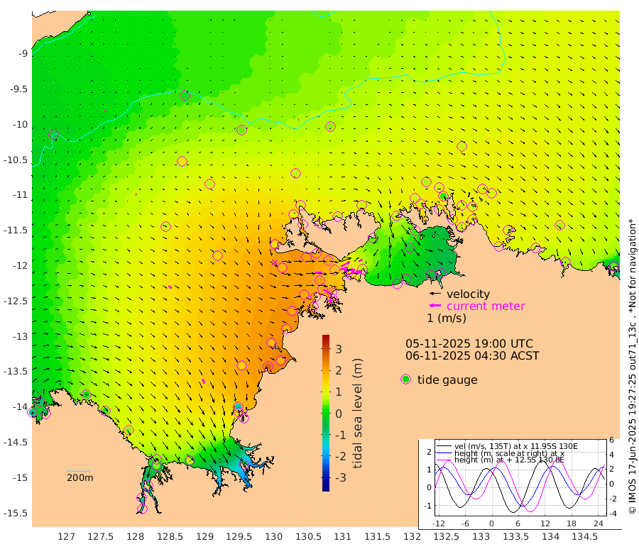 131cm/s 78T +4cm/s rms + 6cm/s 51T. Darwin_C1 52m 94cm/s 85T +4cm/s rms + 7cm/s -161T. Darwin_CW1 22m 77cm/s 75T +4cm/s rms + 8cm/s 61T. Darwin_CW2 34m 36cm/s 58T +3cm/s rms + 9cm/s 98T. Darwin_CW3 22m 91cm/s 87T +5cm/s rms + 7cm/s 88T. Darwin_C3 56m 89cm/s 63T +2cm/s rms + 9cm/s -126T. Darwin_CTbW 22m 3cm/s 95T +9cm/s rms + 2cm/s -110T. NWSLYN 196m 69cm/s 90T +1cm/s rms + 1cm/s -47T. DARBGF 30m 8cm/s 21T +7cm/s rms + 2cm/s -137T. ITFTIS 464m 5cm/s 109T +9cm/s rms + 1cm/s 74T. ITFMHB 146m 44cm/s 155T +4cm/s rms + 1cm/s -134T. ITFJBG 61m 32cm/s 130T +6cm/s rms + 4cm/s 121T. ITFFTB 108m 68cm/s 120T +4cm/s rms + 3cm/s 80T. NRSDAR 19m -84cm Carronade Island -98cm Guy Point -84cm Napier Broome Bay 7cm Lesueur Island 48cm Reveley Island 28cm Rocky Island 52cm Cape Domett 51cm Lacrosse Island -7cm Adolphus Island -112cm Pender Point -157cm Wyndham 74cm The Boxers 126cm Unnamed Shoal 15cm Loxton Shoal 80cm Pelican Island 71cm Calder Shoal 35cm Evans Shoal -48cm Quoin Island 147cm Port Keats 151cm Jones Point -113cm Catfish Island 152cm Cape Scott Offshore 260cm Cape Ford 183cm Anson Bay 70cm Goodrich Bank 178cm Peron Island North 189cm Point Jenny 193cm Native Point 200cm Fish Reef 201cm Tapa Bay 144cm Point Fawcett (Offshore) 210cm Burge Point 203cm Munkunuwa 186cm Beagle A 203cm Parsons Bank 205cm Fenton Patches 48cm Lynedoch Bank 177cm Hancox Shoal Area 193cm Nightcliff 206cm Darwin 202cm Charles Point Patches 111cm Glyde Point 5cm Chambers Bay -7cm Point Stuart 71cm Cape Hotham 7cm Christine Reef -23cm West Alligator Head -64cm East Field Island 31cm Two Hills Bay 142cm Newby Shoal 35cm Camp Point 201cm Medina Inlet South 142cm South Barlow Point 111cm St. Asaph Bay 80cm Cape Van Dieman 89cm Snake Bay 74cm Cache Point -20cm Echo Shoal 73cm Point Jahleel (Off) 80cm Cape Don 82cm Port Essington 83cm Smith Point - West 79cm NW Peacock Island 64cm North Of Jones Shoal 24cm Peacock Island 84cm Point David 87cm D'urville Point 68cm Money Shoal 81cm Copeland Island 104cm Cape Cockburn 79cm One Tree Point 87cm Hogmany Shoal 82cm New Year Island - West 84cm Grant Island 81cm Aurari Bay 73cm Cuthbert Point 82cm North Goulburn Island 58cm Paxie Shoal 60cm Entrance Island 35cm Yabooma Island