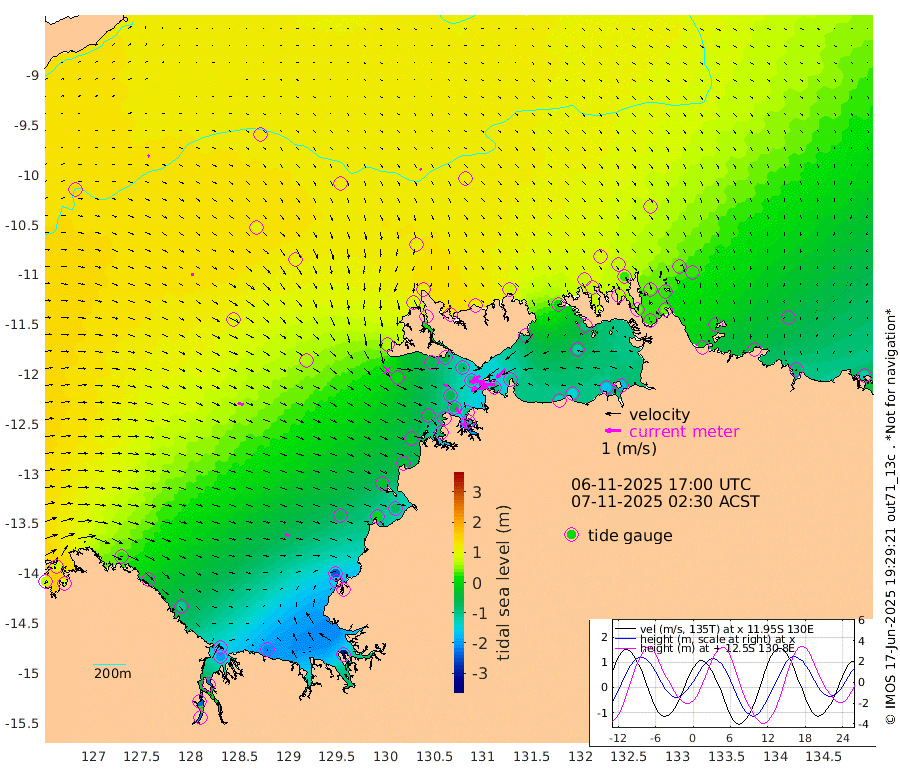 111cm/s -100T +4cm/s rms + 6cm/s 51T. Darwin_C1 52m 104cm/s -92T +4cm/s rms + 7cm/s -161T. Darwin_CW1 22m 47cm/s -107T +4cm/s rms + 8cm/s 61T. Darwin_CW2 34m 77cm/s -136T +3cm/s rms + 9cm/s 98T. Darwin_CW3 22m 100cm/s -90T +5cm/s rms + 7cm/s 88T. Darwin_C3 56m 48cm/s -115T +2cm/s rms + 9cm/s -126T. Darwin_CTbW 22m 12cm/s 146T +9cm/s rms + 2cm/s -110T. NWSLYN 196m 34cm/s 104T +1cm/s rms + 1cm/s -47T. DARBGF 30m 14cm/s 55T +7cm/s rms + 2cm/s -137T. ITFTIS 464m 16cm/s 91T +9cm/s rms + 1cm/s 74T. ITFMHB 146m 26cm/s 113T +4cm/s rms + 1cm/s -134T. ITFJBG 61m 39cm/s 108T +6cm/s rms + 4cm/s 121T. ITFFTB 108m 41cm/s 136T +4cm/s rms + 3cm/s 80T. NRSDAR 19m 86cm Carronade Island 77cm Guy Point 90cm Napier Broome Bay 24cm Lesueur Island -107cm Reveley Island -41cm Rocky Island -192cm Cape Domett -161cm Lacrosse Island -232cm Adolphus Island -232cm Pender Point -228cm Wyndham 97cm The Boxers 99cm Unnamed Shoal 129cm Loxton Shoal -206cm Pelican Island 110cm Calder Shoal 113cm Evans Shoal -312cm Quoin Island -150cm Port Keats -151cm Jones Point -241cm Catfish Island -61cm Cape Scott Offshore 7cm Cape Ford -70cm Anson Bay 111cm Goodrich Bank -42cm Peron Island North -34cm Point Jenny -31cm Native Point -41cm Fish Reef -60cm Tapa Bay 59cm Point Fawcett (Offshore) -77cm Burge Point -58cm Munkunuwa 3cm Beagle A -88cm Parsons Bank -65cm Fenton Patches 106cm Lynedoch Bank -99cm Hancox Shoal Area -96cm Nightcliff -102cm Darwin -63cm Charles Point Patches -99cm Glyde Point -134cm Chambers Bay -143cm Point Stuart -100cm Cape Hotham -122cm Christine Reef -166cm West Alligator Head -177cm East Field Island -94cm Two Hills Bay 61cm Newby Shoal -88cm Camp Point -54cm Medina Inlet South 69cm South Barlow Point 89cm St. Asaph Bay 112cm Cape Van Dieman 110cm Snake Bay 106cm Cache Point 135cm Echo Shoal 75cm Point Jahleel (Off) 14cm Cape Don 69cm Port Essington 69cm Smith Point - West 70cm NW Peacock Island 87cm North Of Jones Shoal 28cm Peacock Island 36cm Point David 66cm D'urville Point 70cm Money Shoal 28cm Copeland Island 39cm Cape Cockburn 41cm One Tree Point 31cm Hogmany Shoal 43cm New Year Island - West 33cm Grant Island 2cm Aurari Bay -25cm Cuthbert Point 7cm North Goulburn Island -48cm Paxie Shoal -73cm Entrance Island -119cm Yabooma Island